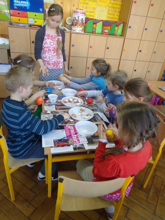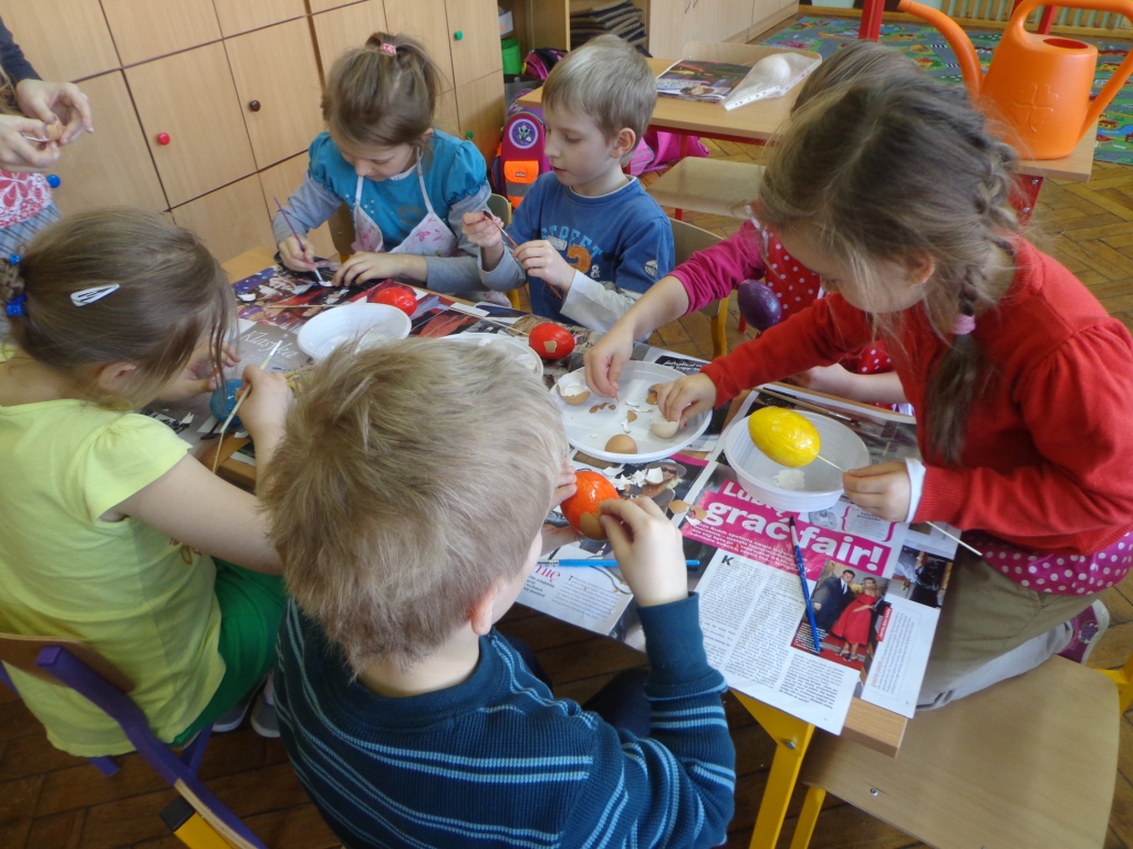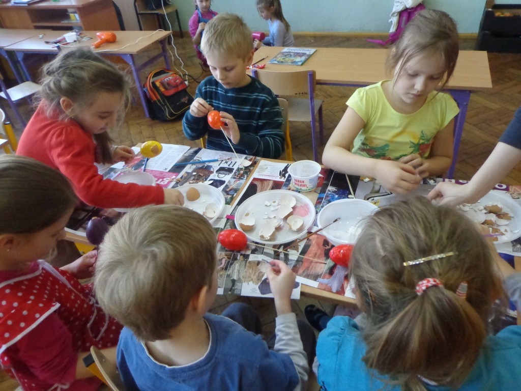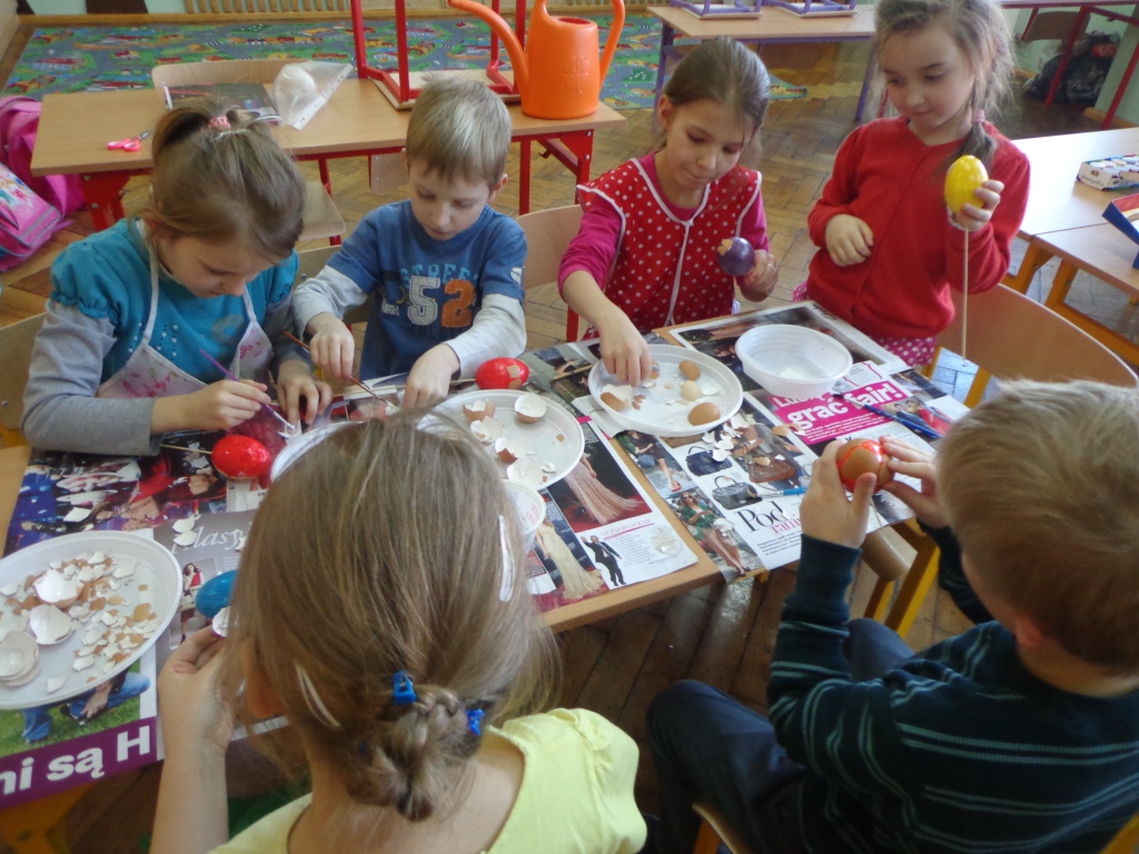Nasze dzieci wzięły również udział w Wojewódzkim Konkursie Plastycznym organizowanym przez Szkołę Podstawową w Czyżowicach, który w tym roku przebiegał pod hasłem: Pisanka z motywem wielkanocnego zwierzątka. W tym konkursie autorzy wysłanych prac nie zajęli czołowych miejsc, jednak sukcesem było to, że ich prace zostały przekazane jako upominki do Domu Seniora w Czyżowicach.