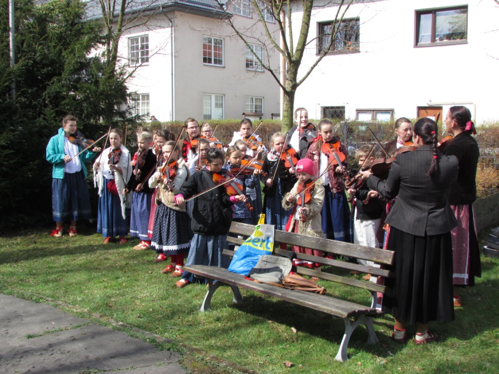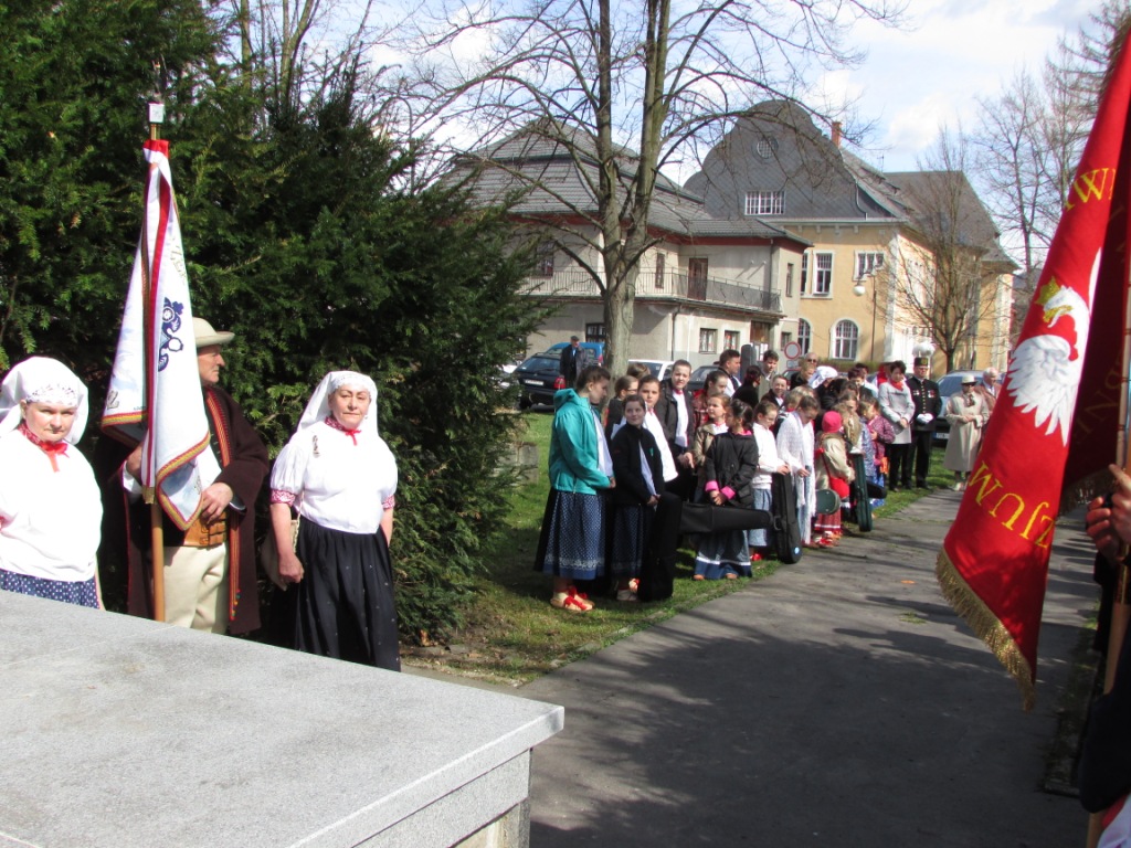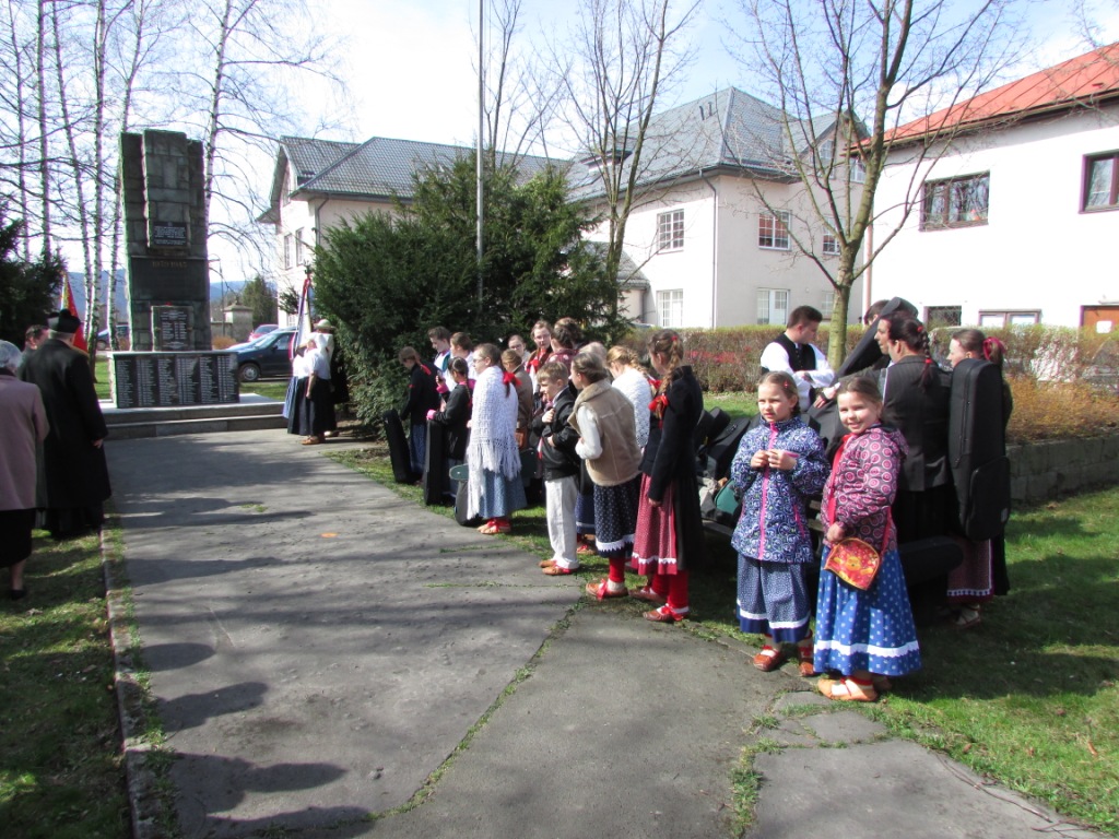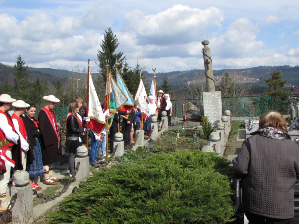 Niezwykle uroczysty i podniosły charakter miały obchody 70-tej rocznicy tragicznej śmierci 12 mieszkańców Istebnej i Jaworzynki. Dokładnie 13 kwietnia 1945 roku, hitlerowcy rozstrzelali naszych patriotów na cmentarzu żydowskim w Jabłonkowie. Nasze zespoły regionalne i kapela zostały również zaproszone do uświetnienia tej ważnej dla naszej Trójwsi rocznicy. Dzieci z "Małego Koniakowa" i z "Czadeczki", zespołów funkcjonujących przy naszym Ognisku, zagrały i zaśpiewały najpierw w istebniańskim kościele, w czasie uroczystej mszy świętej a potem w Jabłonkowie w Republice Czeskiej. Na koniec, po odsłonięciu pamiątkowej tablicy, wszyscy uczestnicy uroczystości udali się do sali PZKO w Jabłonkowie, gdzie odbyła się prelekcja poświęcona osobom pomordowanym. Zostaliśmy także poczęstowani między innymi pysznym kołaczem.