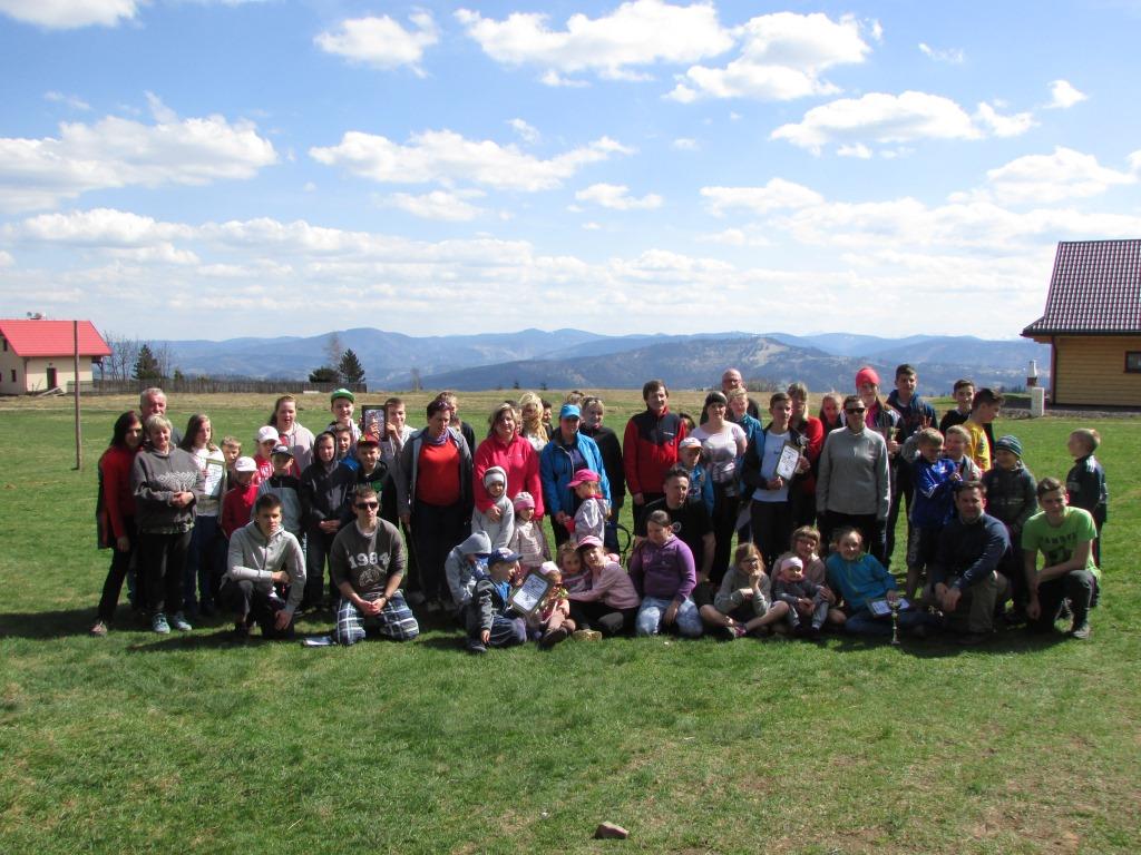 Uczestnicy koła komputerowego; Basia, Ela, Oliwia i Wiktoria oraz Bałżej, Marcin, Nikodem, Pawel i Marek - razem ze swoim opiekunem - uczestniczyli w sobotę 25 maja 2015 r. w Rajdzie Rupienki. Wszyscy uczestnicy rajdu wyruszyli z Przełęczy Rupienka, natomiast my nieco zmodyfikowaliśmy trasę, która rozpoczęła się przy naszej szkole. Na początek poszliśmy mocno pod górę przez Zimną Wodę na Koczy Zamek, skąd roztaczały się piękne widoki. Pogoda była łaskawa i widać bylo Tatry oraz Małą Fatrę. Na Koczym Zamku spotkaliśmy się z pozostałymi uczestnikami Rajdu i razem poszliśmy w kierunku szczytu Tynioka (982 mnpm). Na trasie wielokrotnie odpoczywaliśmy i jednocześnie słuchaliśmy naszych przewodników, którzy opowiadali miejscowe legendy a także opisywali wspomniane panoramy. Po dotarciu na szczyt, nieco zmęczeni ale szczęśliwi otrzymaliśmy rajdowy posiłek oraz napoje. Potem nastąpił konkurs wiedzy o regionie. Nasze Ognisko reprezentowali: Ela Kawulok, Basia Sikora i Błażej Krężelok. Walczyli dzielnie ale okazało się, że konkurencja była bardzo silna i zajęliśmy zaszczytne 4 miejsce. Na koniec odbyło się wręczenie nagród oraz wykonano wspólne pamiątkowe zdjęcie. Drużyna z OPP różnymi skrótami i wąskimi ścieżkami, które bardzo dobrze zna Marek, zeszła z Tynioka wprost pod szkołę, gdzie rajd się dla nas zakończył. Wszyscy byli zadowoleni i zadeklarowali że za rok znów wezmą udział w rajdzie i... zdobędą 1 miejsce w konkursie wiedzy :)