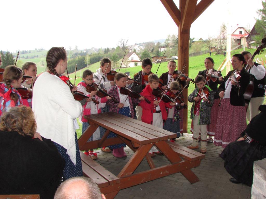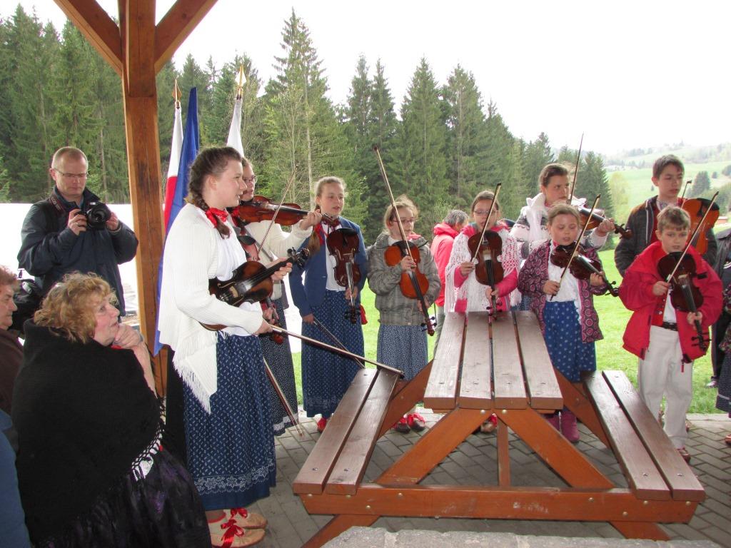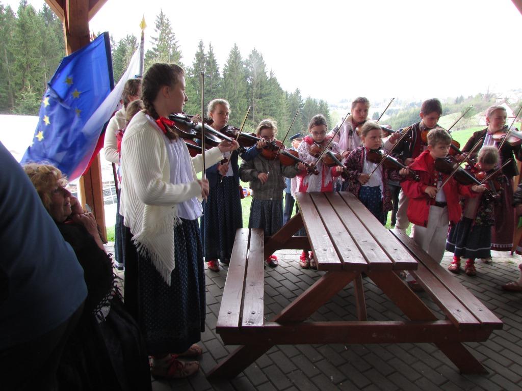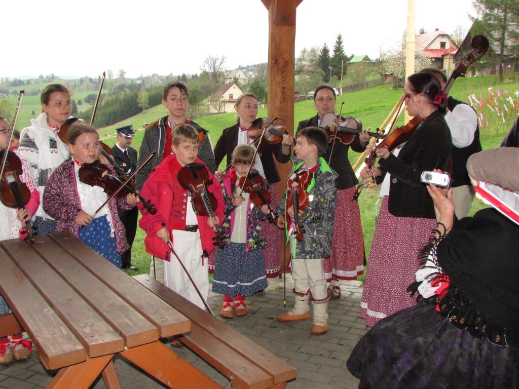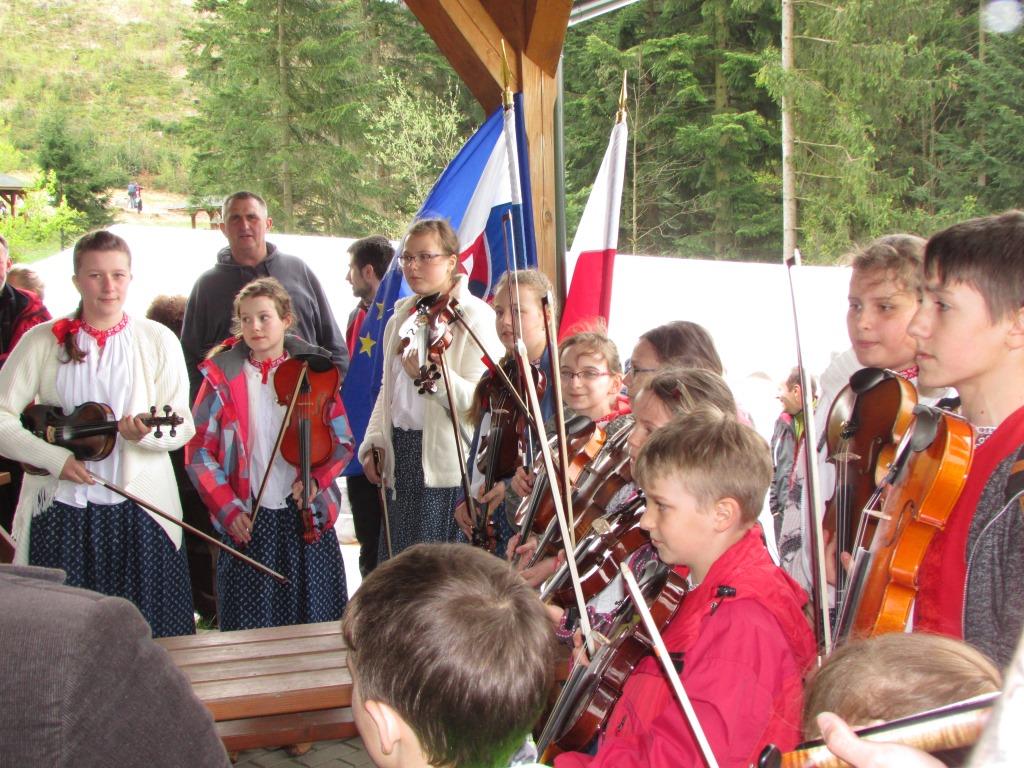 Zgodnie z wieloletnią tradycją w dniu 1 maja spotykają się na Trójstyku w Jaworzynce mieszkańcy i turyści trzech zaprzyjaźnionych państw; Słowacji, Czech i Polski aby wspólnymi siłami postawić moja. Tegoroczna impreza miała niezwykle uroczysty charakter, ponieważ wzbogacono ją o poświęcenie obelisku, które poprzedziła masza święta. Całość ubarwiły zespoły regionalne z Polski i Słowacji, wśród których był także nasz ogniskowy "Mały Koniaków", który został zaproszony przez organizatorów. Przy okazji poznaliśmy także rówieśników z Żyliny, z którymi zamierzamy nawiązać współpracę. Na koniec była też okazja pokosztować słowackich specjałów. Były pyszne :) Występ naszego zespołu przygotowała pani Ola Lipowska oraz panie Marzena Suszka i Janka Juroszek a także pan Euzebiusz Jasiński. Gratulujemy udanego występu.