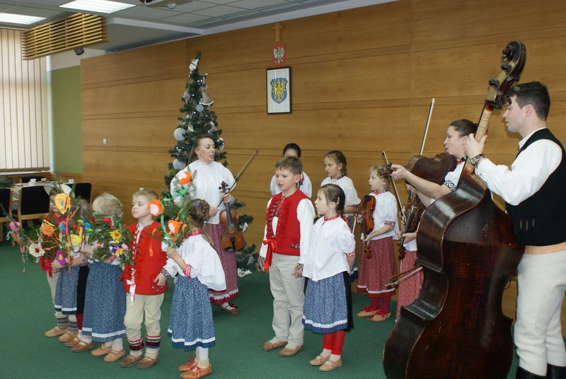 Tak było również 17 grudnia 2015, gdy młodzi kolędnicy pod kierunkiem pana Martina Wałacha oraz pań Marzeny Suszki i Janiny Juroszek wykonali kolędy i pastorałki charakterystyczne dla naszego regionu. Były również życzenia dla władz Powiatu Cieszyńskiego z panem Starostą Januszem Królem na czele, którym dzieci wręczyły przystrojone gałązki jedliny zwane w Trójwsi połaźniczkami.