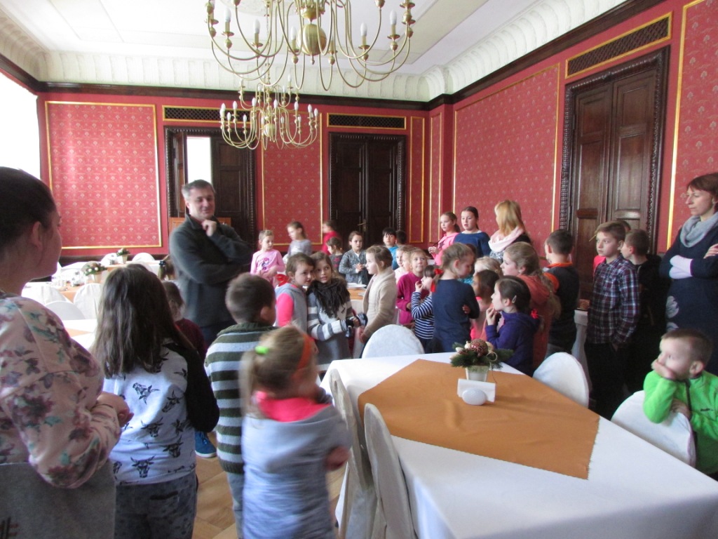 Dodatkową atrakcją wyjazdu była wizyta w siedzibie Zespołu Pieśni i Tańca „Śląsk” w Koszęcinie. Dzieci poznały zarys historii Pałacu w Koszęcinie oraz zobaczyły miejsca, w których toczy się całe życie zespołu. W pałacowych salach odbywają się zarówno próby, zajęcia artystyczne, a także koncerty i imprezy okolicznościowe. Dzieci miały również okazję zwiedzić Izbę Pamięci Zespołu „Śląsk”, gdzie zgromadzone są różnego rodzaju pamiątki, stroje oraz wiele innych ciekawostek przywiezionych z wyjazdów zagranicznych.