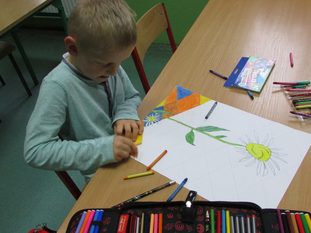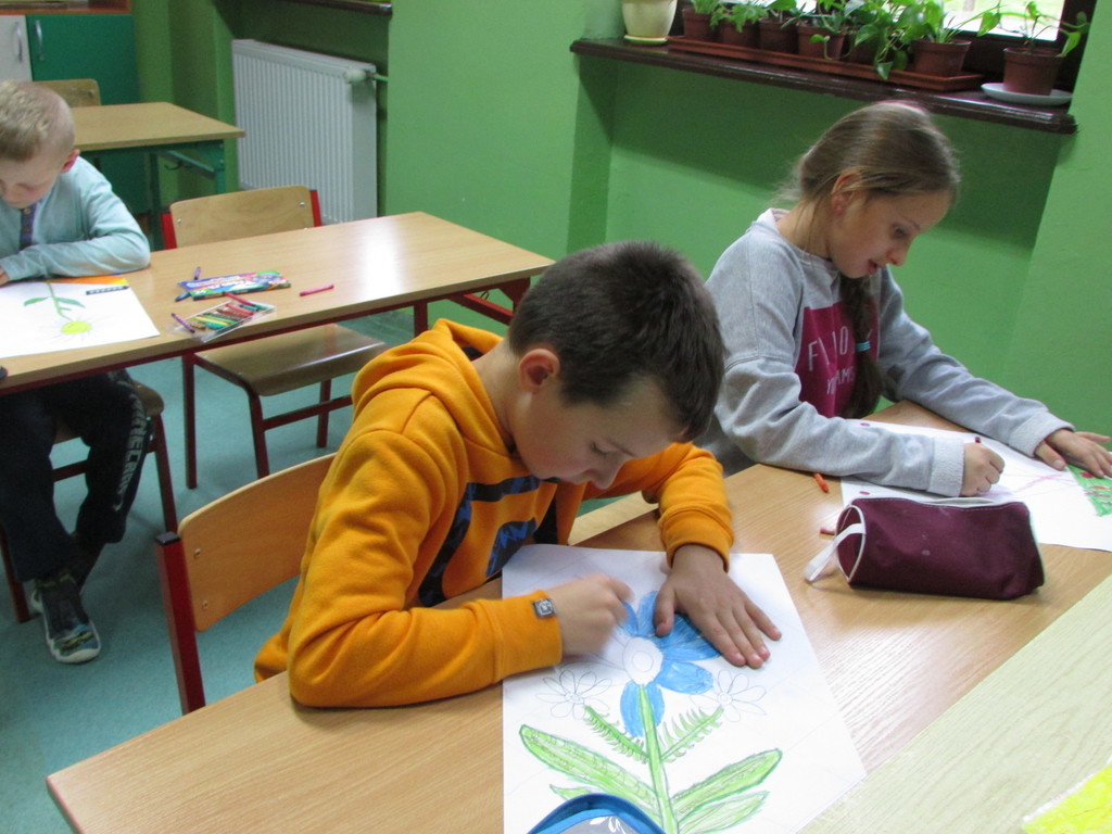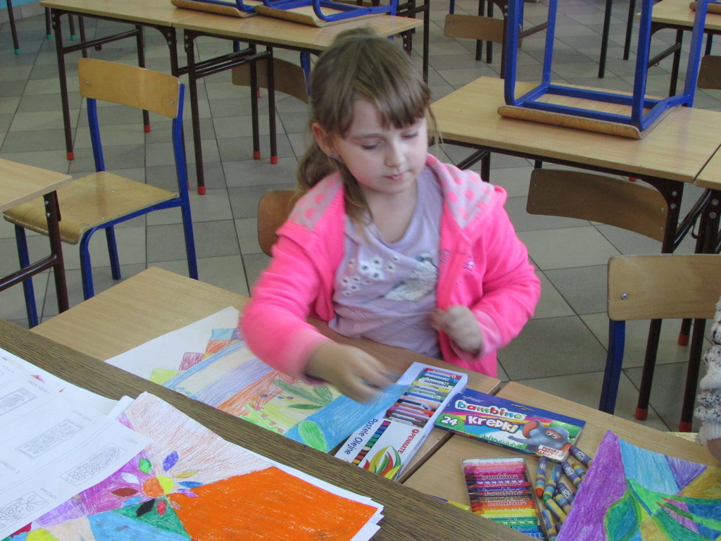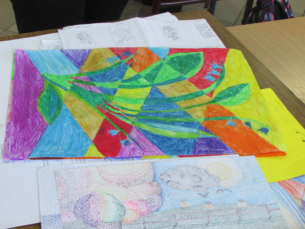 Pod okiem pani Barbary Bielesz działa koło Malarstwa. Nasza pani wskazuje nam jak przelać pomysł z naszej wyobraźni na kartkę papieru. A oto rezultaty współnie spędzonego czasu.