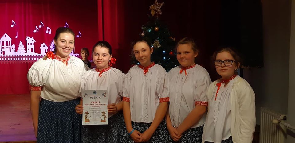 W piątek 31.01.2020 w Domu Kultury w Mikuszowicach Krakowskich na nasze młode skrzypaczki wzięły udział w II Instrumentalnym Festiwalu Kolęd i Pastorałek " Hej kolęda, kolęda 2020" . Dziewczyny pod czujnym okiem Pani Pauliny Kupczyk przygotowaly i pięknie zaprezentowały pastorałke "Śliczna panienka". Festiwal nie miał charakteru konkursu, ale był świetną okazją do zaprezentowania się naszej kapeli na scenie i pokazaniu swoich umiejętności przed szeroką publicznością.