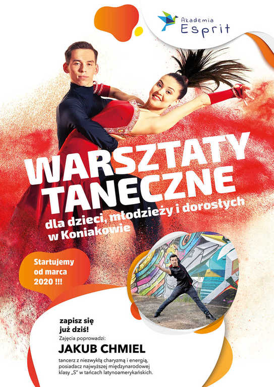 Zgodnie z obietnicą zapraszamy wraz z Akademią Esprit serdecznie wszystkie dzieci, młodzież oraz dorosłych zainteresowanych uczestnictwem w zajęciach tanecznych. Spotkanie organizacyjne połączone z prezentacją odbędzie się 5 marca 2020 roku (czwartek) o godz. 15.00 w Szkole Podstawowej nr 1 w Koniakowie