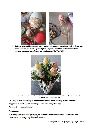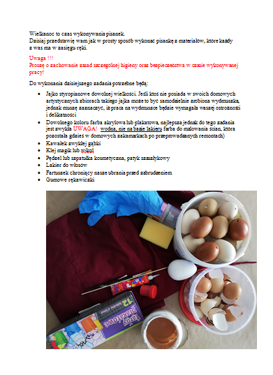 Proszę o zachowanie zasad szczególnej higieny oraz bezpieczeństwa w czasie wykonywanej pracy! Do Świąt Wielkanocnych jest jeszcze sporo czasu, zatem takich jajeczek możemy przygotować kilka a potem stworzyć z nich wiosenną dekorację.