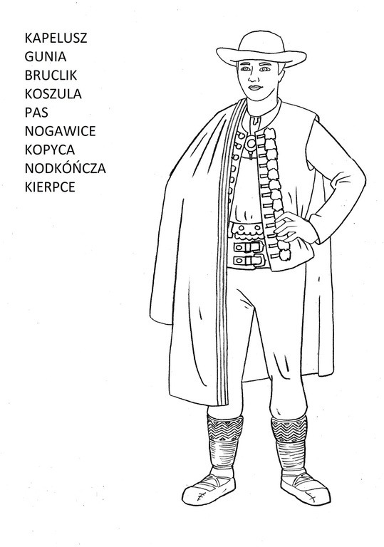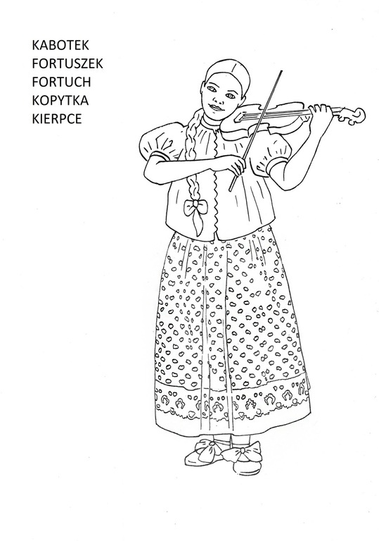 2) Płącz linią podane na rysunku części stroju z elementami na rysunku