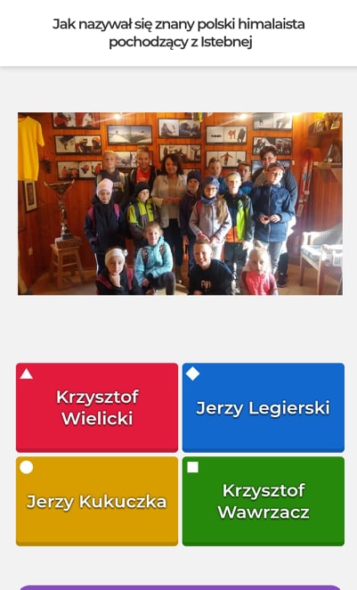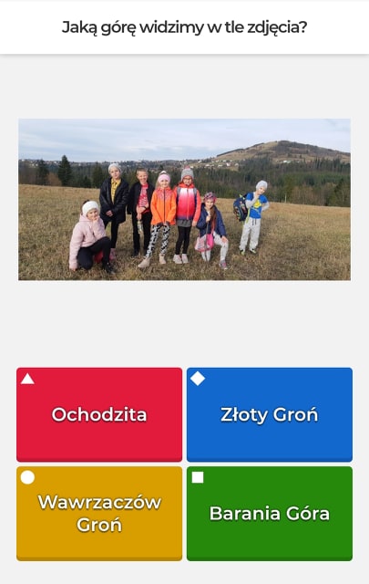 3) w tle każdego pytania są podpowiedzi w formie zdjęć z naszych wędrówek :D