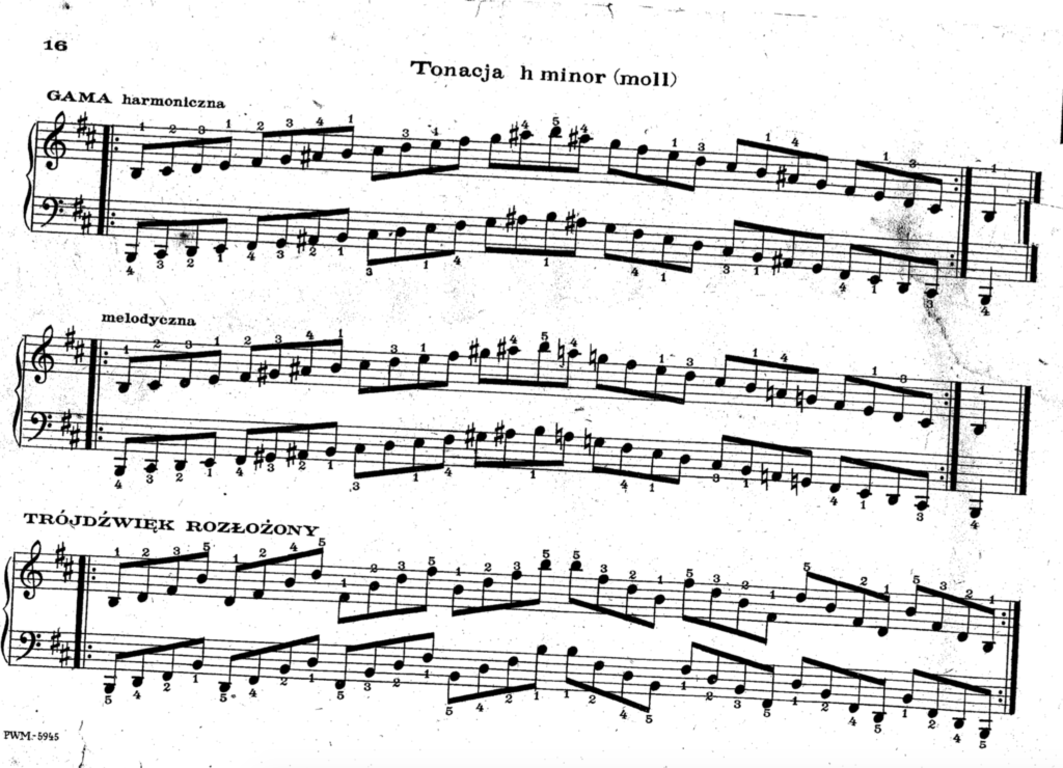 Gama D-dur na przykładzie której ćwiczyliśmy wprawki, tercje, pasaż itp teraz w załączniku gama molowa h-moll