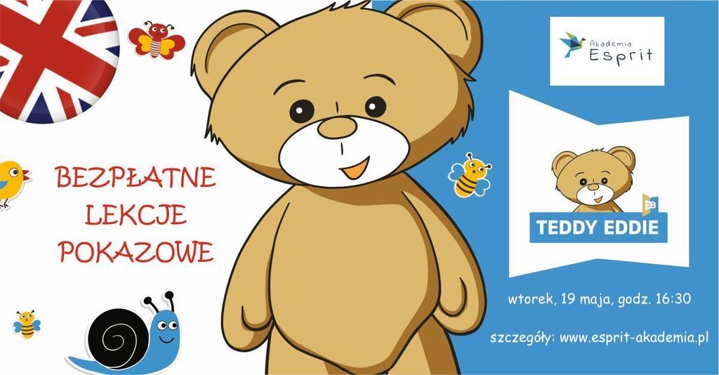 Zapraszamy wszystkie Dzieci w wieku od 2 do 7 lat i ich Rodziców zainteresowanych nauką języka angielskiego metodą Teddy Eddie na bezpłatną lekcję pokazową w Akademii Esprit!