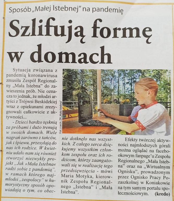 Zachęcamy do zakupu Głos Ziemi Cieszyńskiej. Znajdziecie tam artykuł o tym jak Zespół Regionalny "MAŁA ISTEBNA" radzi sobie z pandemią ☺