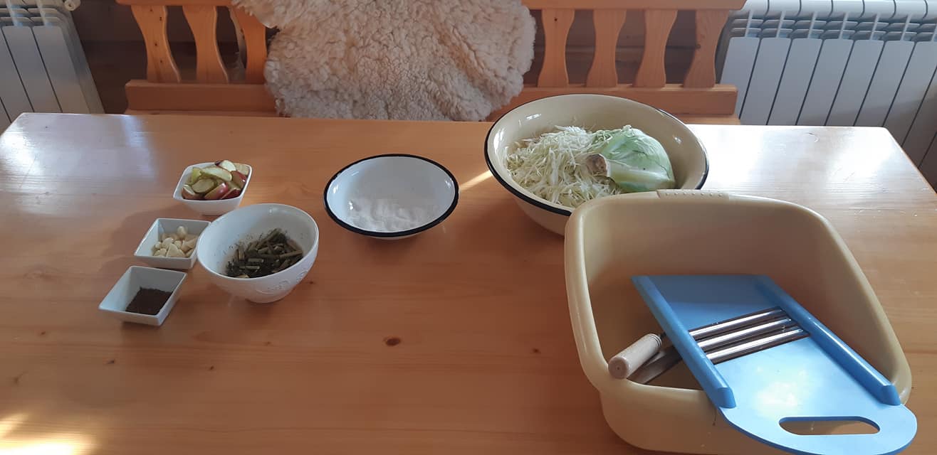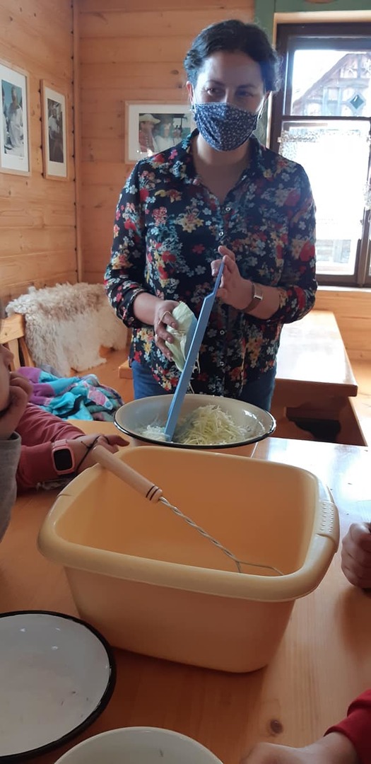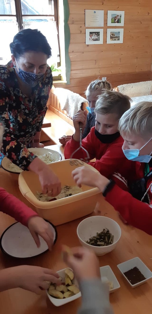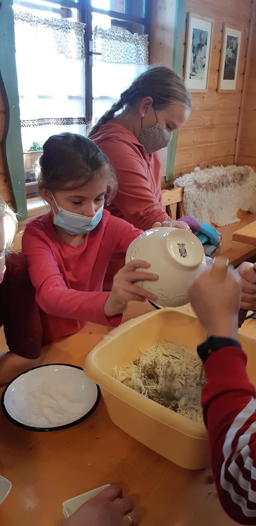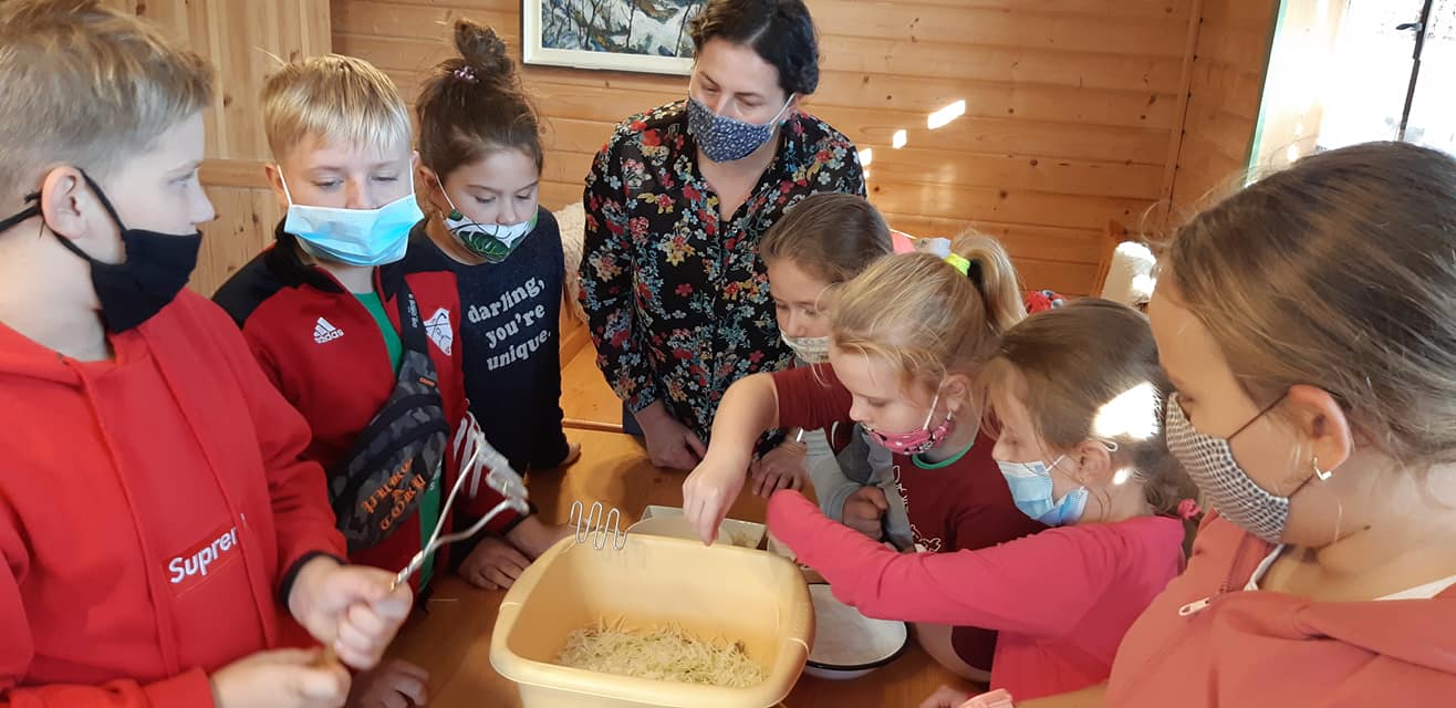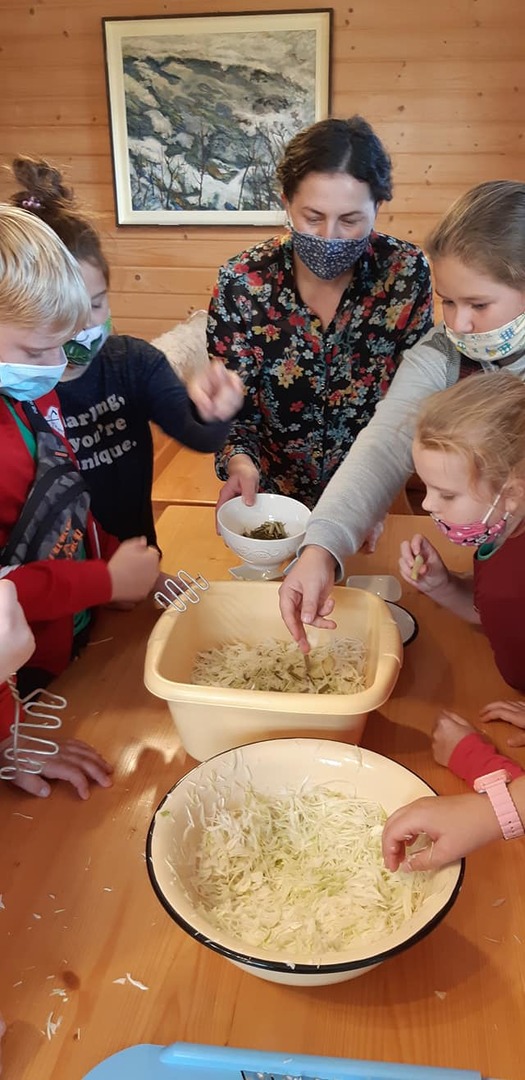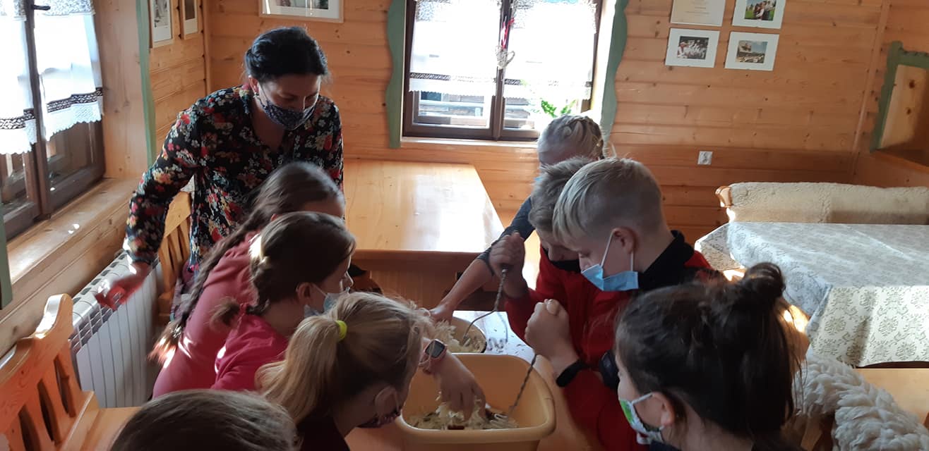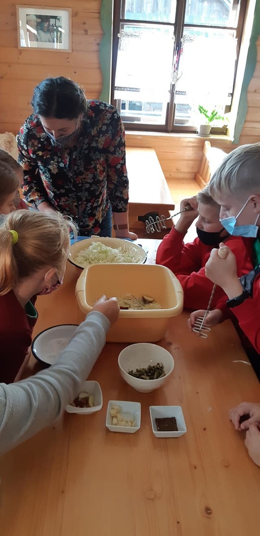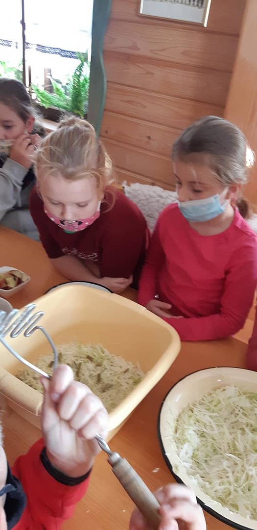 Dzięki uprzejmości Pani Katarzyny Ruckiej - Ryś dzieci miały okazję spróbować swoich sił w kiszeniu kapusty