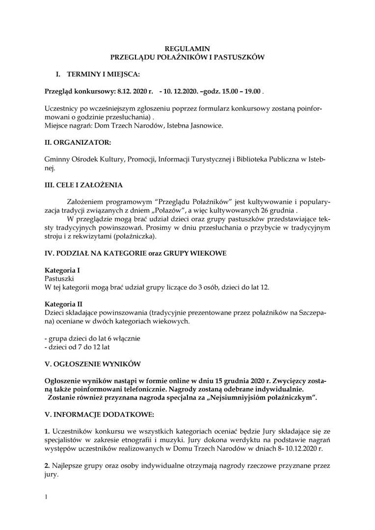 2020 r. - 10. 12.2020. –godz. 15.00 – 19.00 .