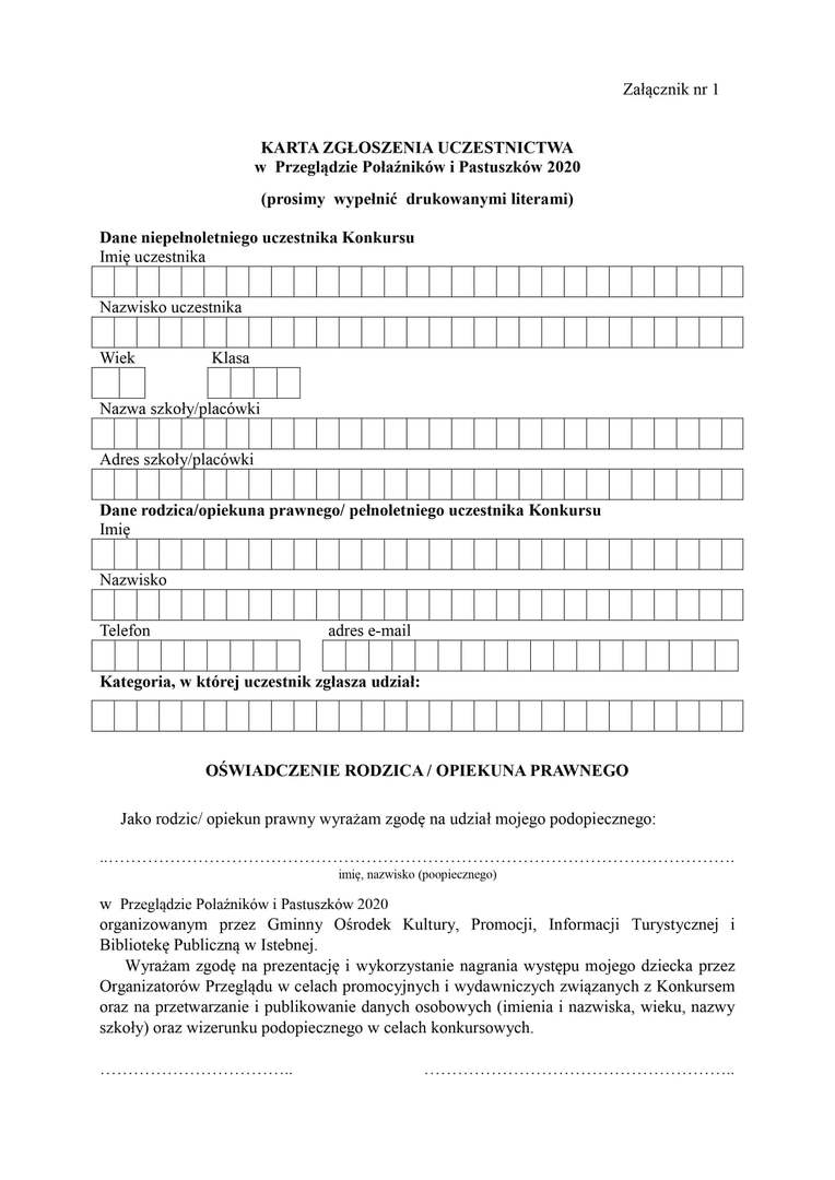 Wypełnijcie kartę zgłoszenia i prześlijcie lub dostarczcie