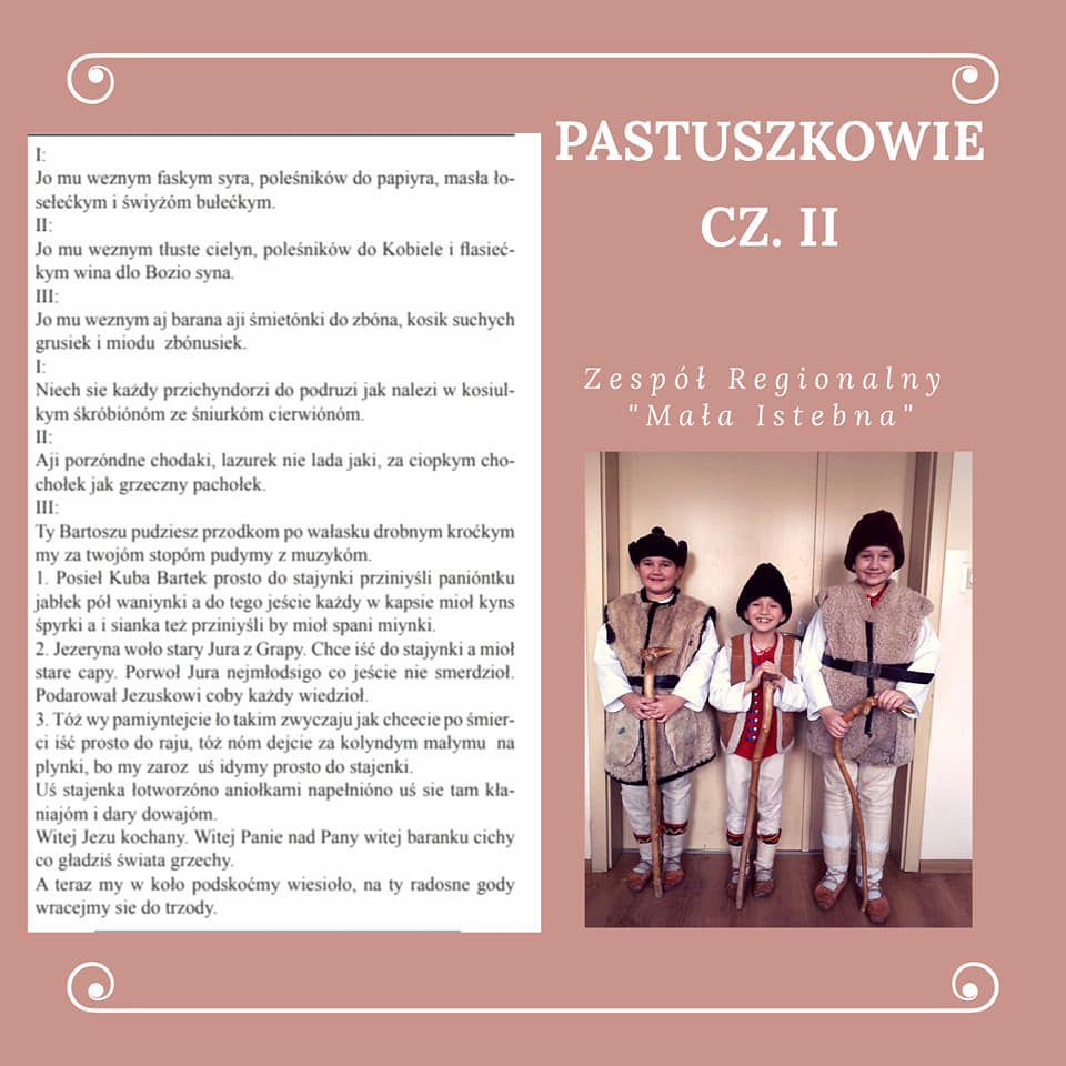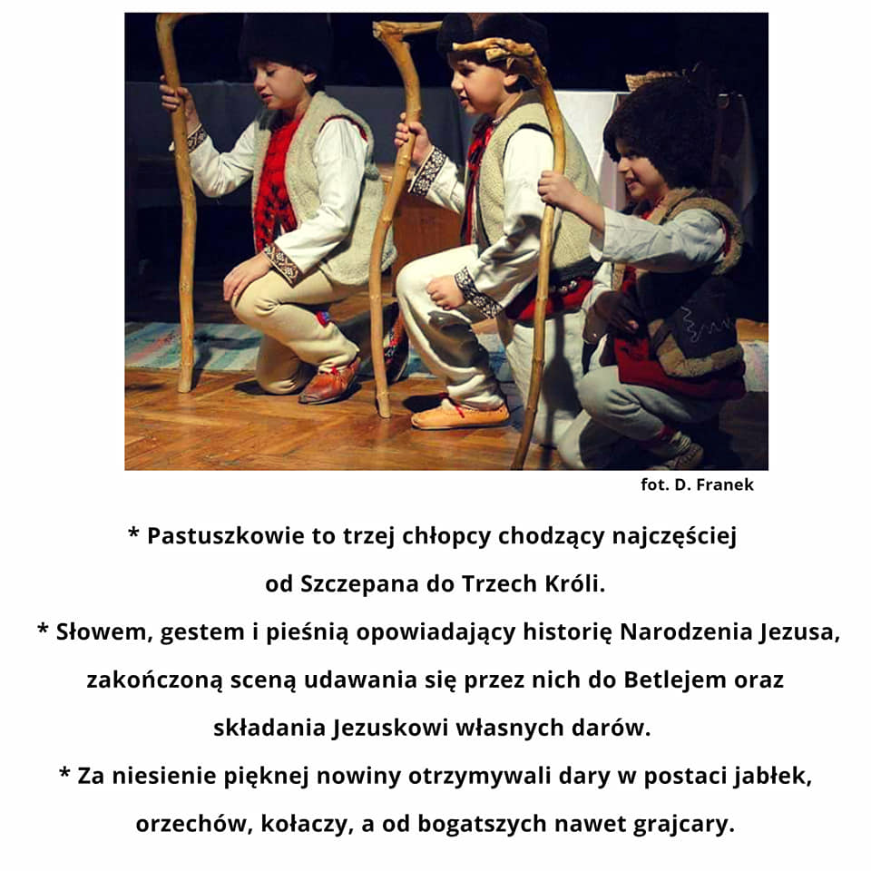 Jedną z tradycji pielęgnowanych m.in. na terenie Trójwsi Beskidzie jest "chodzenie pastuszków", czyli trzech chłopców opowiadających o narodzeniu Jezusa. Pasterze jako pierwsi witali Jezusa w Betlejem, składając Mu swoje dary