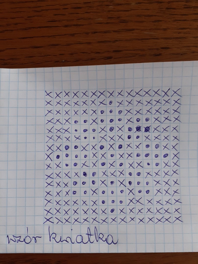 pracę zdalną. Te dziewczynki które jeszcze nie potrafią opuszczać krzyżyka bo wciąż zapominają ćwiczcie sobie sam krzyżyk, niektóre miały rozpoczęte prace to sobie je dokończcie, natomiast pozostałym przygotowałam wzór kwiatka. Myślę, że spokojnie bez mojej pomocy go wykonacie i jeśli możecie pochwalcie się robiąc zdjęcie i wysyłając na adres opp.