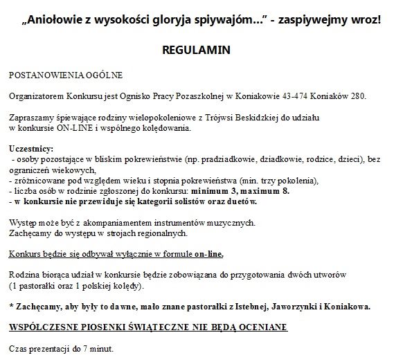 Zapraszamy wszystkich od tych najm艂odszych do najstarszych cz艂onków rodziny do od艣piewania swoich ulubionych pastora艂ek i kol臋d, do wyszukania tych najbardziej archaicznych tekstów i podzielenia si臋 z nami t膮 rado艣ci膮