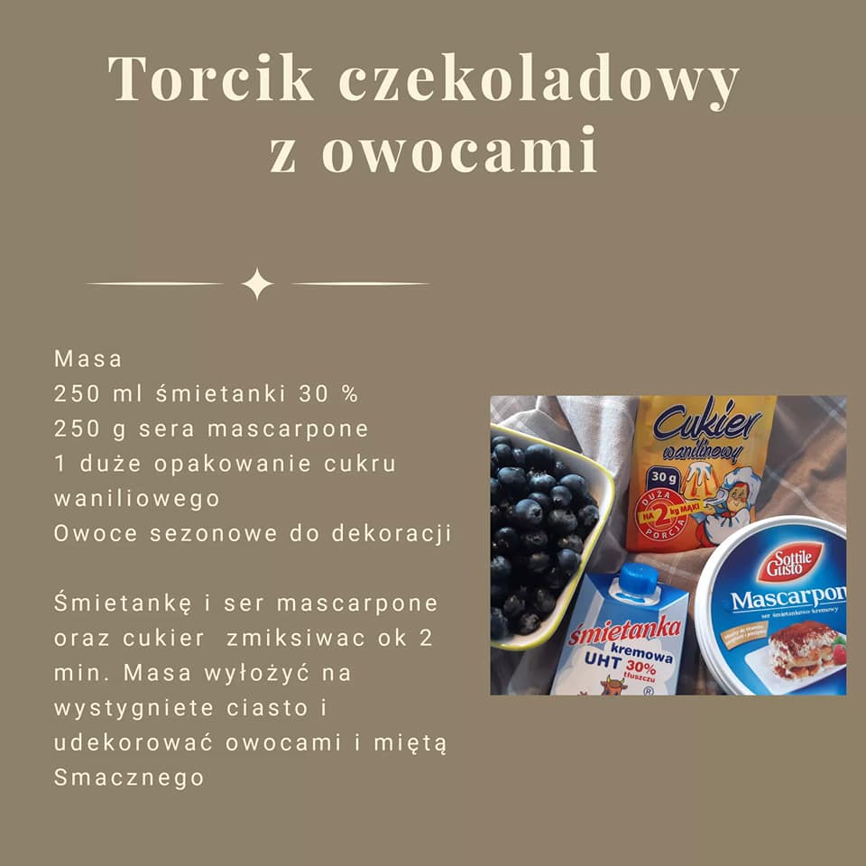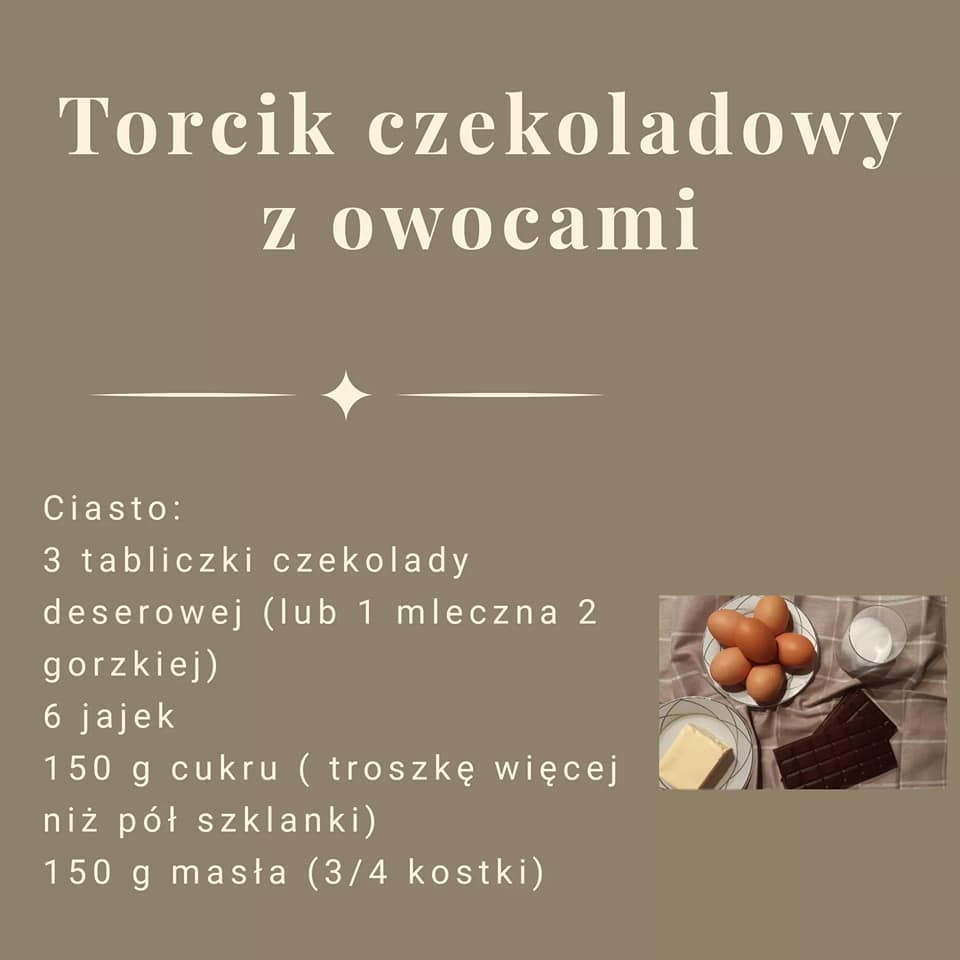 🍰Dzisiaj w ramach kółka kulinarnego przygotowałam dla Was przepis na torcik czekoladowy z owocami 🍫🎂