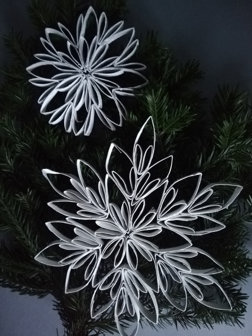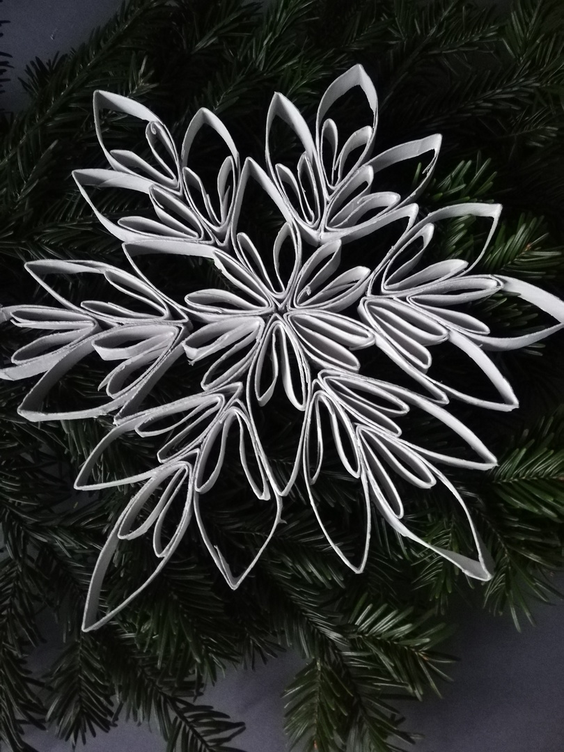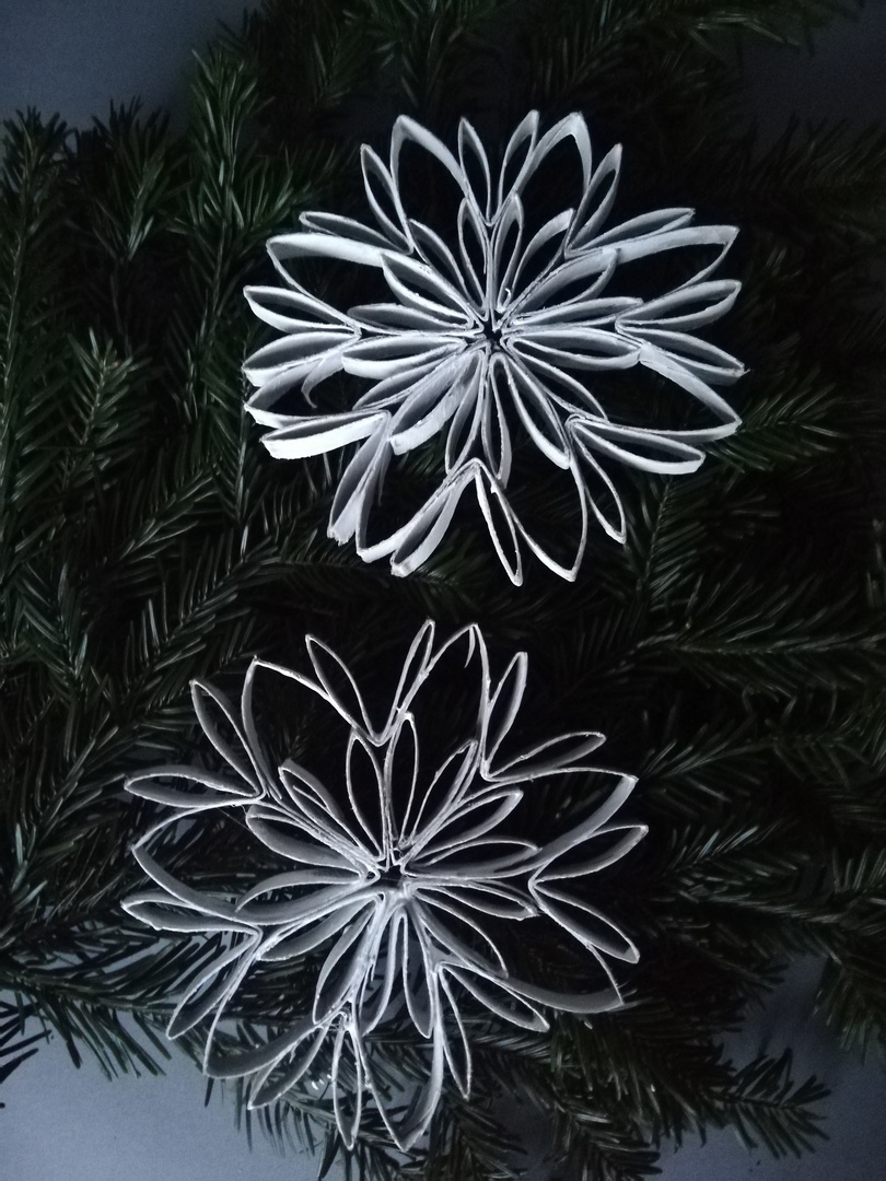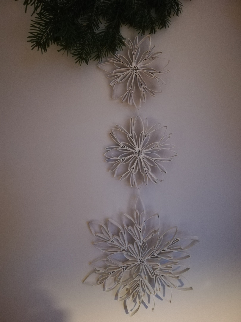 Podsuwam kolejny pomysł na wykorzystanie rolek po papierze toaletowym, czy też ręczniku papierowym. Zachęcam do wykonania oryginalnych, dowolnej wielkości śnieżynek a tym samym do stworzenia ciekawej dekoracji w formie zawieszki, girlandy bądź efektownego łańcucha.