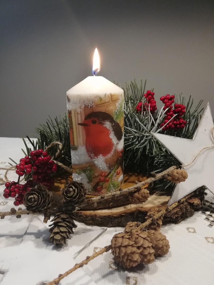 Wybrałam dziś motyw zimowy, jako że jesteśmy w okresie świątecznym i pewnie w wielu domach pozostały niewykorzystane serwetki, lub niedopalone świece, warto nadać tym przedmiotom drugie życie.