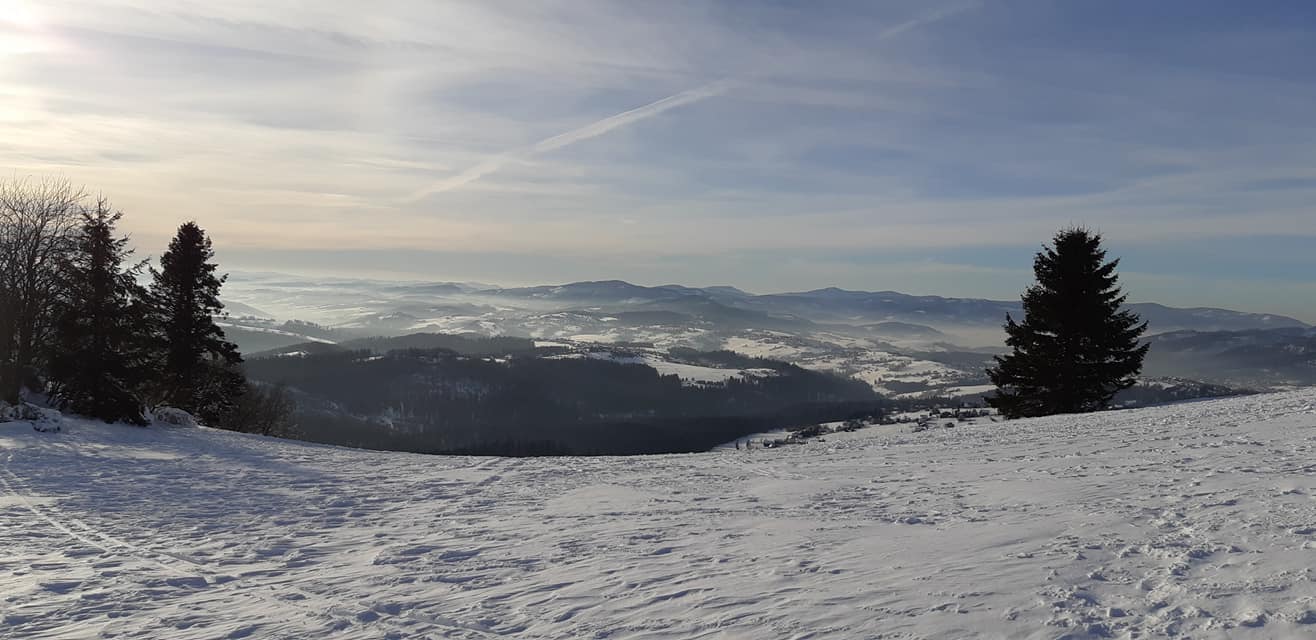 Dzisiaj w ten piękny mroźny poniedziałek zapraszam na spacer na Ochodzitą gdzie bedziecie mogli podziwiać imponujący widok i jedna z najbogatszych panoram w Beskidach