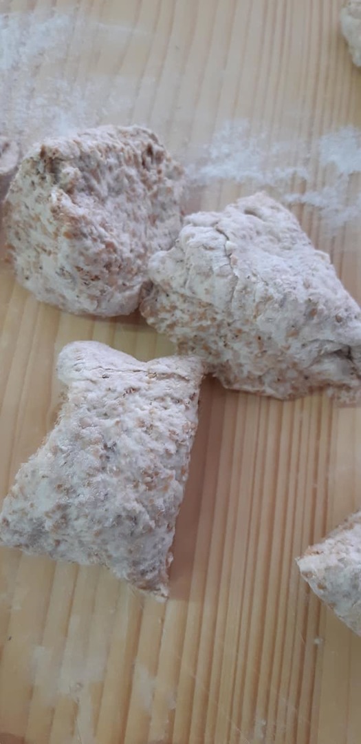 3. Wyrośnięte ciasto przekładamy na stolnicę dzielimy na równe części i formujemy bułeczki.