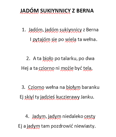 "Jadóm sukiynnicy z Berna" w wykonaniu istebnia艅skiej kapeli (nagranie pochodzi z p艂yty "Muzyka Beskidów. Istebna-Jaworzynka-Koniaków)
