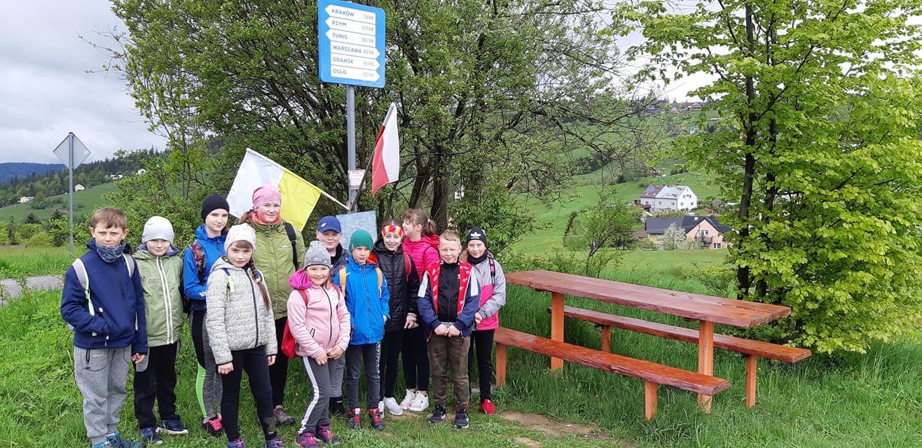Tyniok 892 m n.p.m. Po drodze mogliśmy spocząć na ławeczce, która powstala na szlaku dla turystow z okazji 100 rocznicy urodzin Jana Pawła II.