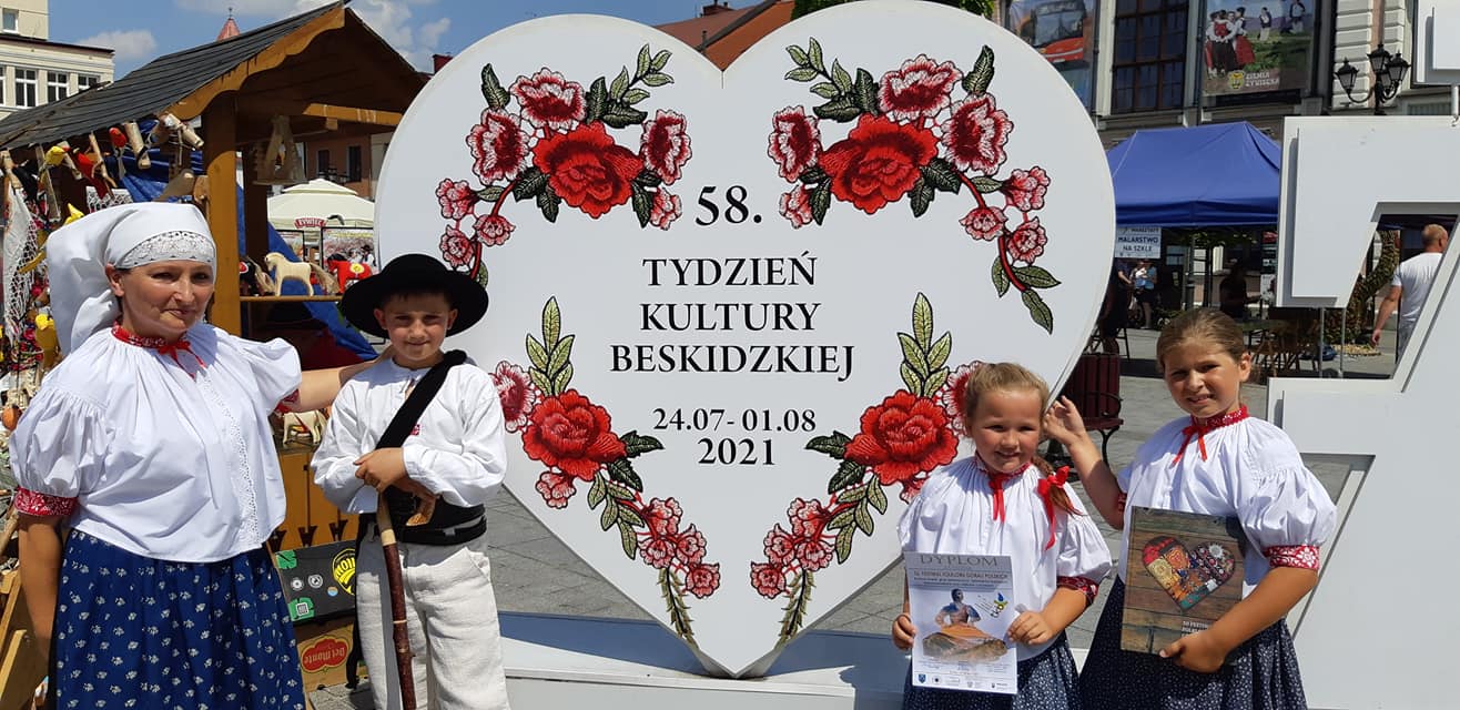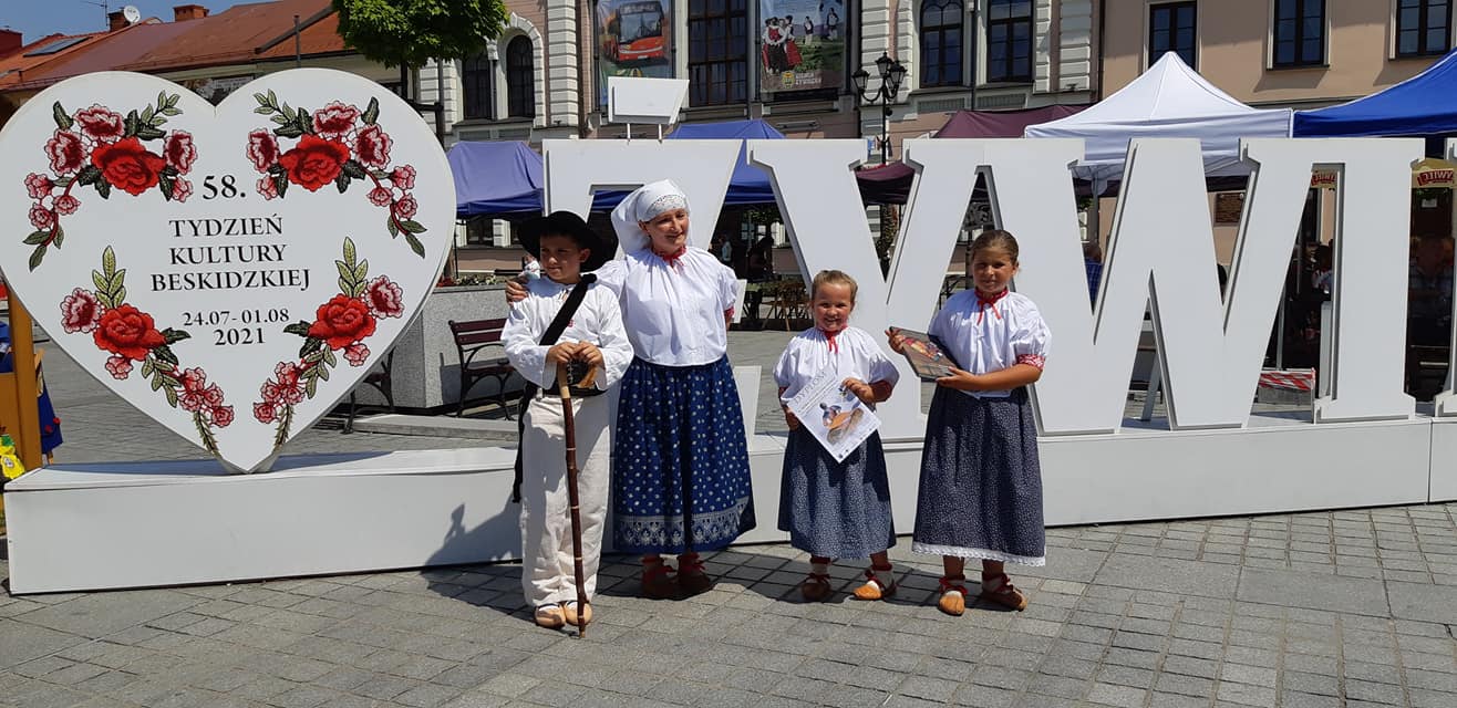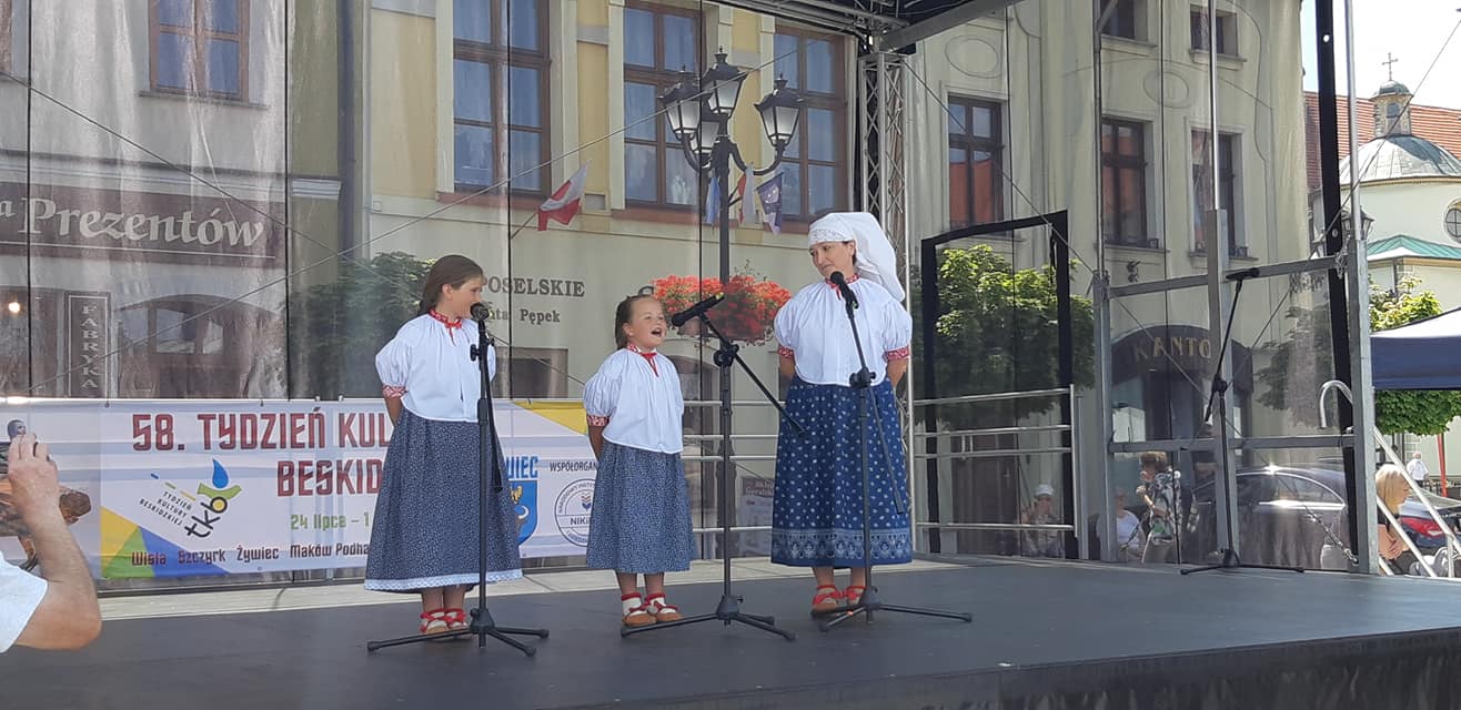 Pozdrowienia z Żywieckiego Rynku przesyłają Elżbieta Legierska-Niewadomska wraz z uczniami Lenką, Roksaną i Pawłem którzy zaprezentowali się w ramach 52. Festiwalu Folkloru Górali Polskich, w kategorii Mistrz i Uczeń