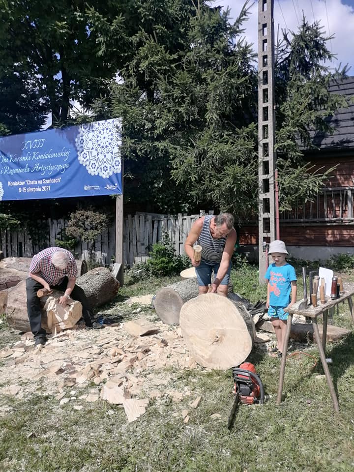 Plener Rzeźbiarski na Szańcach w ramach Dni Koronki w Koniakowie z udziałem naszego współpracownika Zbigniewa Krężeloka, którzy wraz z Panem Tadeuszem Ruckim przygotowują wyjątkowe rzeźby o wielowymiarowych formach. Warto odwiedzić plac na Szańcach by zobaczyć to dzieło na własne oczy