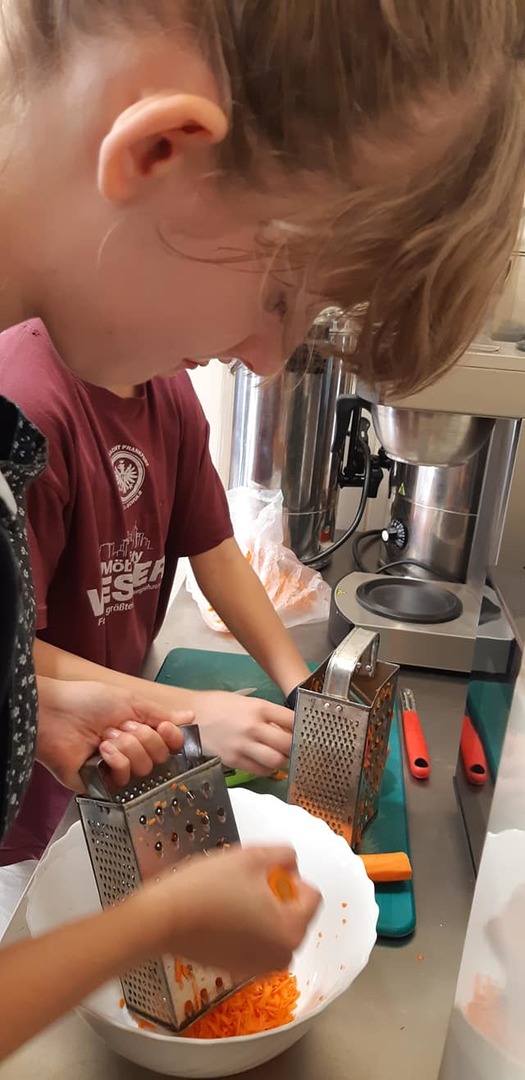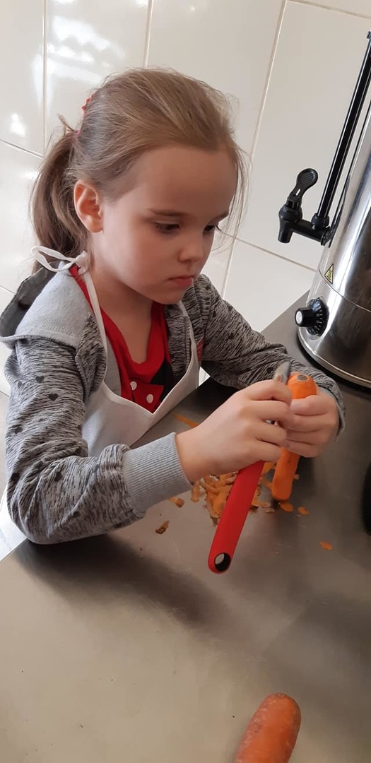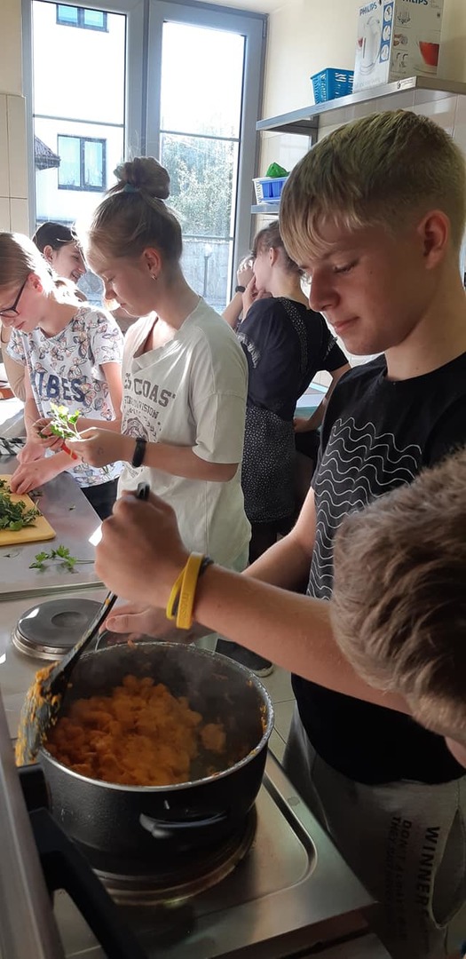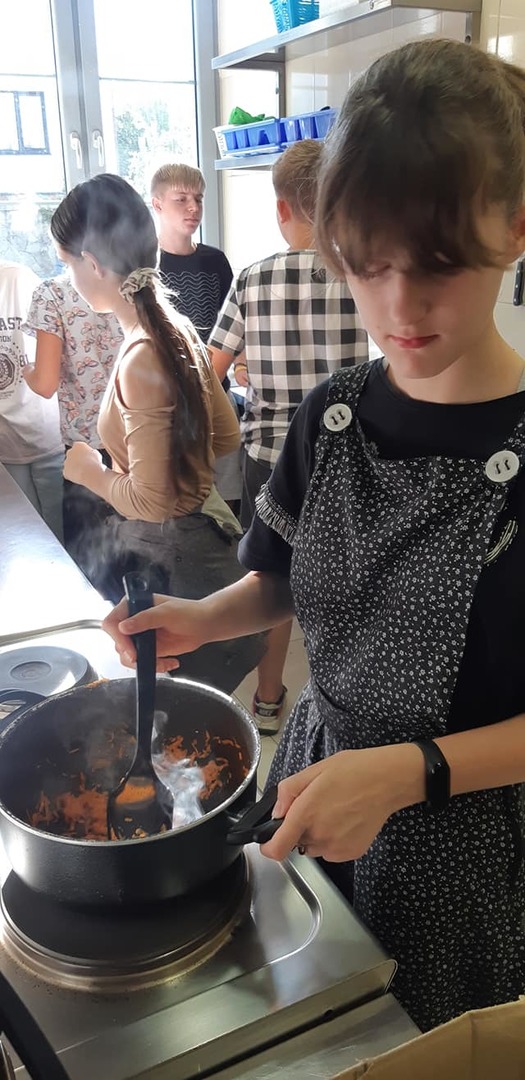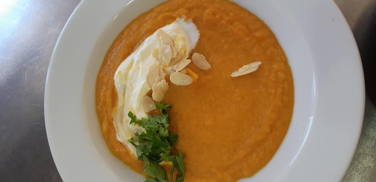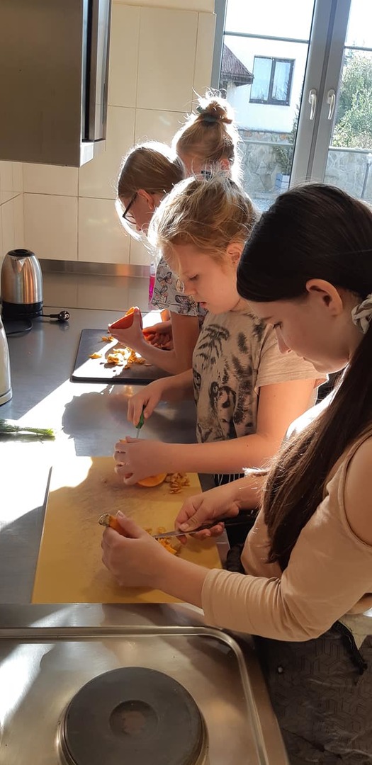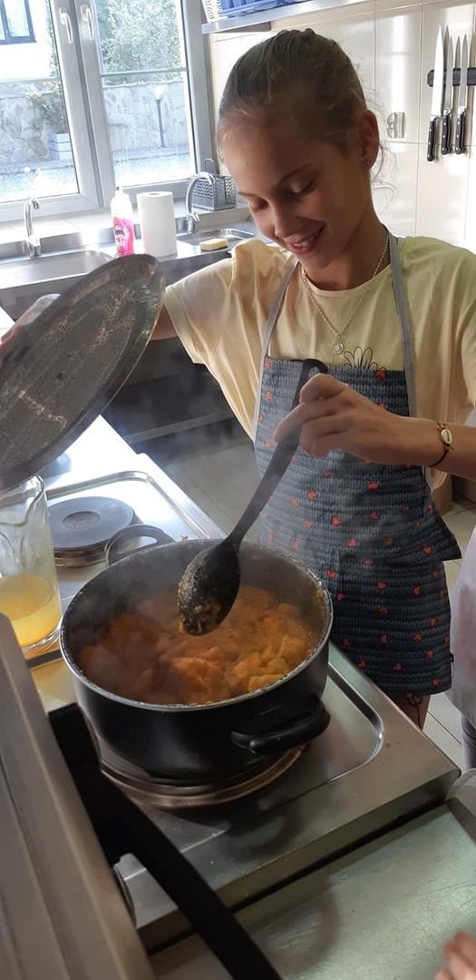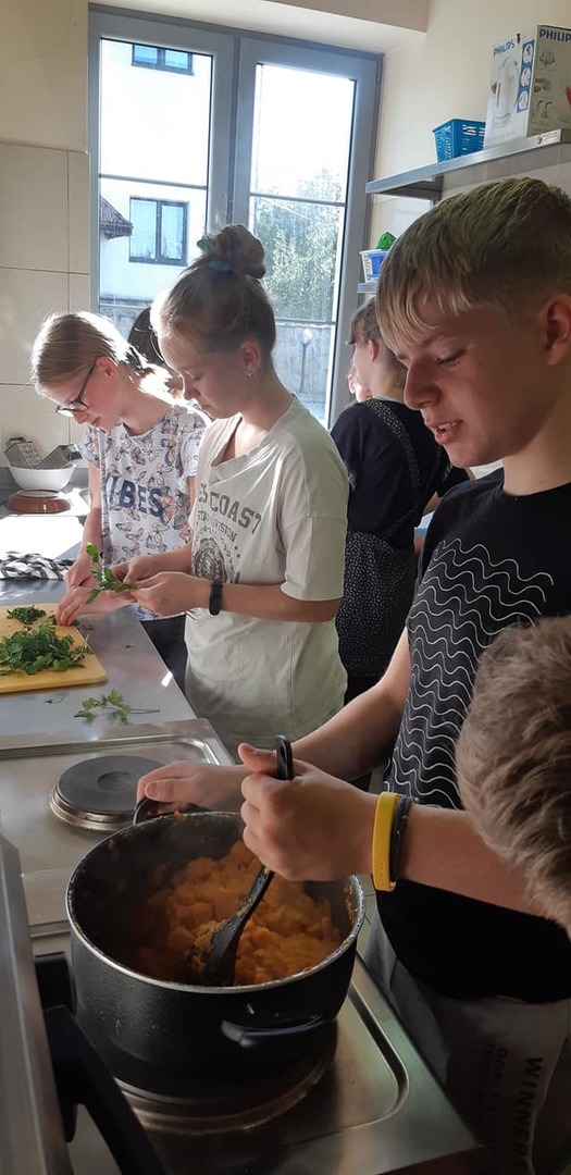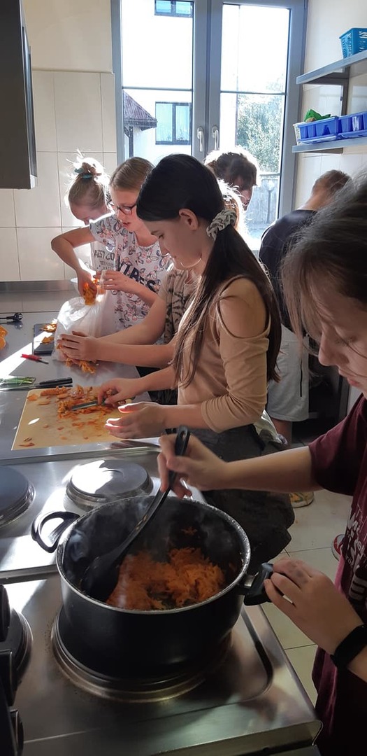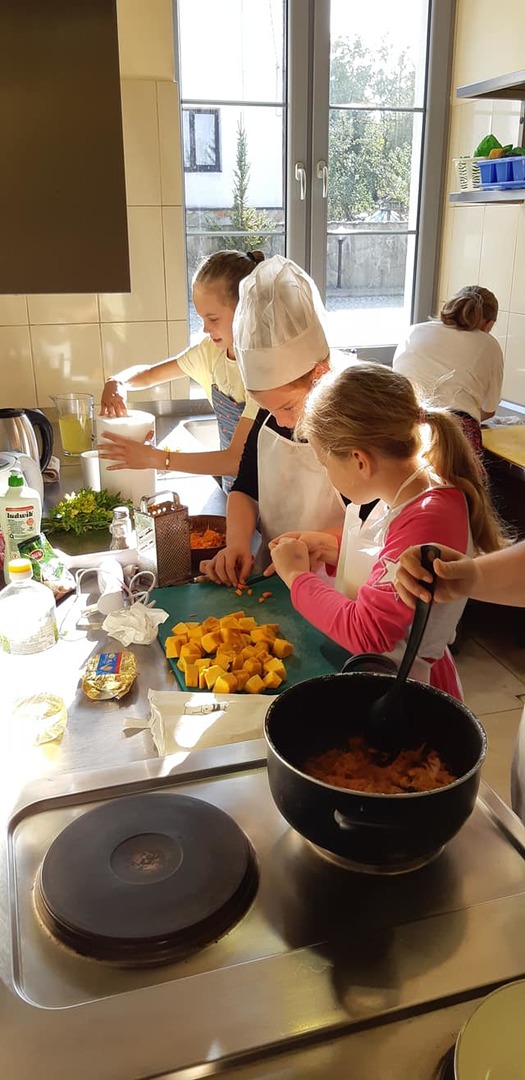 zarówno grupa m艂odsza jak i starsz膮 przygotowa艂y krem z dyni z pra偶onymi migda艂ami