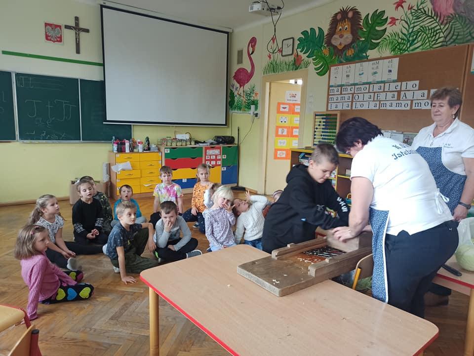 W zeszłym tygodniu aż cztery grupy dzieci z Gminnego Przedszkola w Istebnej również brały udział w zajęciach podczas których miały okazję poznać tradycyjny sposób kiszenia kapusty.
