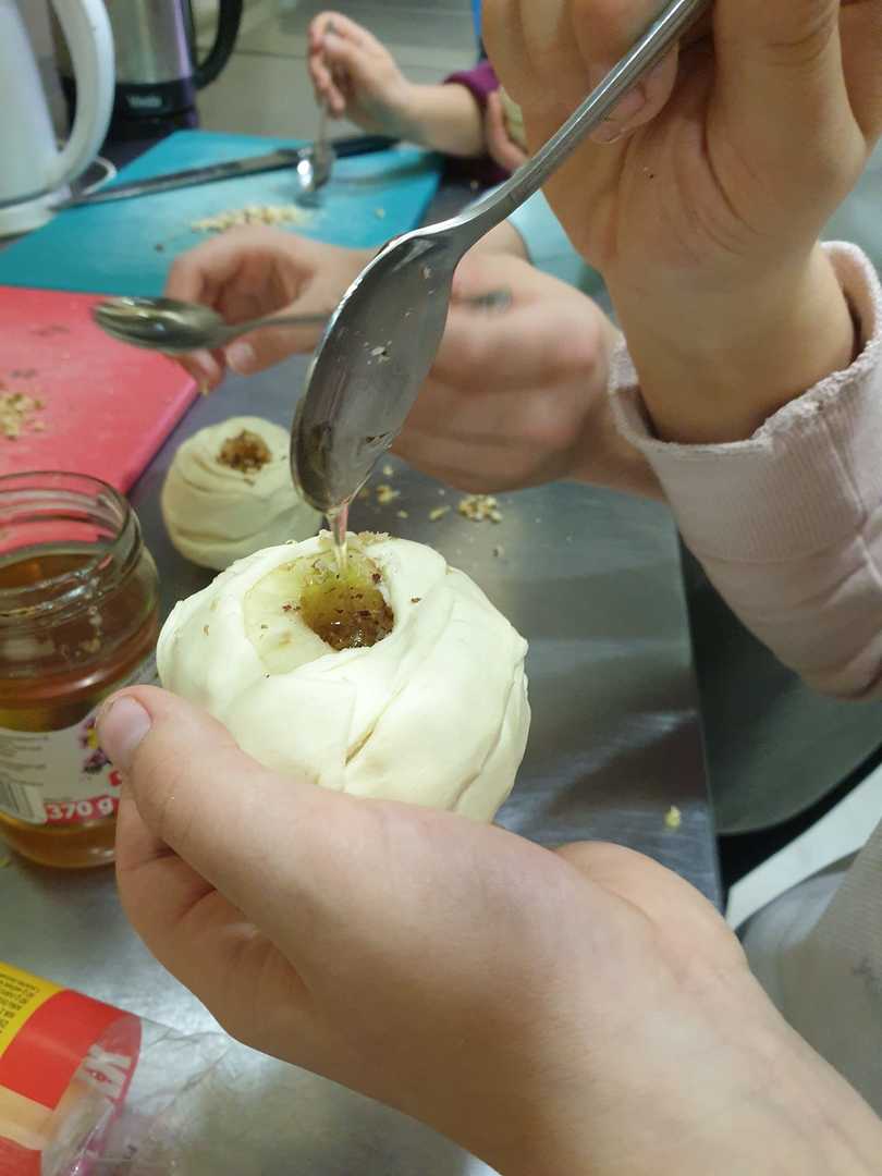 Proponujemy pieczone jabłuszko w cieście francuskim🍎🍏 dzis mieliśmy okazję przygotować ten smaczny aromatyczny deser podczas koła kulinarnego👩‍🍳🧑‍🍳