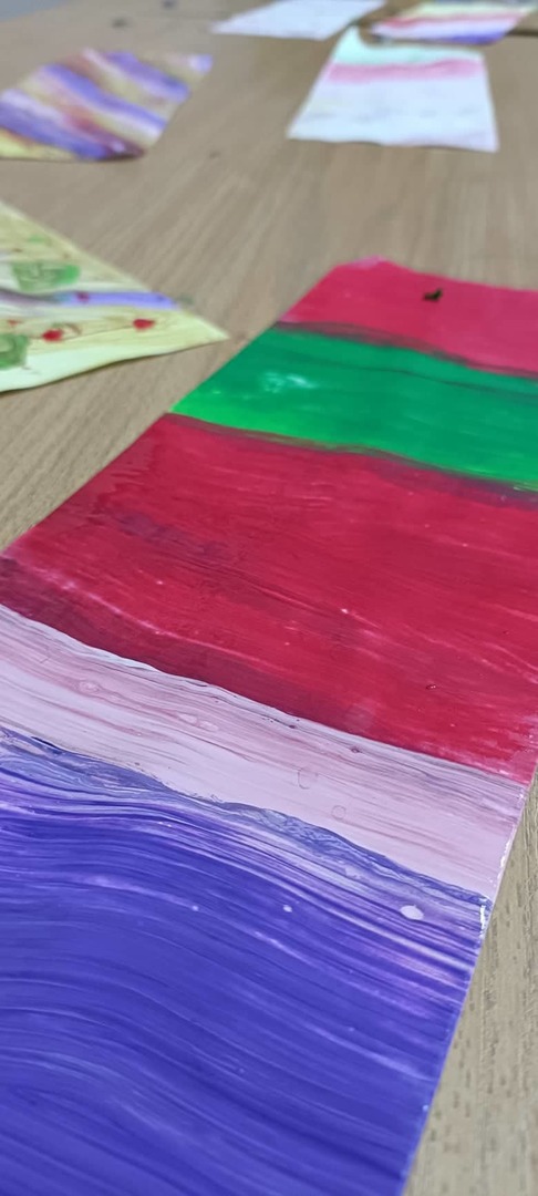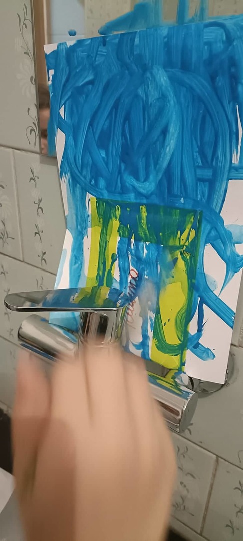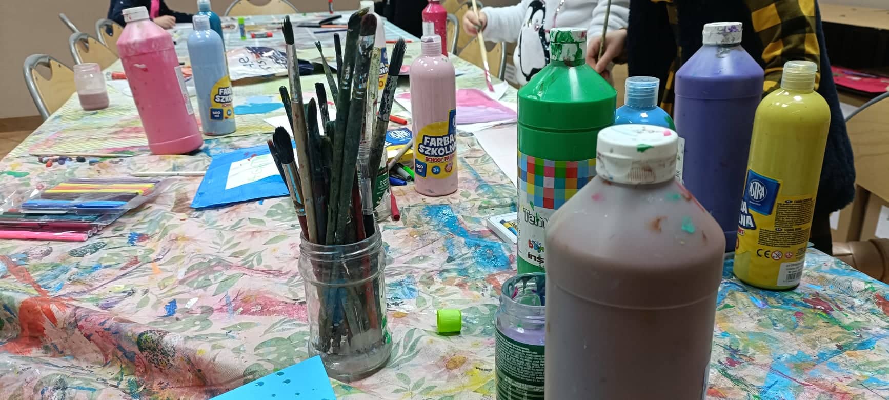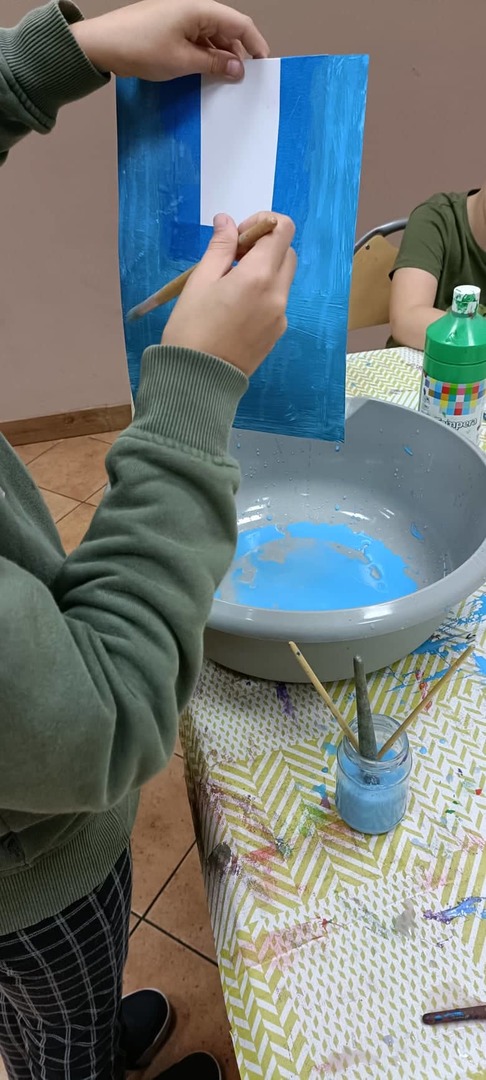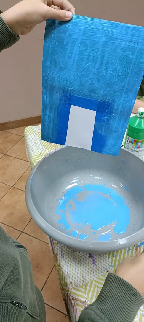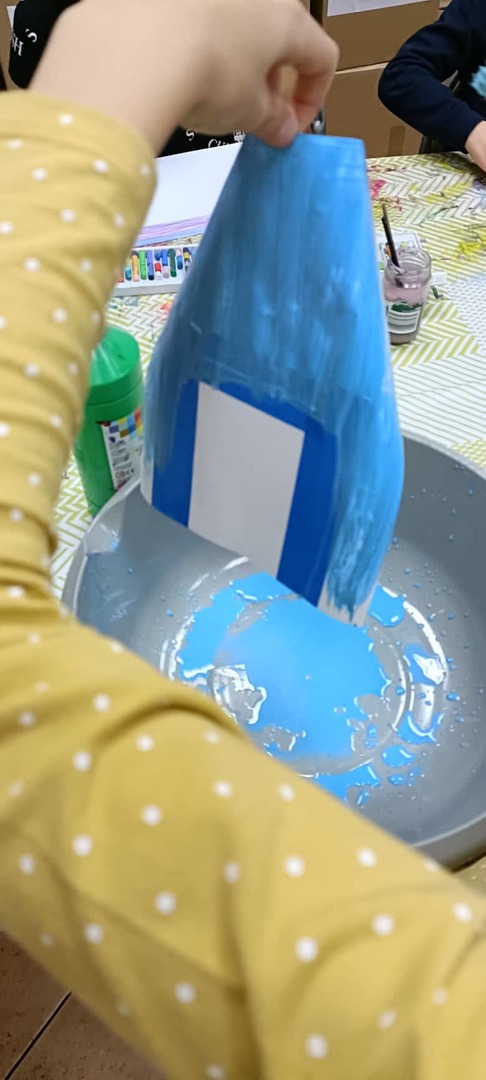 Najwięcej frajdy sprawiło wszystkim bezkarne obcowanie z miską i umywalką jako narzędziem malarskim. w domu na to zazwyczaj nie pozwalamy, dlatego uczestnicy mogli wyszaleć się na zajęciach!