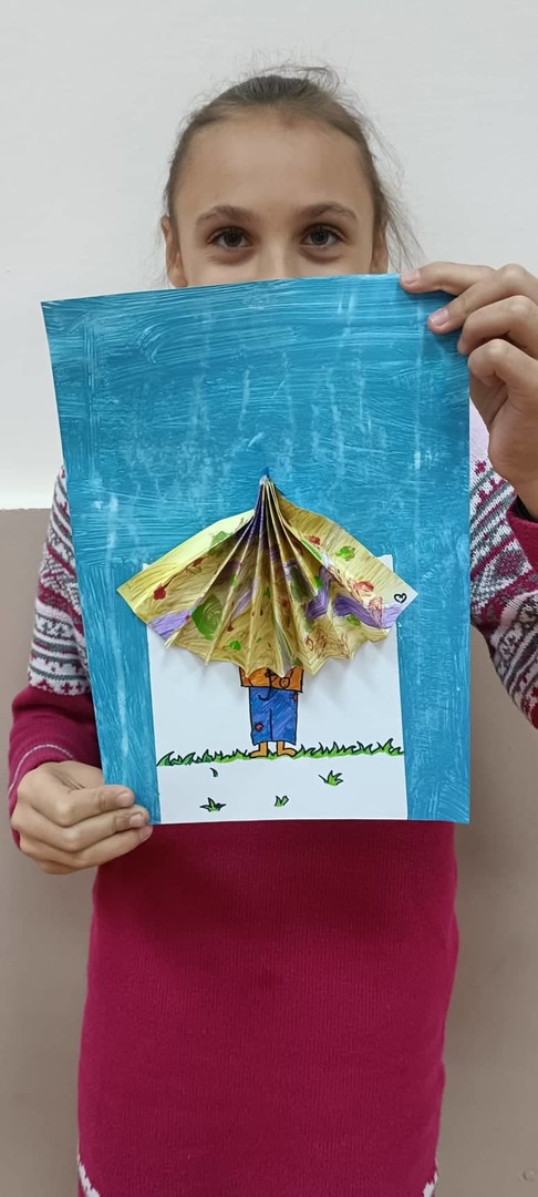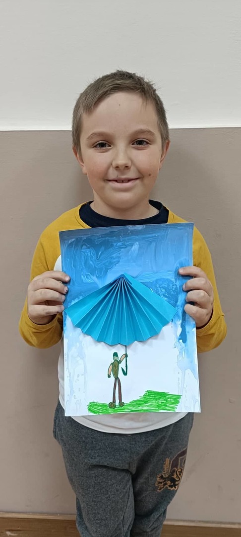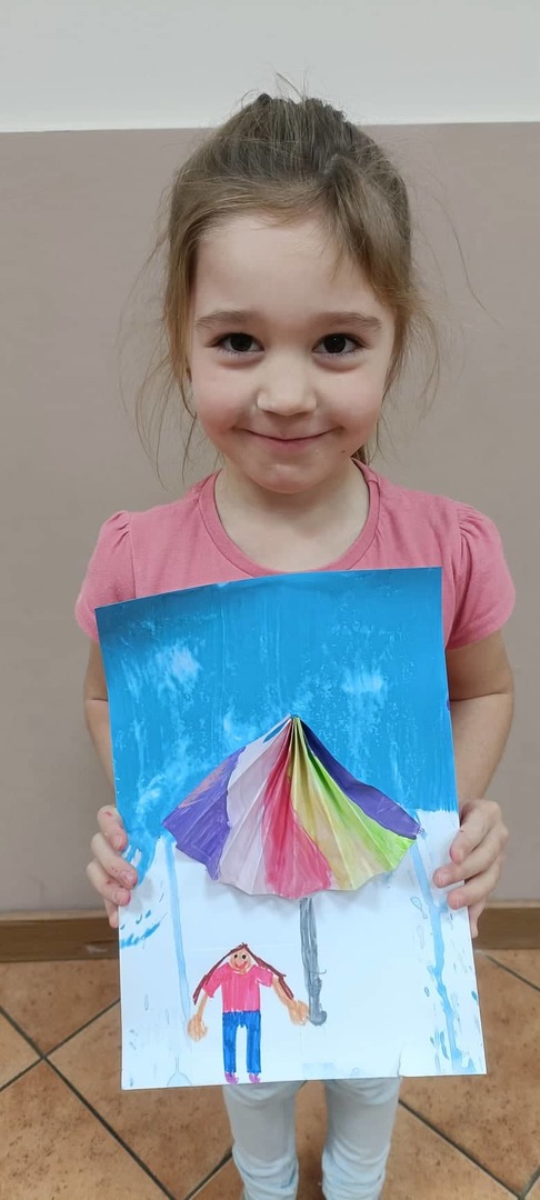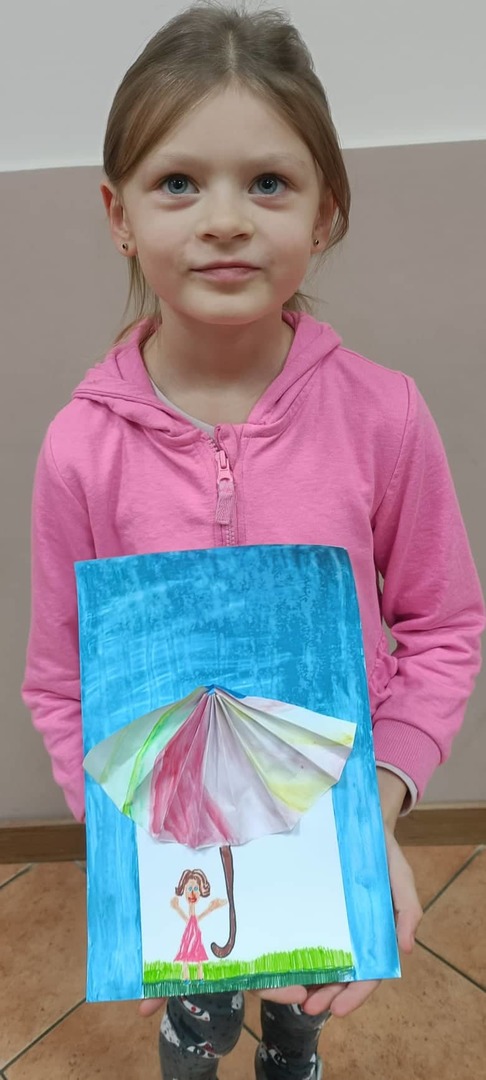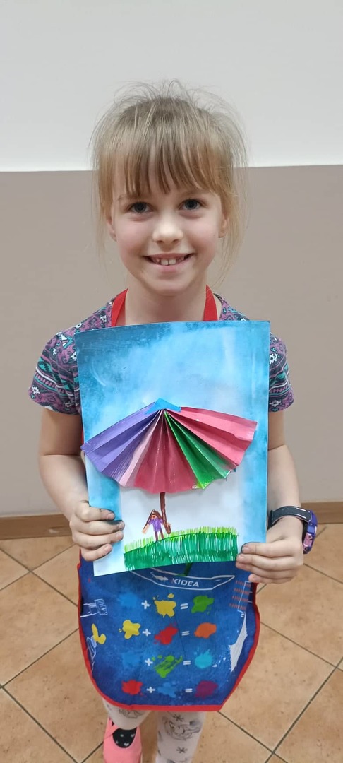 Na przekór deszczowej nudzie grupa malarska podczas dwóch kolejnych spotkań stworzyła kolaże z parasolkami.