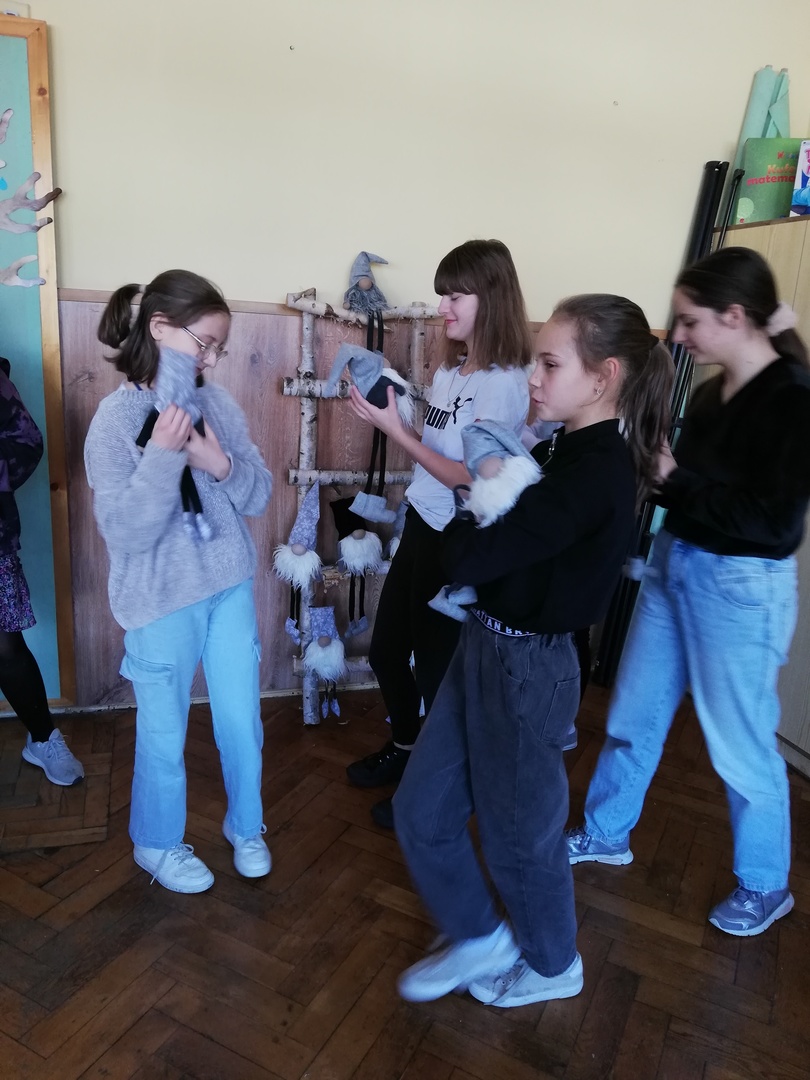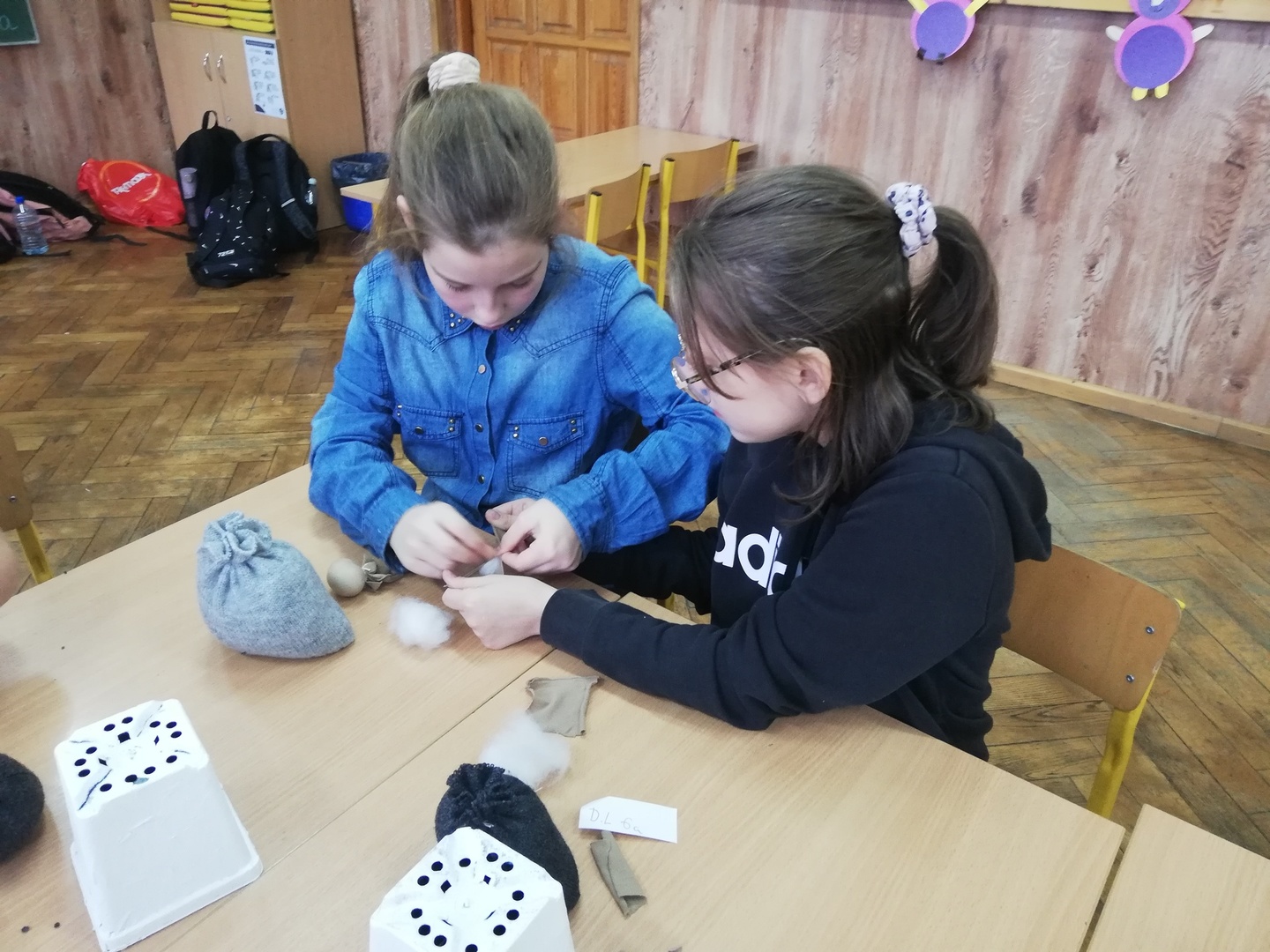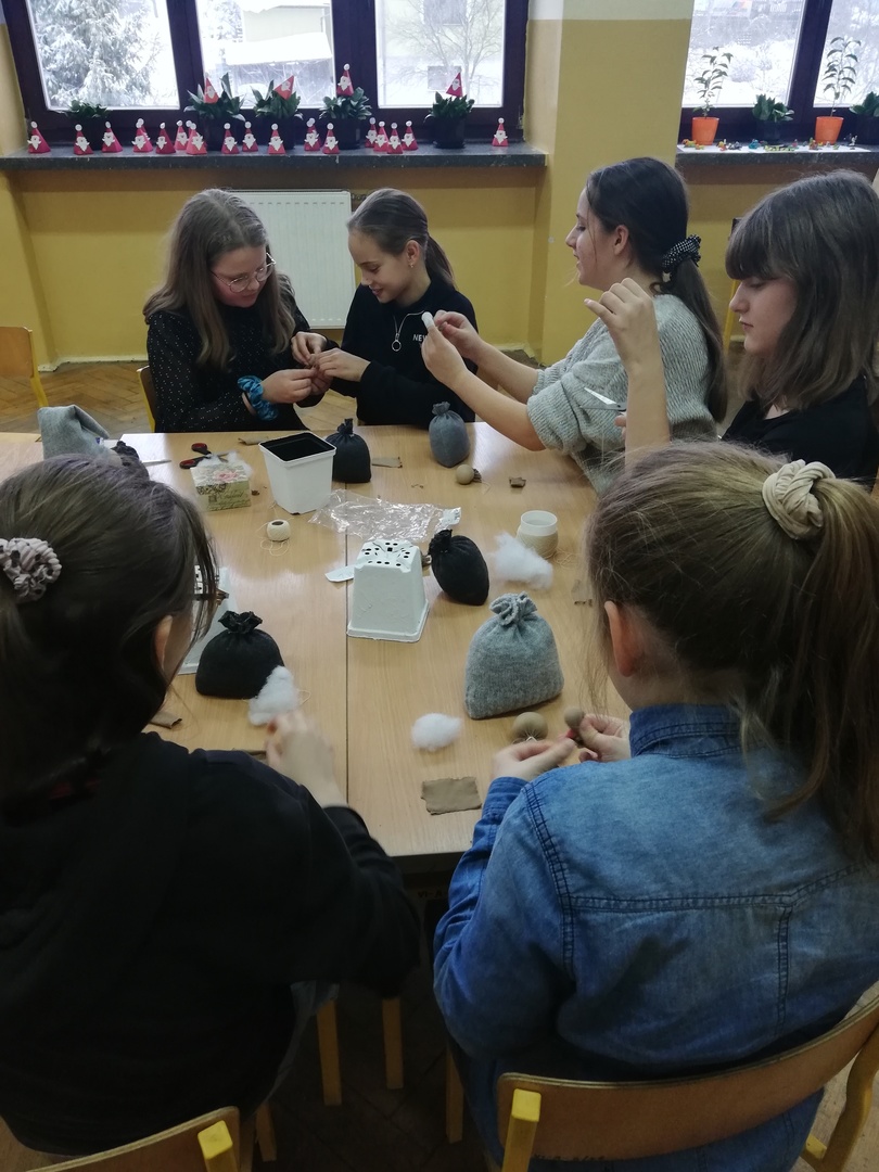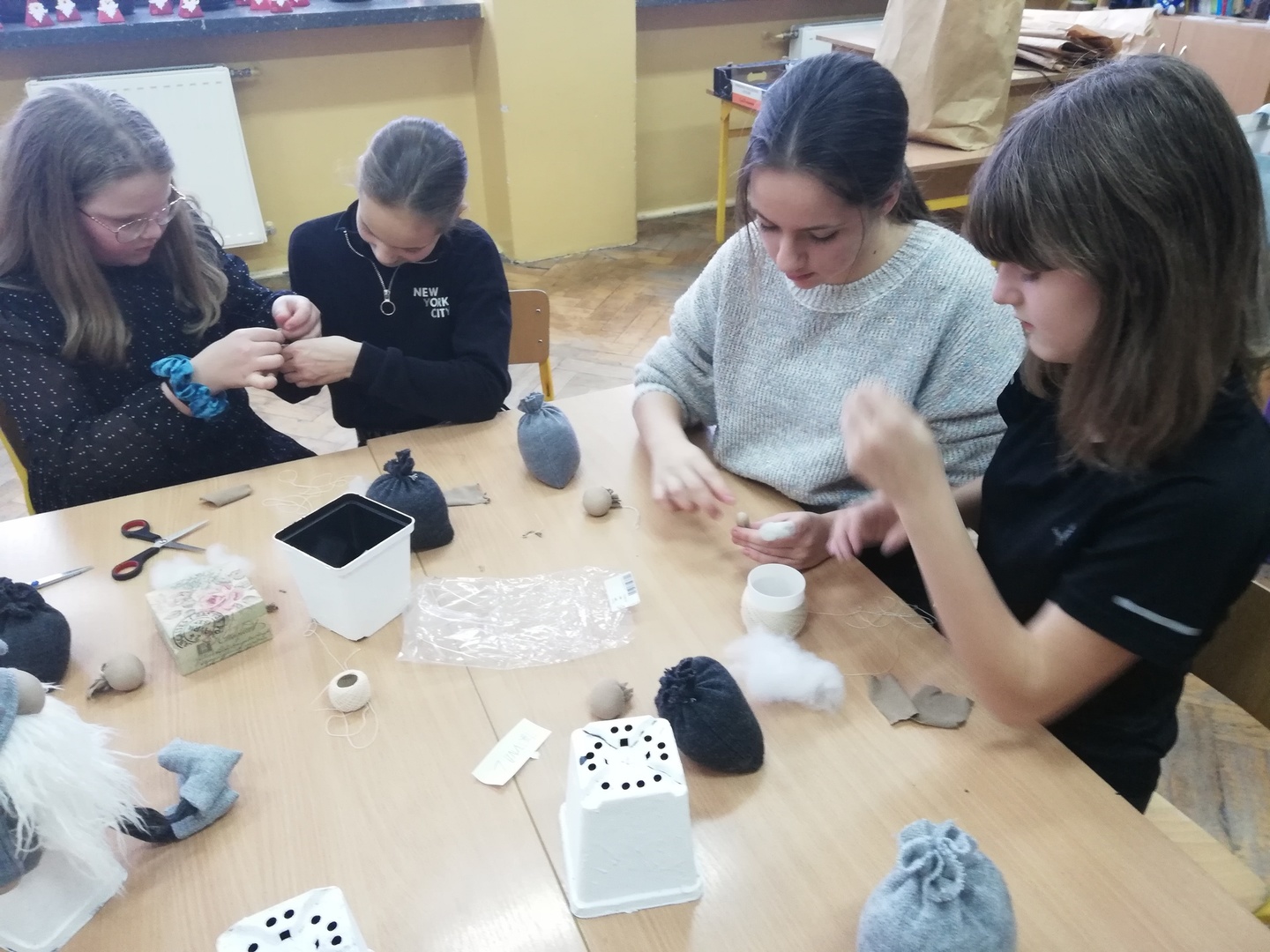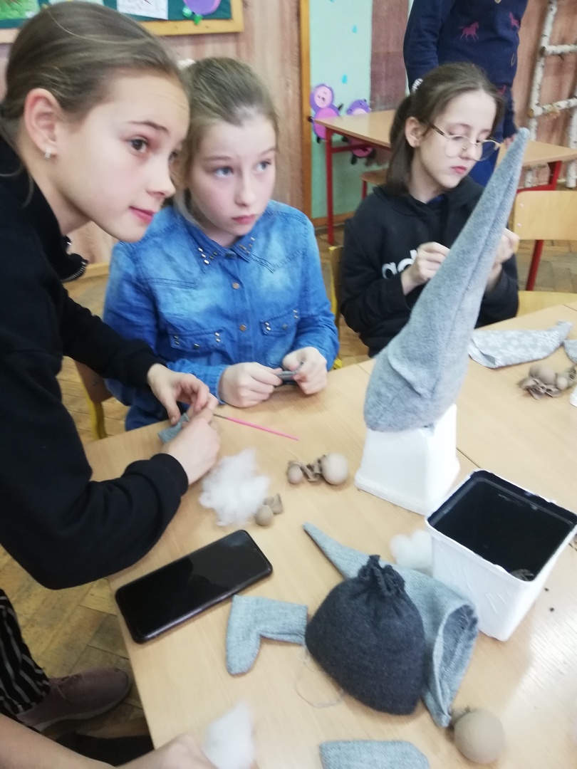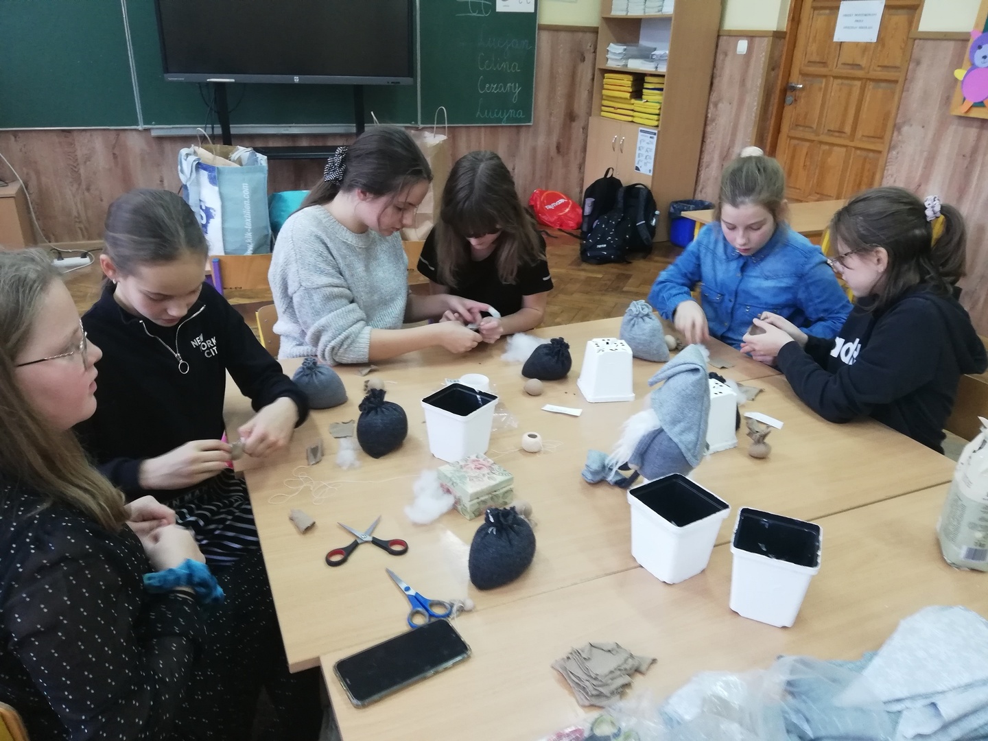 Podopieczni koła zręcznych rąk tym razem recyklingowi poddali sweterki , rajstopy, futrzane czapki, kołnierze, itp.