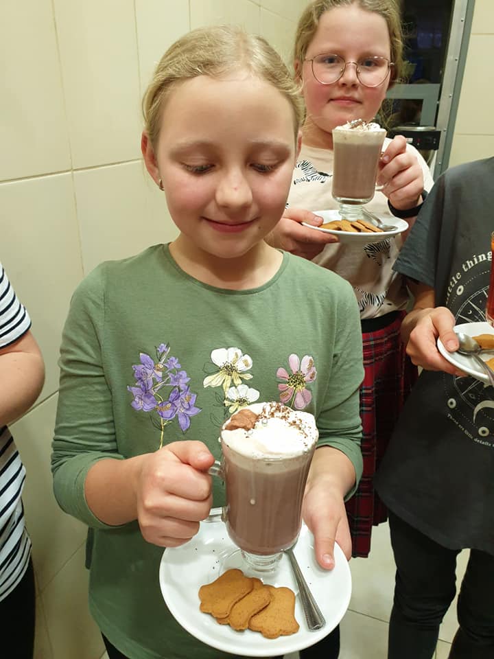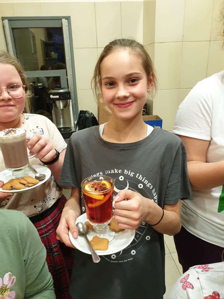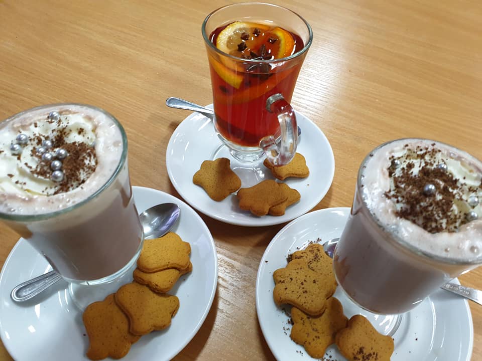 Oczywiście rozgrzewające napoje w różnych odsłonach. Koło kulinarne proponuje herbatkę z cytrusami, goździkami i przyprawamy i syropem malinowym lub goraca czekoladę z bitą śmietaną i słodkimi dodatkami