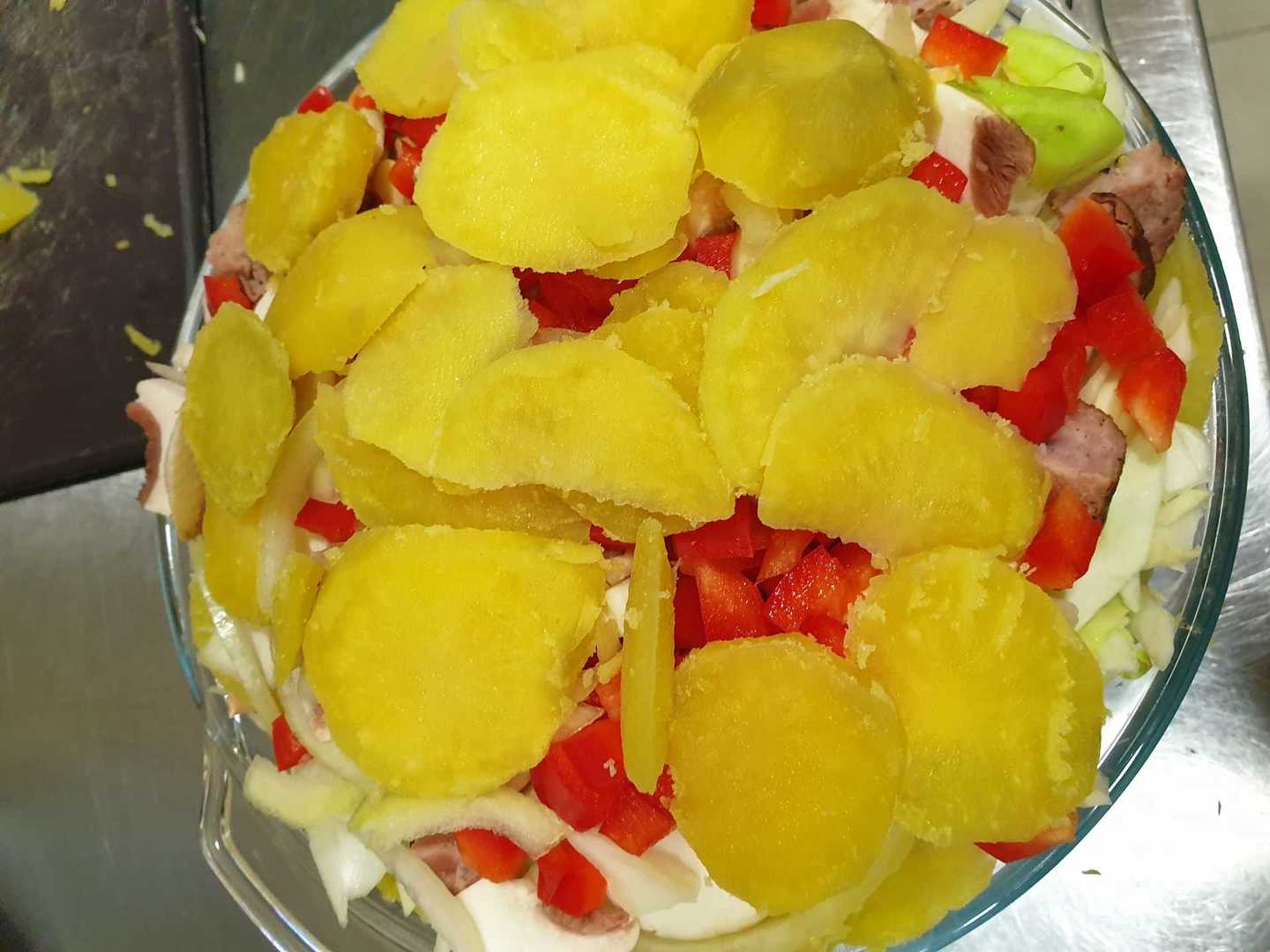 Wszystko przełożyć warstwami w naczyniu żaroodporny i zapiec ok 1 gdz.