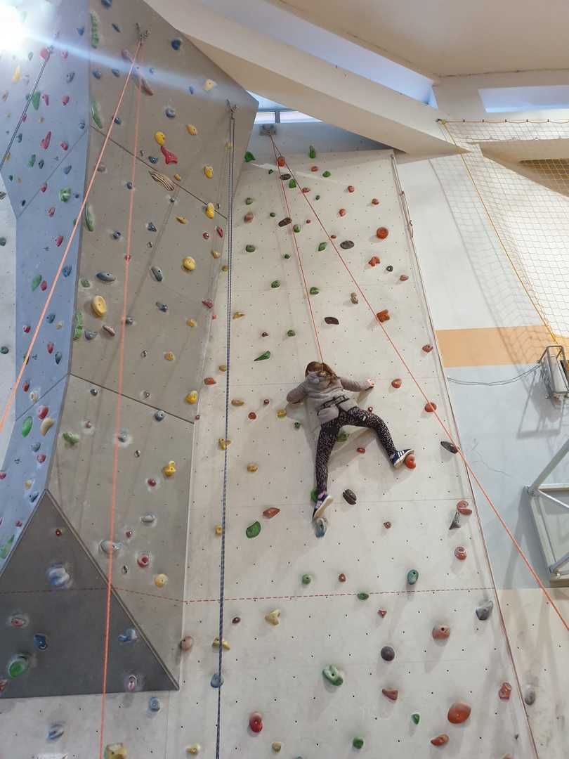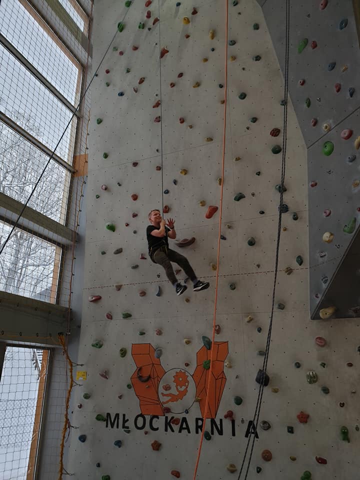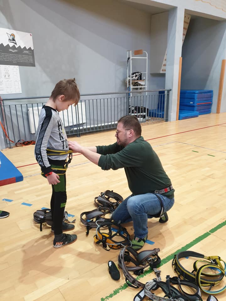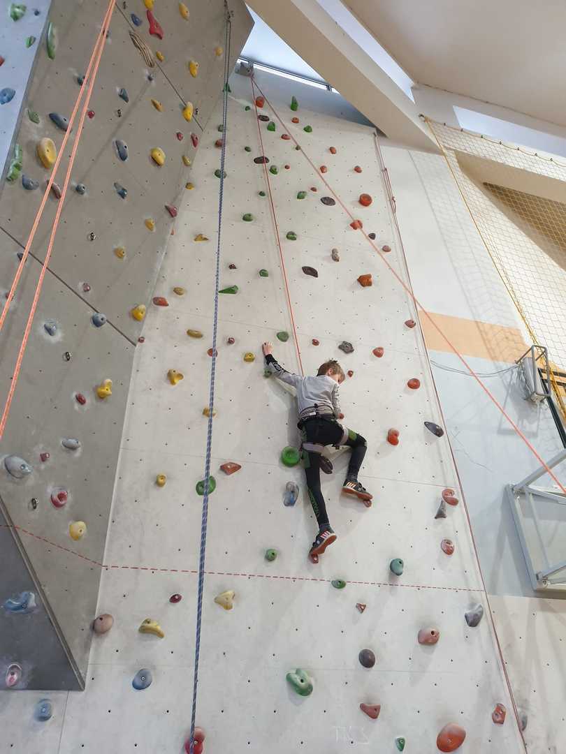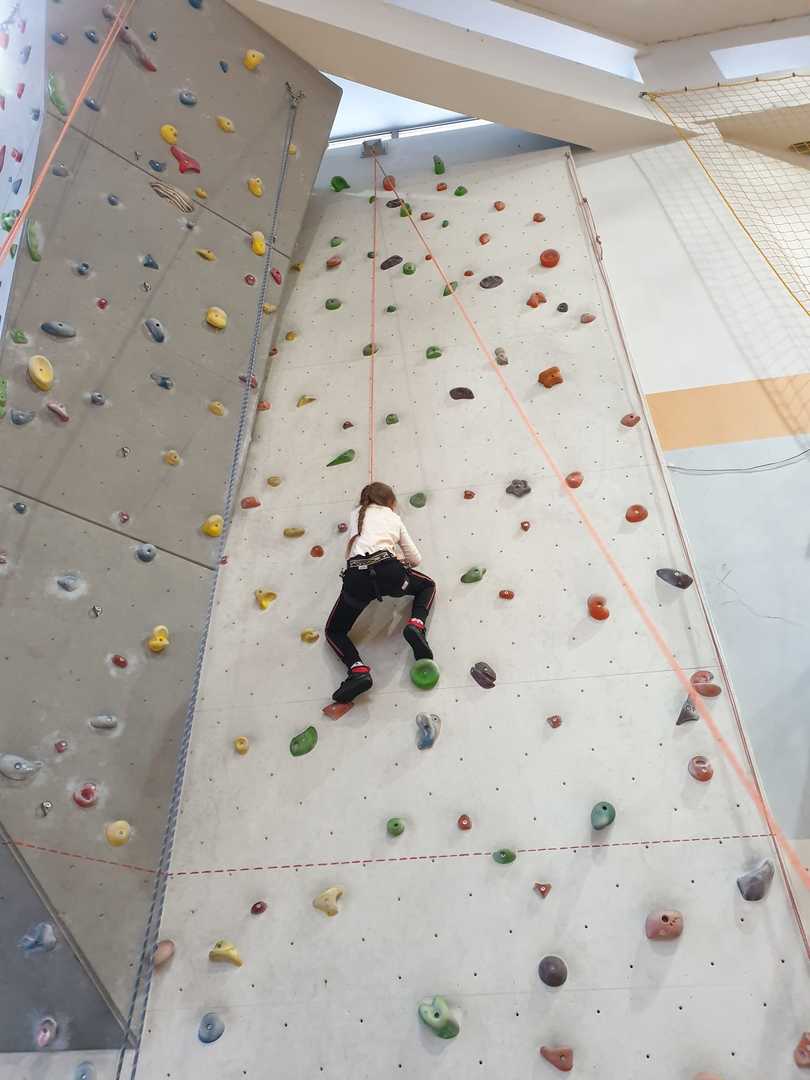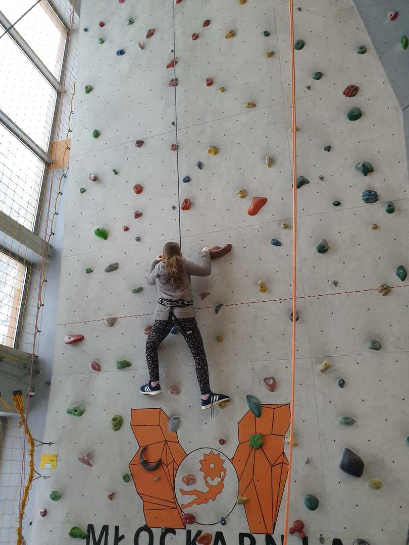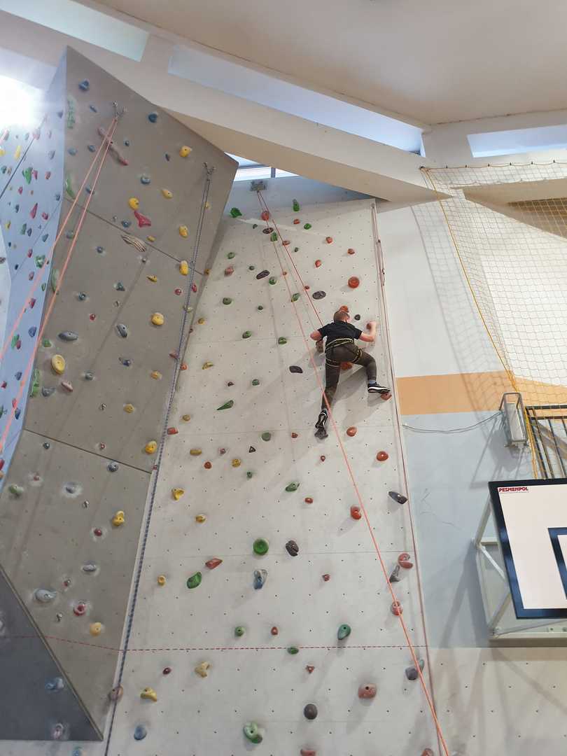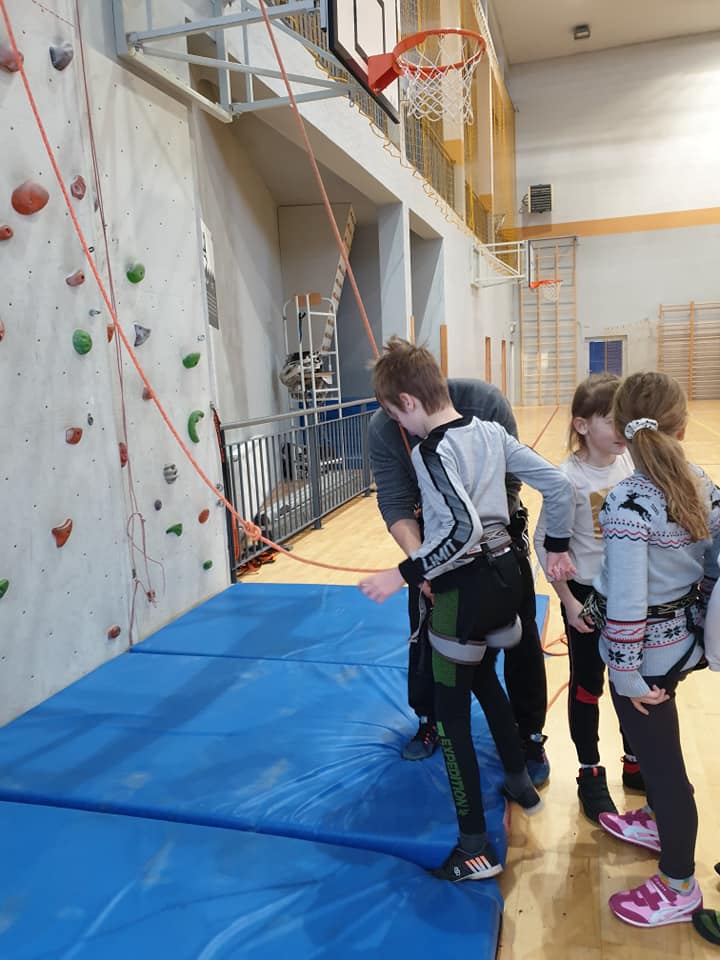 Grupa turystyczna wykazała się nie lada kondycją i zręcznością by wspiąć się na 10 m ściankę, ktora znajduje się na hali sportowej w Szkole Podstawowej nr 1 w Rajczy. Pod czujnym okiem i przy asekuracji wykwalifikowej kadry niektórzy z uczestników kilka krotnie wielu się na sam szczyt