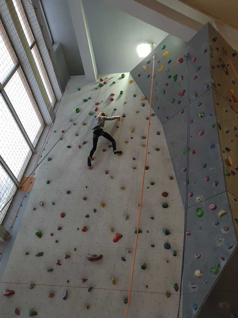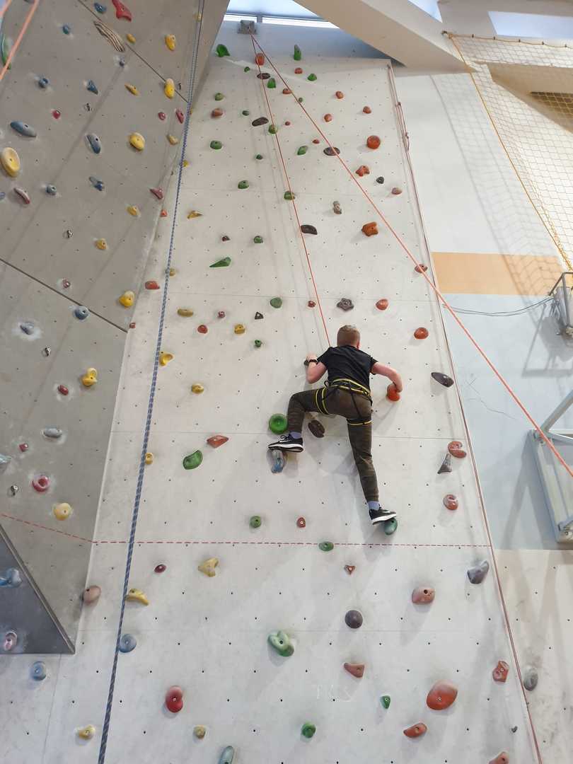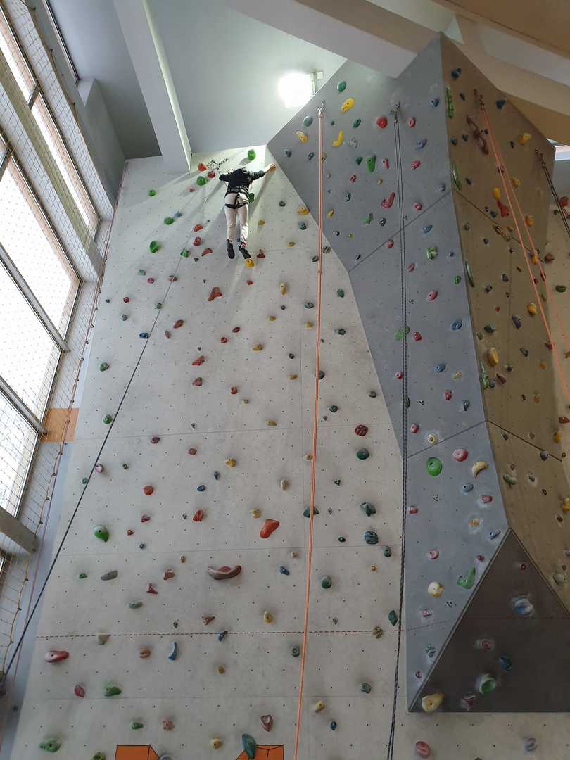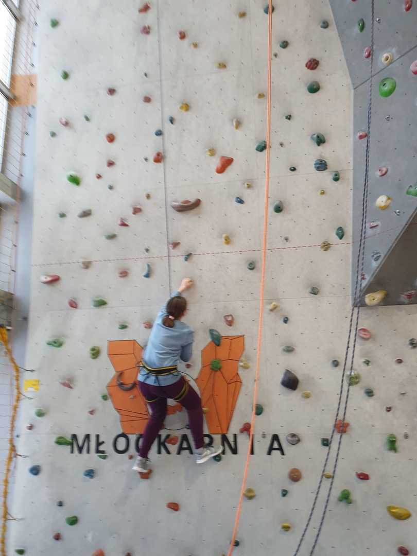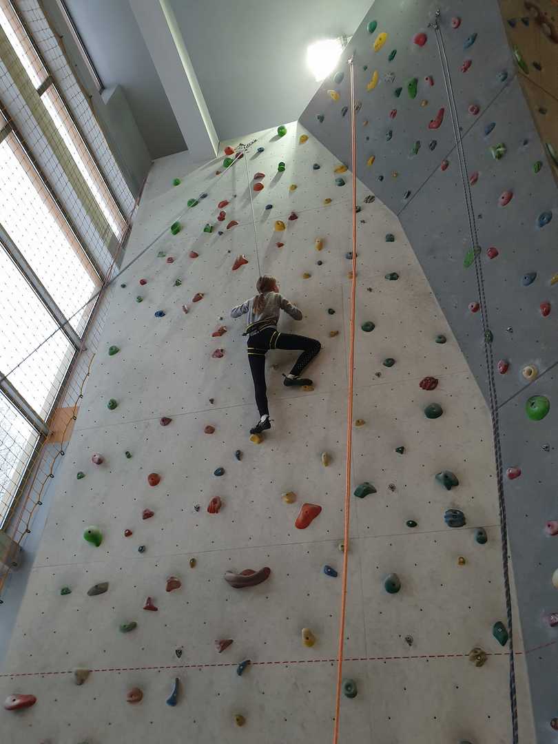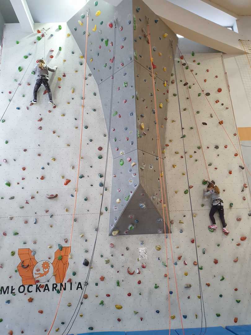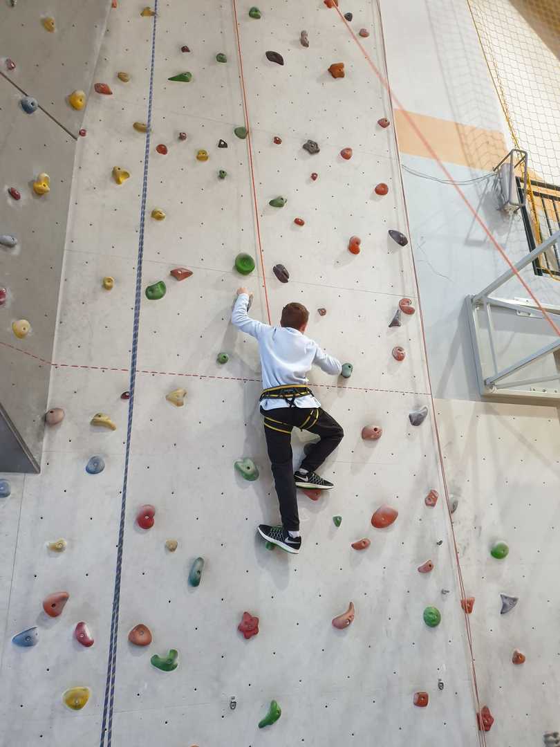 Grupa turystyczna wykazała się nie lada kondycją i zręcznością by wspiąć się na 10 m ściankę, ktora znajduje się na hali sportowej w Szkole Podstawowej nr 1 w Rajczy. Pod czujnym okiem i przy asekuracji wykwalifikowej kadry niektórzy z uczestników kilka krotnie wielu się na sam szczyt