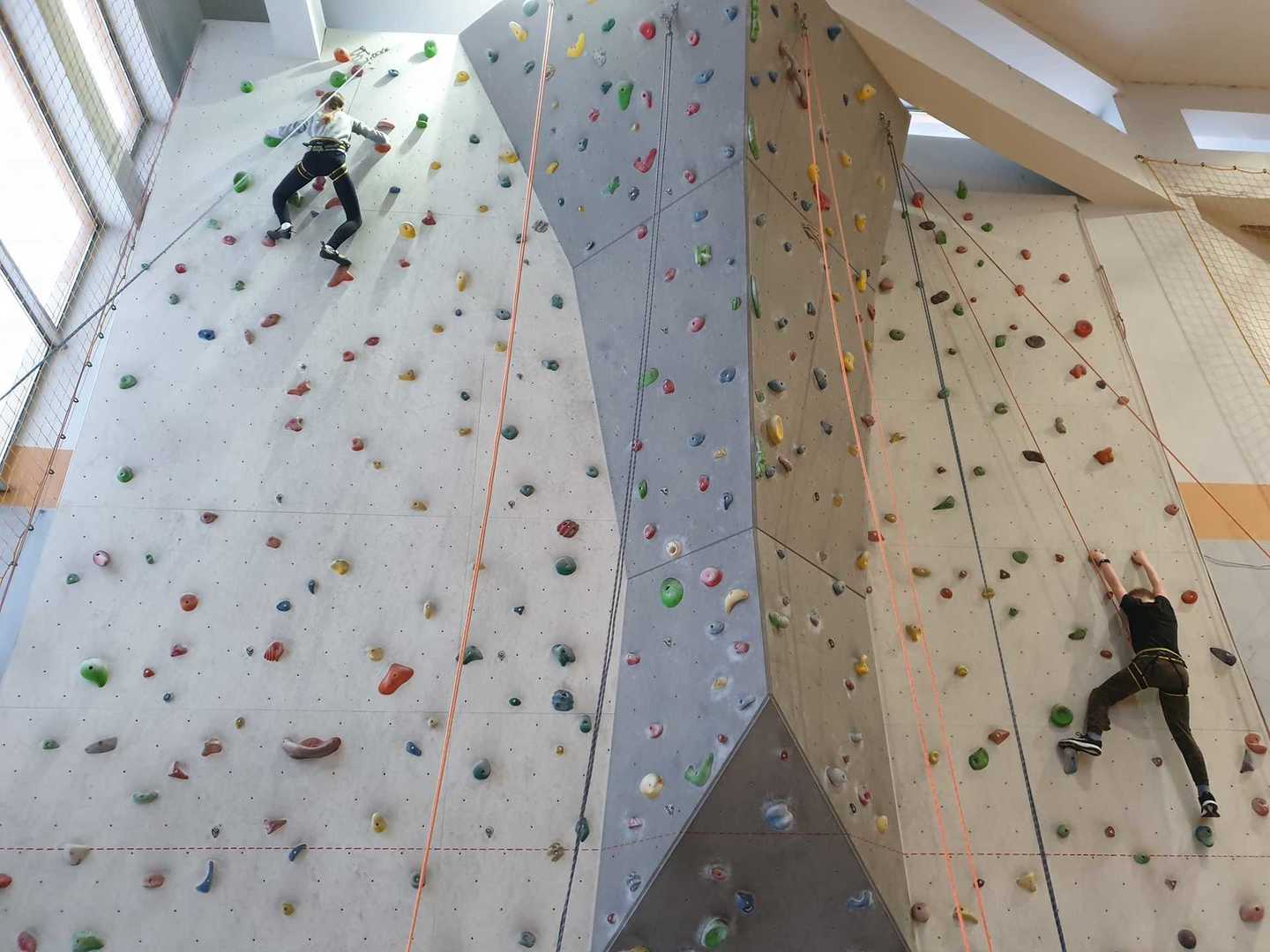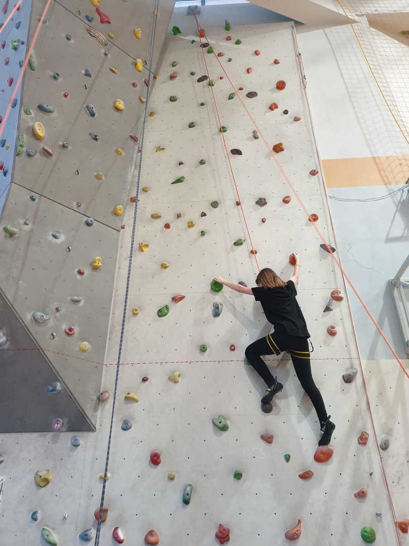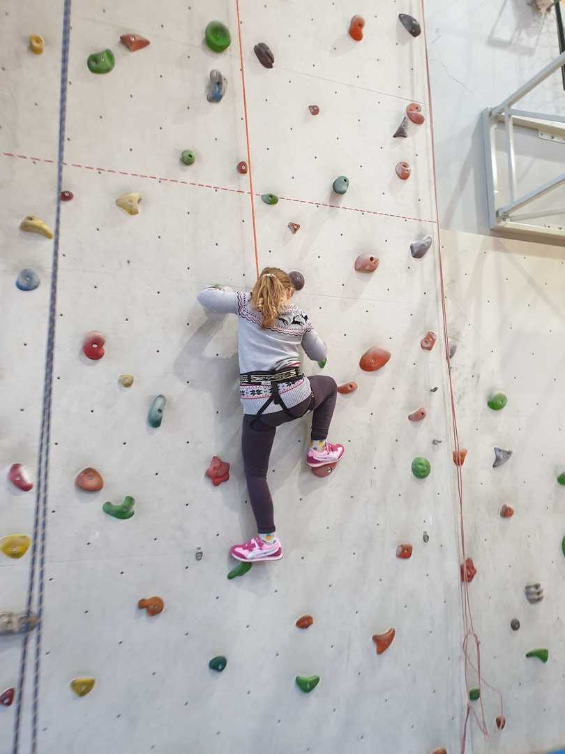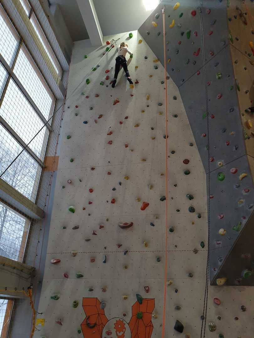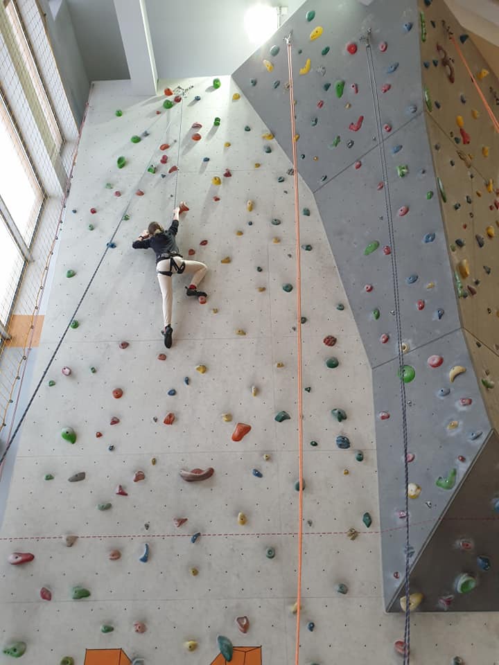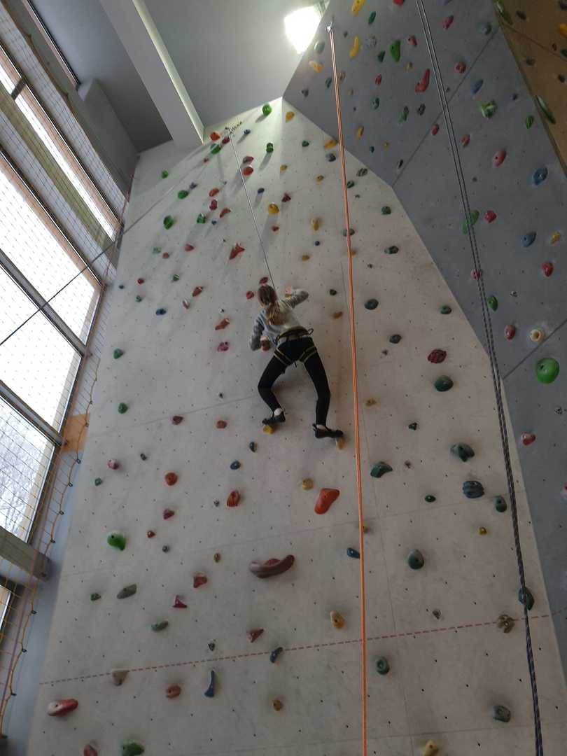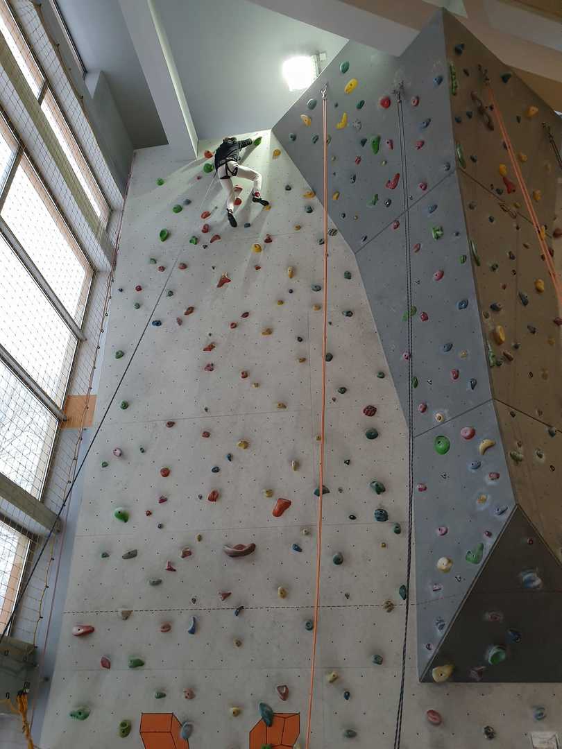 Grupa turystyczna wykazała się nie lada kondycją i zręcznością by wspiąć się na 10 m ściankę, ktora znajduje się na hali sportowej w Szkole Podstawowej nr 1 w Rajczy. Pod czujnym okiem i przy asekuracji wykwalifikowej kadry niektórzy z uczestników kilka krotnie wielu się na sam szczyt
