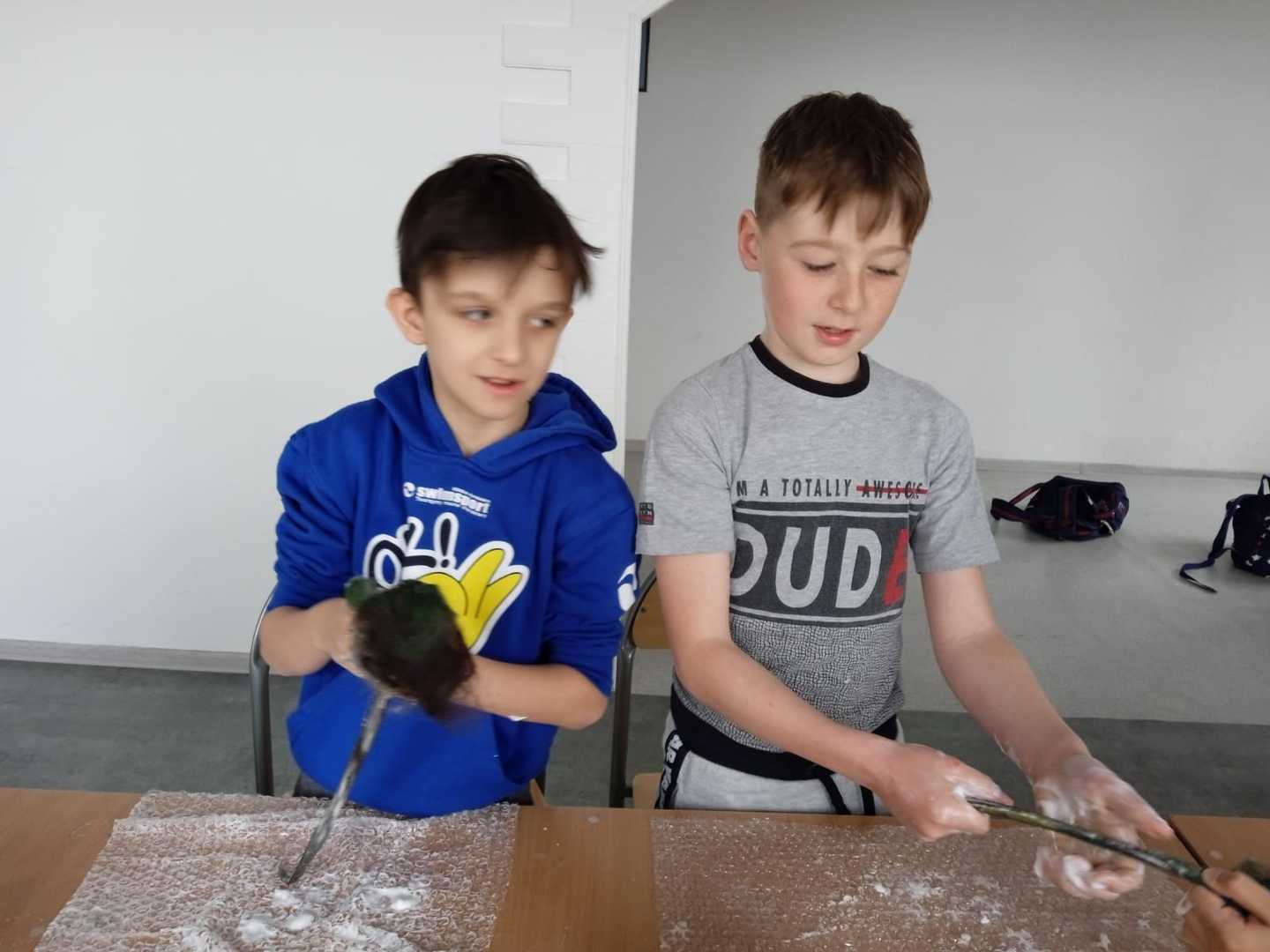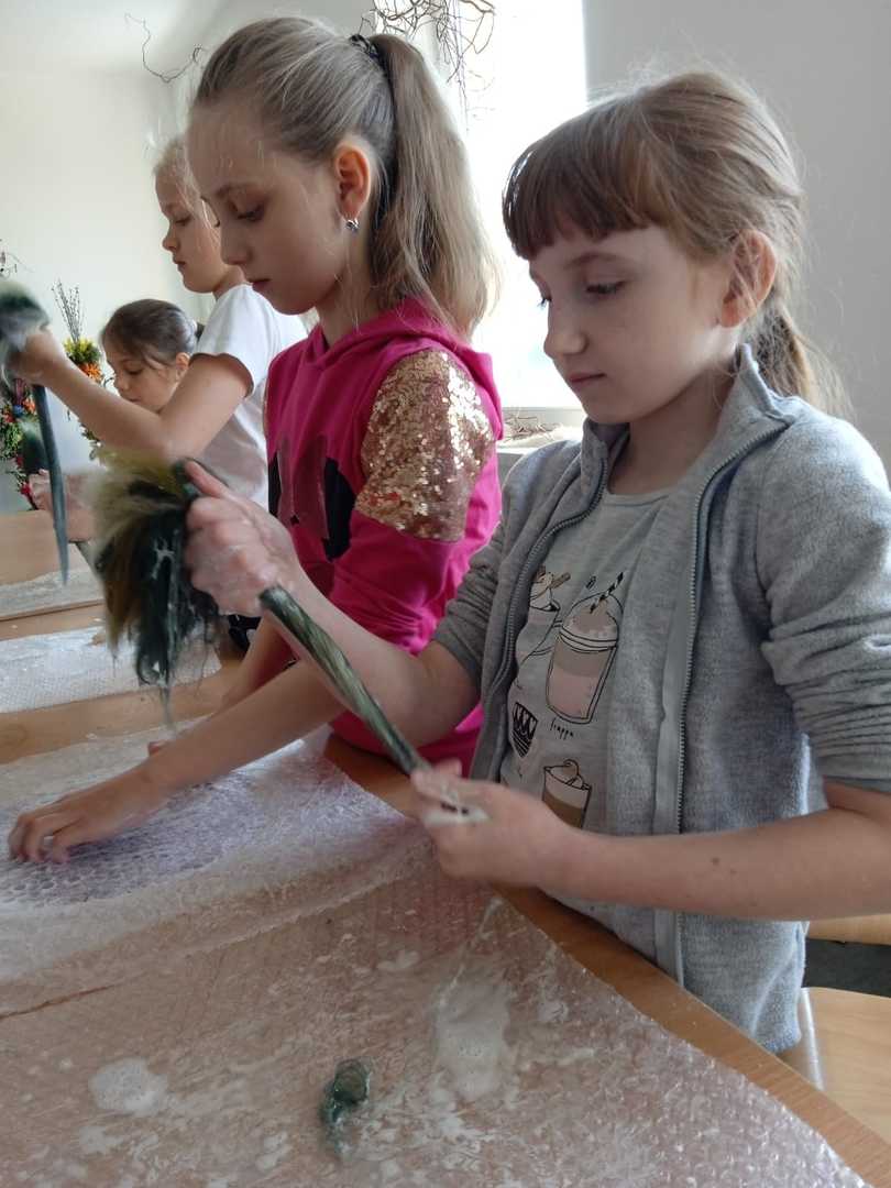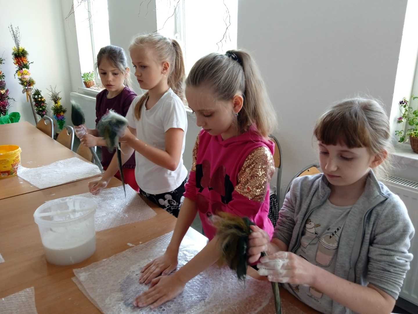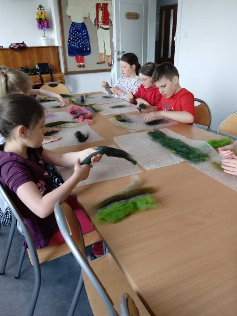 Podopieczni ko艂a zr臋cznych r膮k tym razem dla swoich Mam postanowili wykona膰 kwiaty technik膮 filcowania na mokro. Polega ona na po艂膮czeniu ze sob膮 poszczególnych pasm we艂ny poprzez moczenie, pocieranie, wygniatanie, wa艂kowanie i wreszcie suszenie.