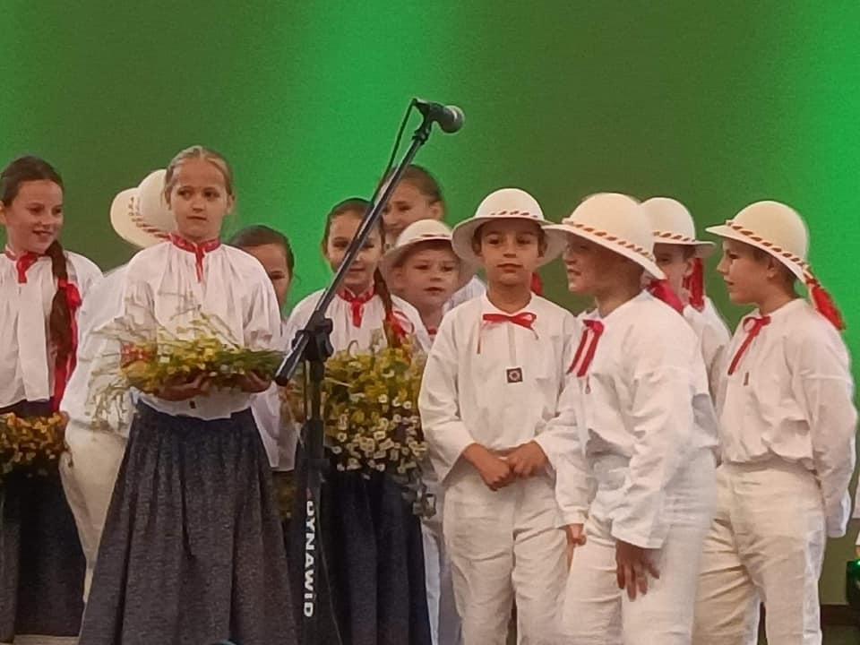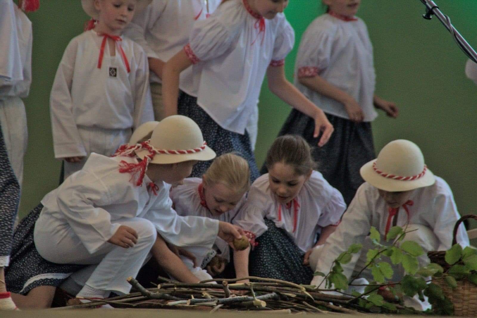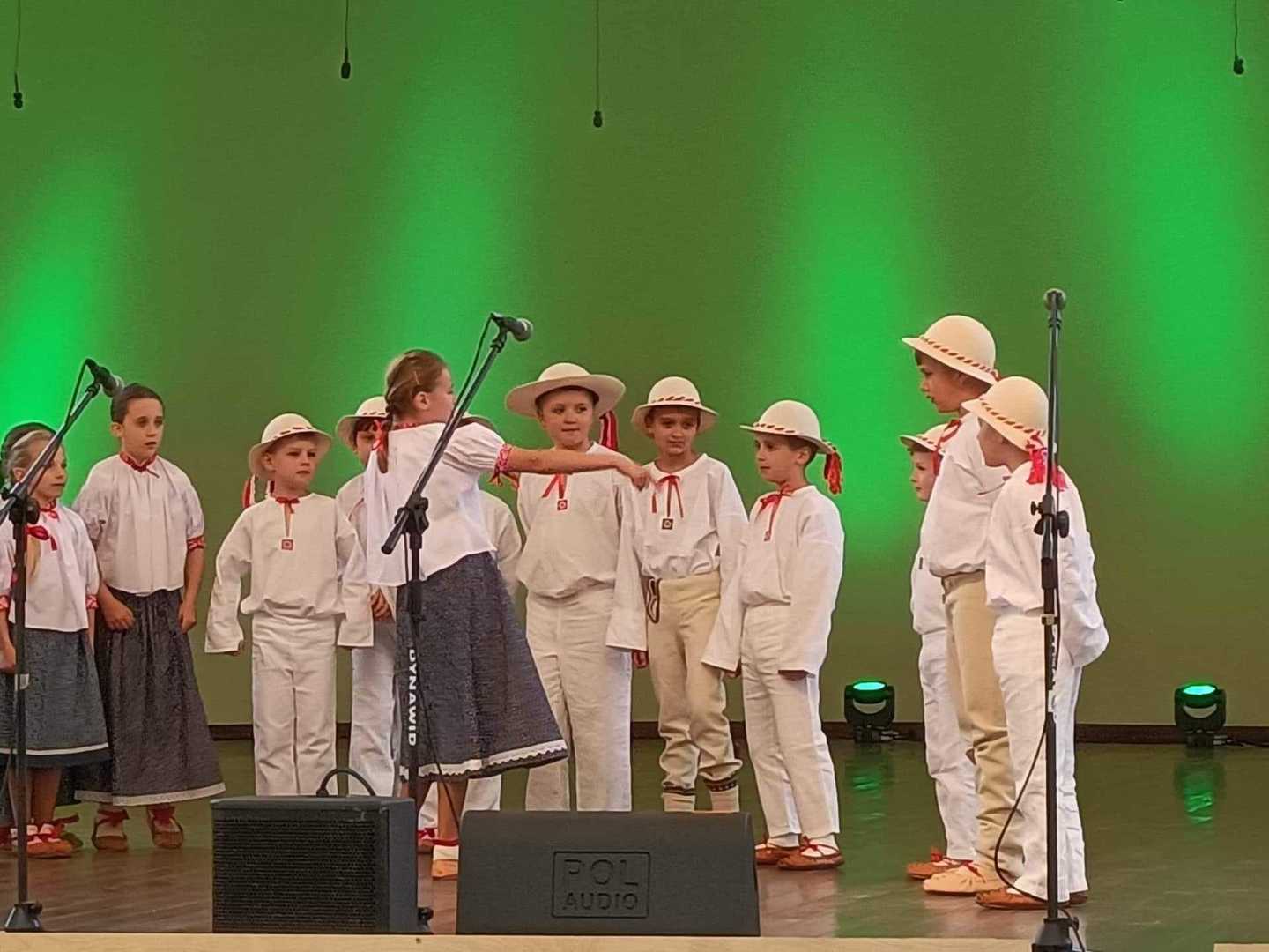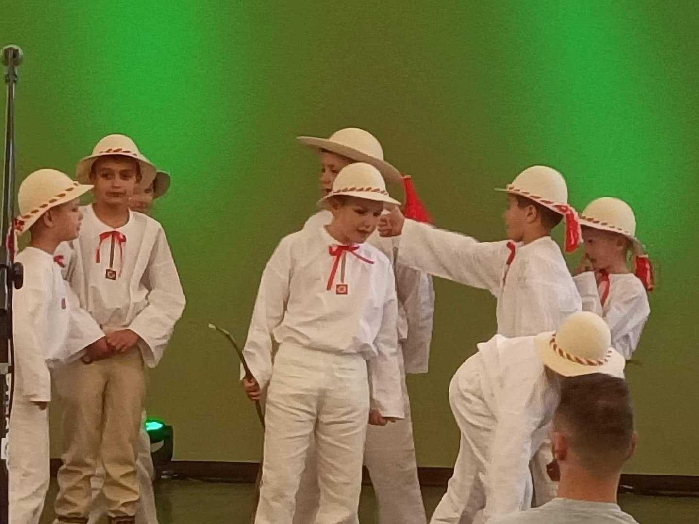 To ich pierwszy występ z zabawami, grami, wyliczankami. Dziewczątka plytły wiónki, chłapcy robili łogiyń, bawili sie w pukiewkym, cicioka, wilka, ciympionckym, jedli piecioki.