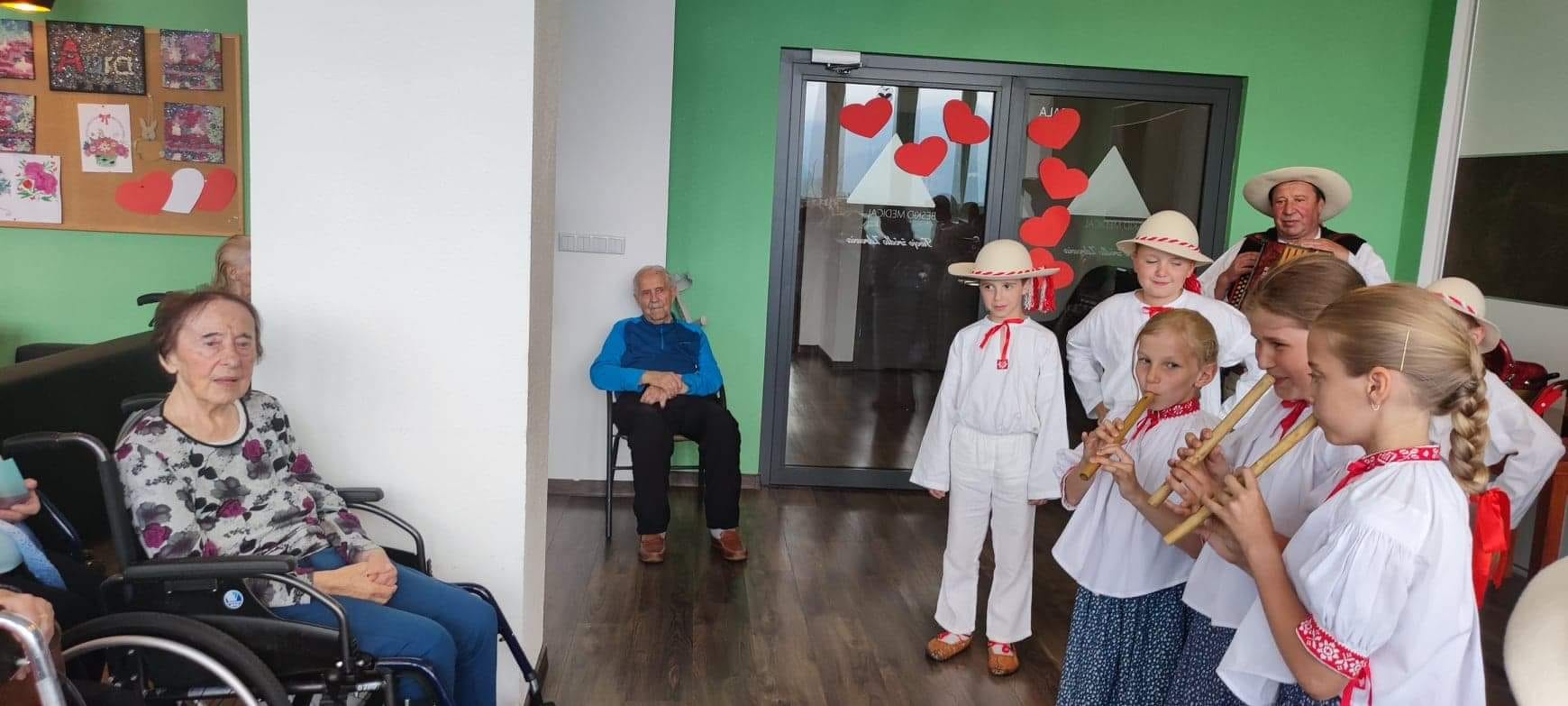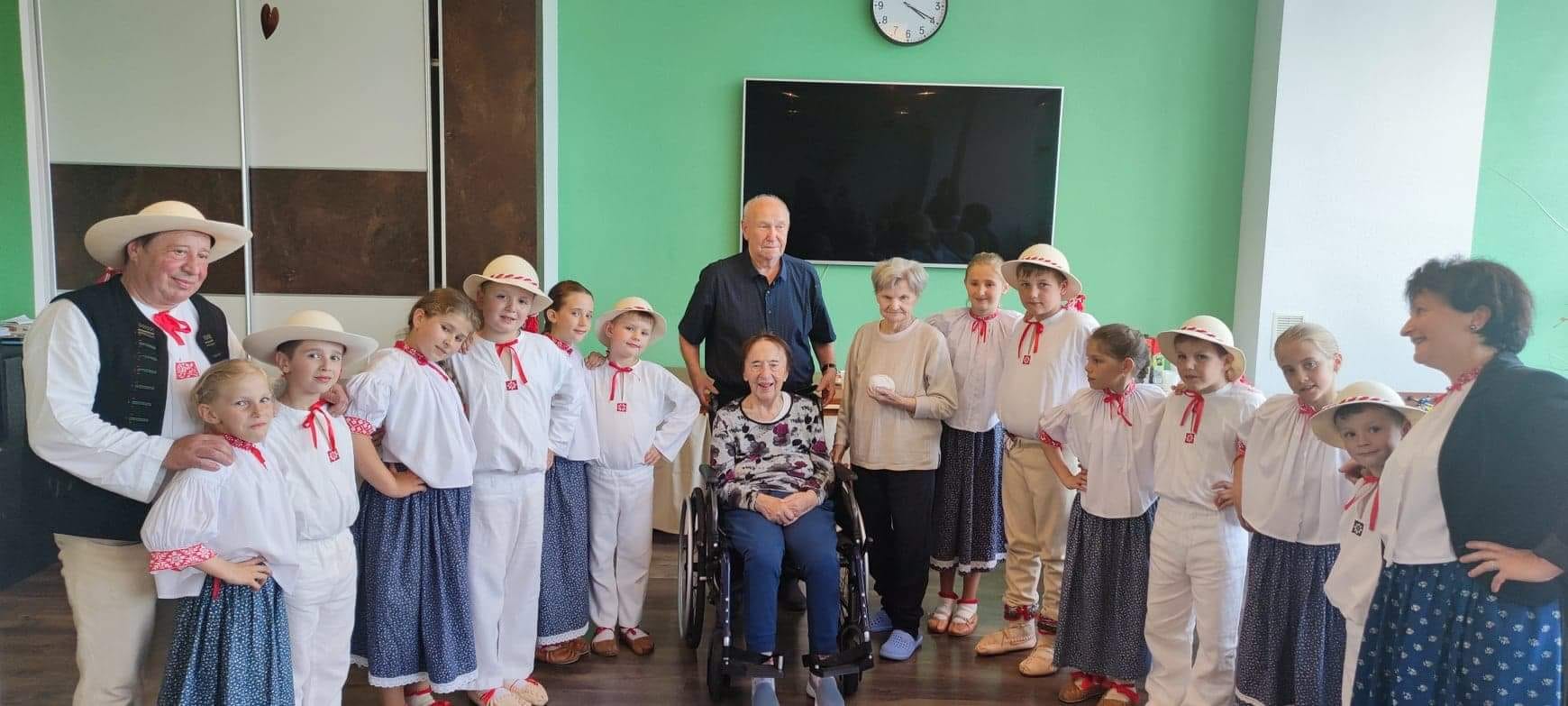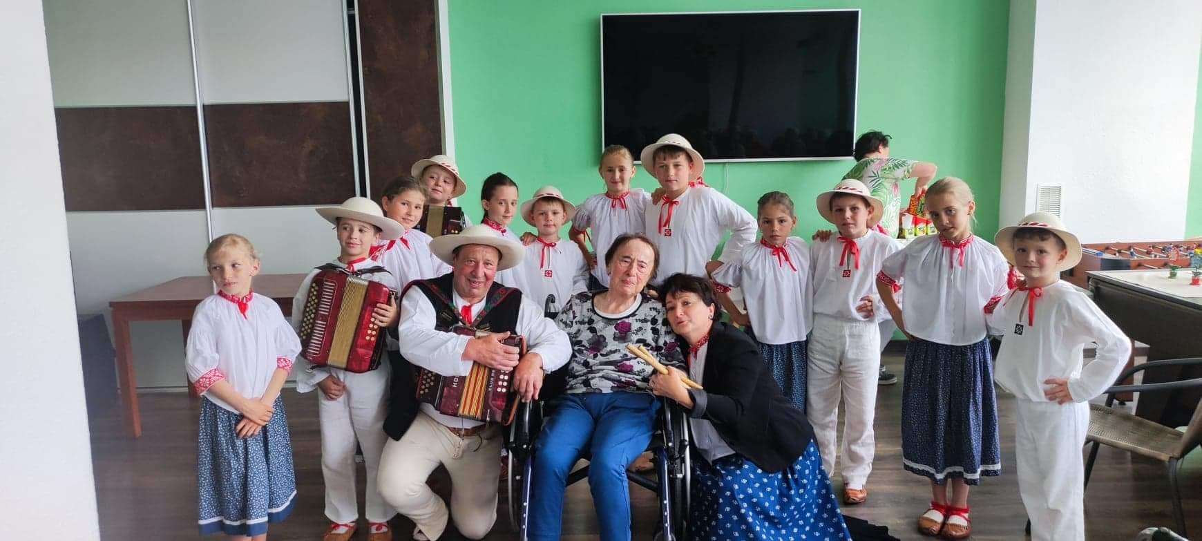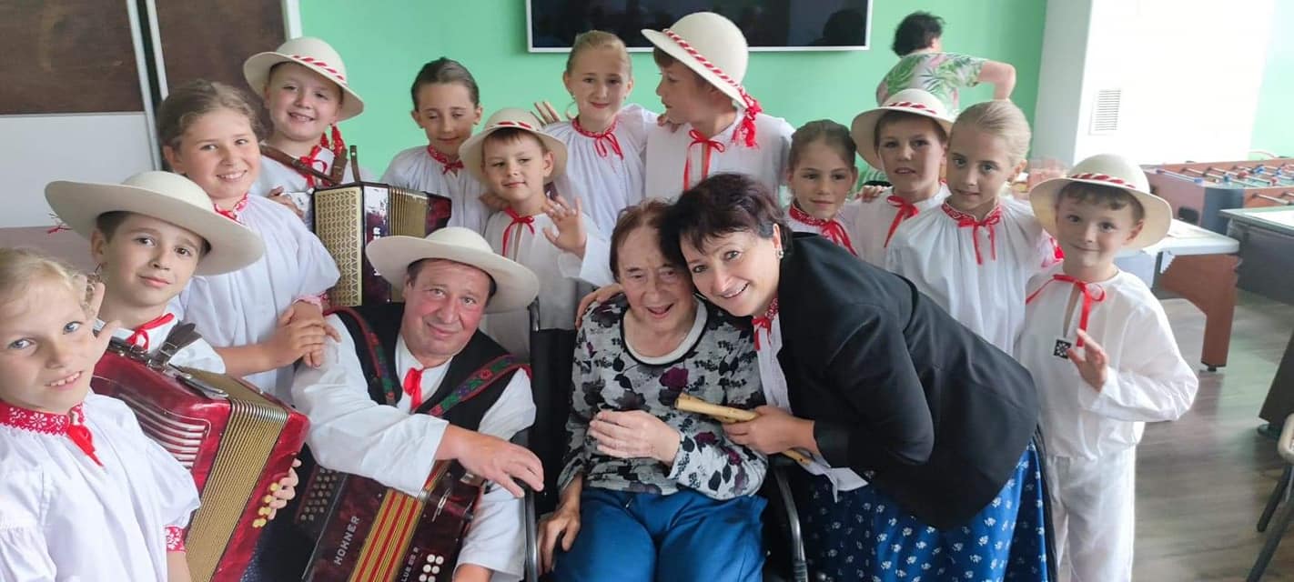 W ośrodku tym obecnie gości rownież Maria Chmiel, wieloletnia kierownik Dziecięcego Zespołu Regionalnego "Mały Koniaków" oraz założycielka i dyrektor Ognisla Pracy Pozaszkolnej w Koniakowie. Dziś kolejne pokolenie zespolokow prowadzone przez ówczesna członkinię zespołu Pani Chmiel odwiedziło Dom Seniora by umilic jego mieszkańcom czas i podziękować Pani Marii za te lata pielęgnowania tradycji