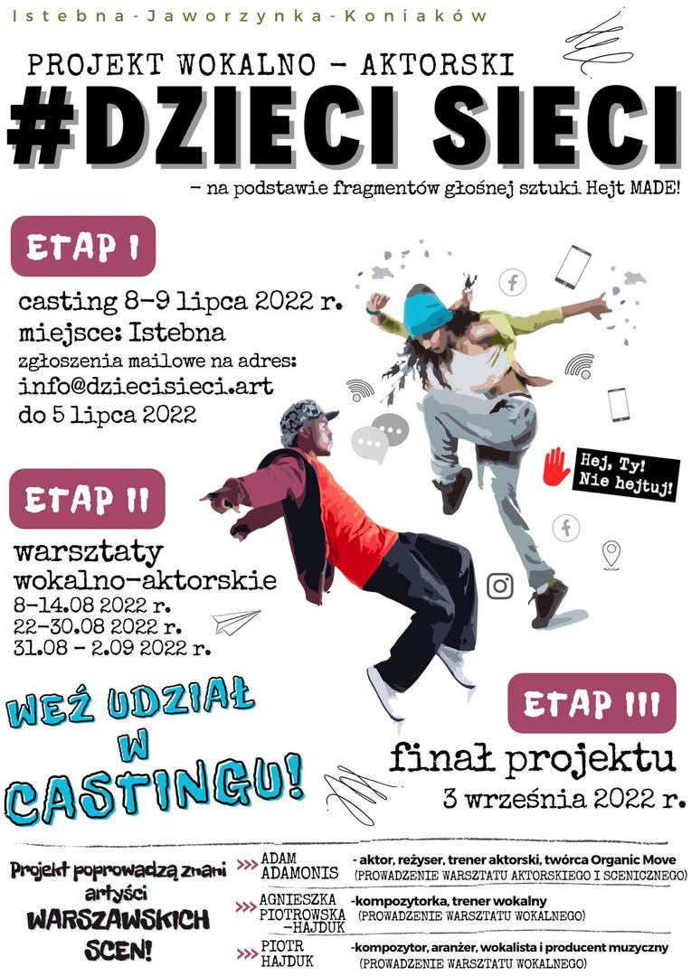 Zachęcamy do zgłaszania się na casting, podczas którego wytypowanych zostanie 14 uczestników warsztatów (zgłoszenia przyjmowane są do 5 lipca drogą mailową), więcej szczegółów na plakacie oraz na fanpage’u projektu!