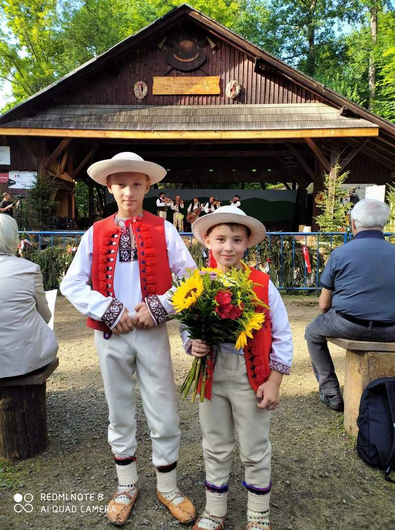 Adaś i Janek Szkawran na jabłonkowskiej scenie podczas 75. Górolskigo Święta 💙❤💚
