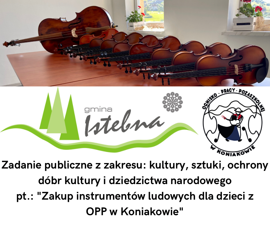 Projekt zosta艂 zrealizowany w ramach zadania publicznego z zakresu: kultury, sztuki, ochrony dóbr kultury i dziedzictwa narodowego pt.: Zakup instrumentów ludowych dla dzieci z OPP w Koniakowie" dofinansowane z Urz臋du