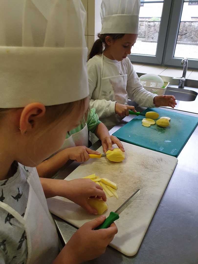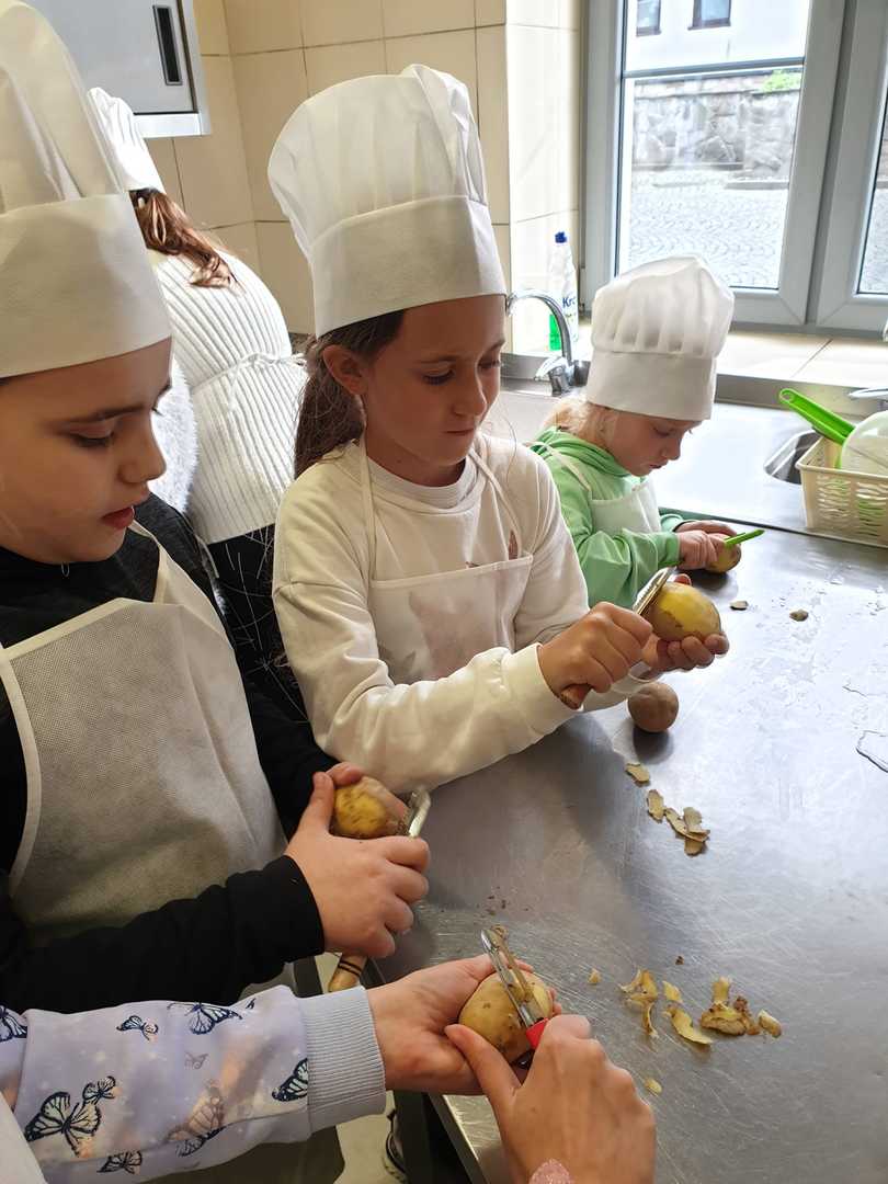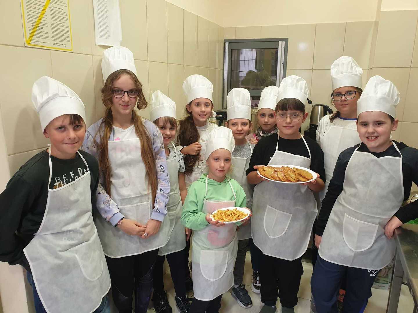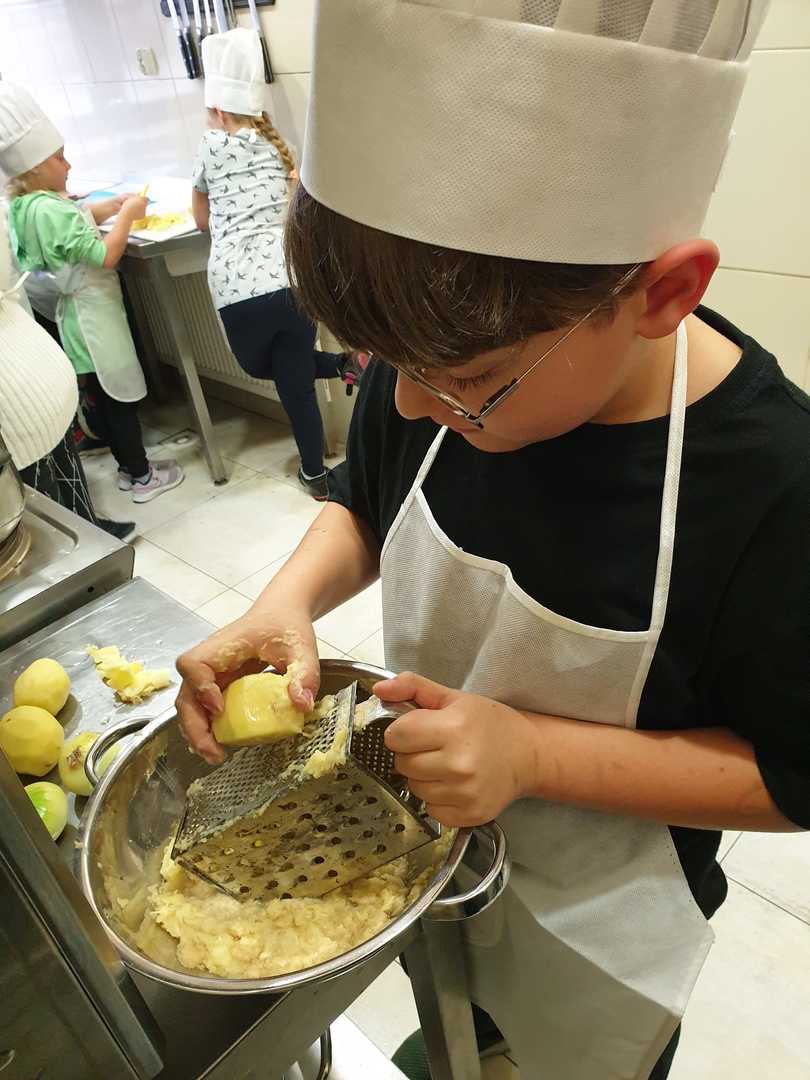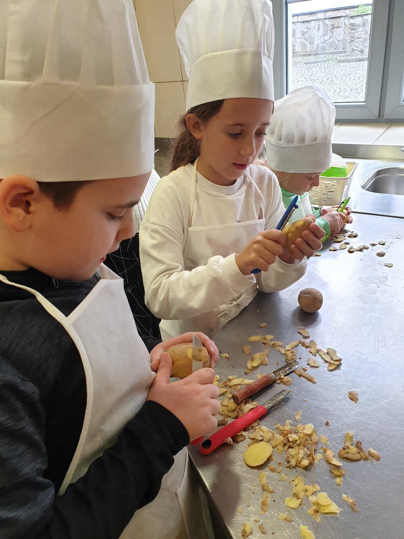 Dania z ziemniaków to prawdziwa skarbnica smaków i jedno z ulubionych warzyw dzieci. Po ostatnich wykopkach czas na potrawy z ziemniakiem w roli głównej. Mlodsza grupa kulinarnego przygotowała domowe frytki i chrupiące placki ziemniaczane