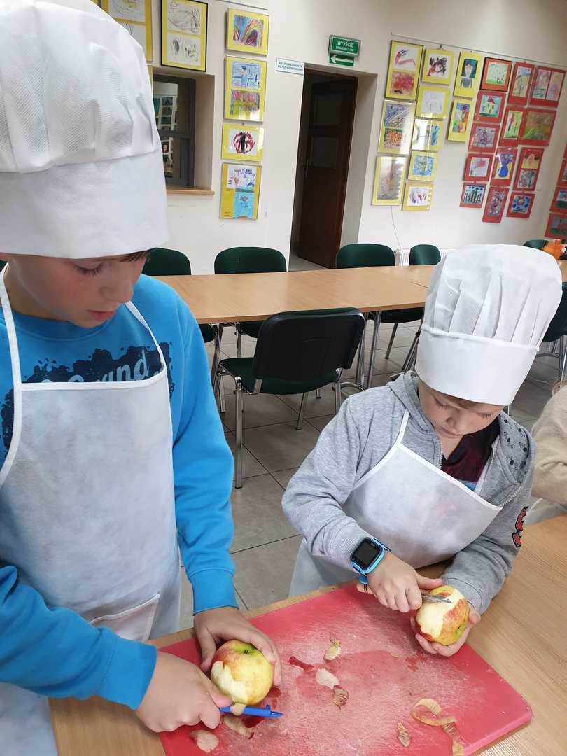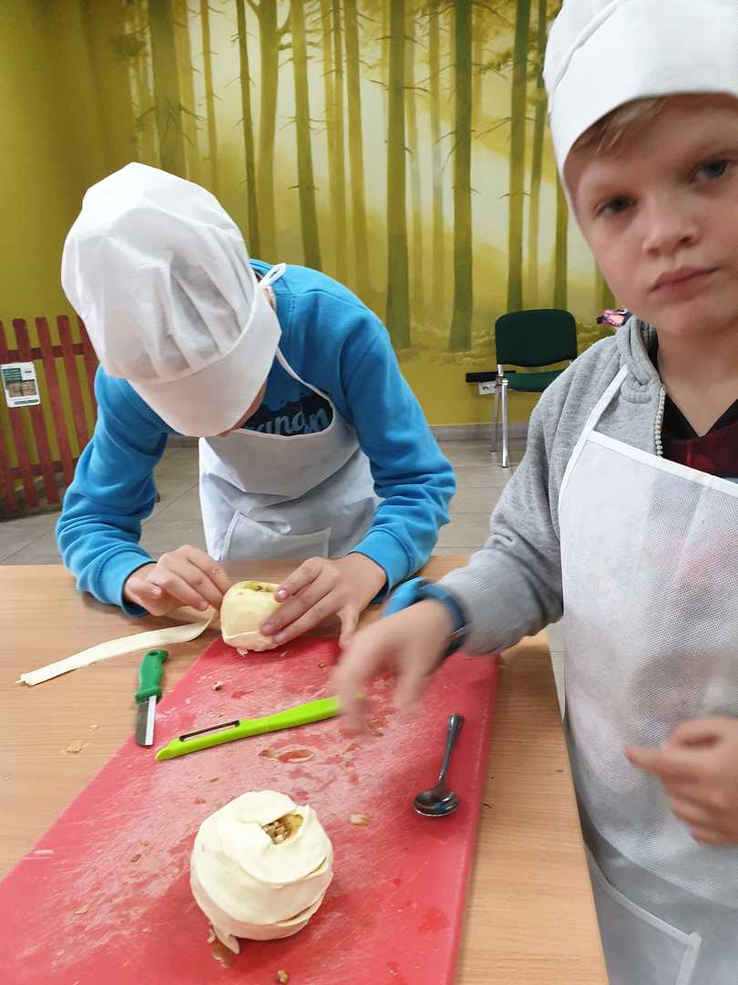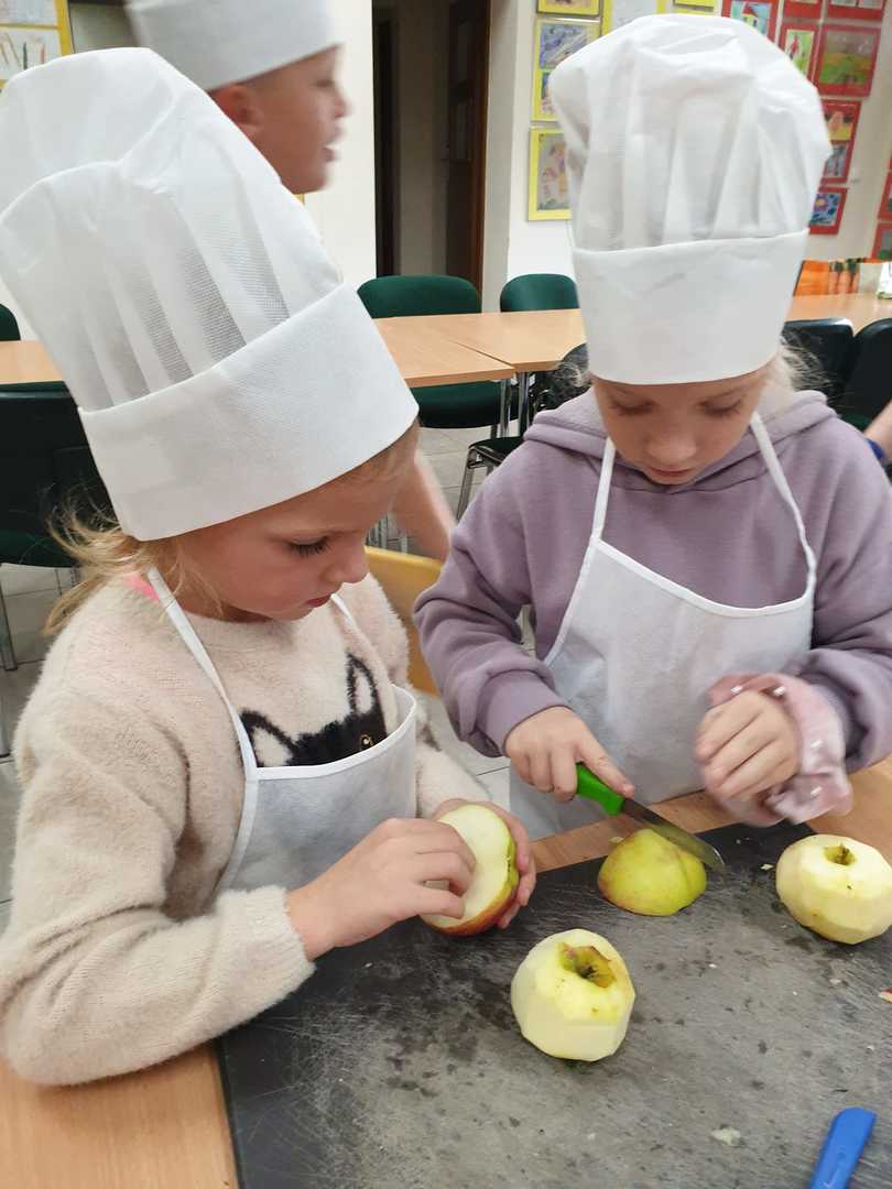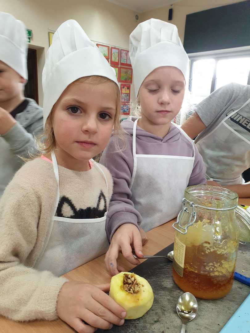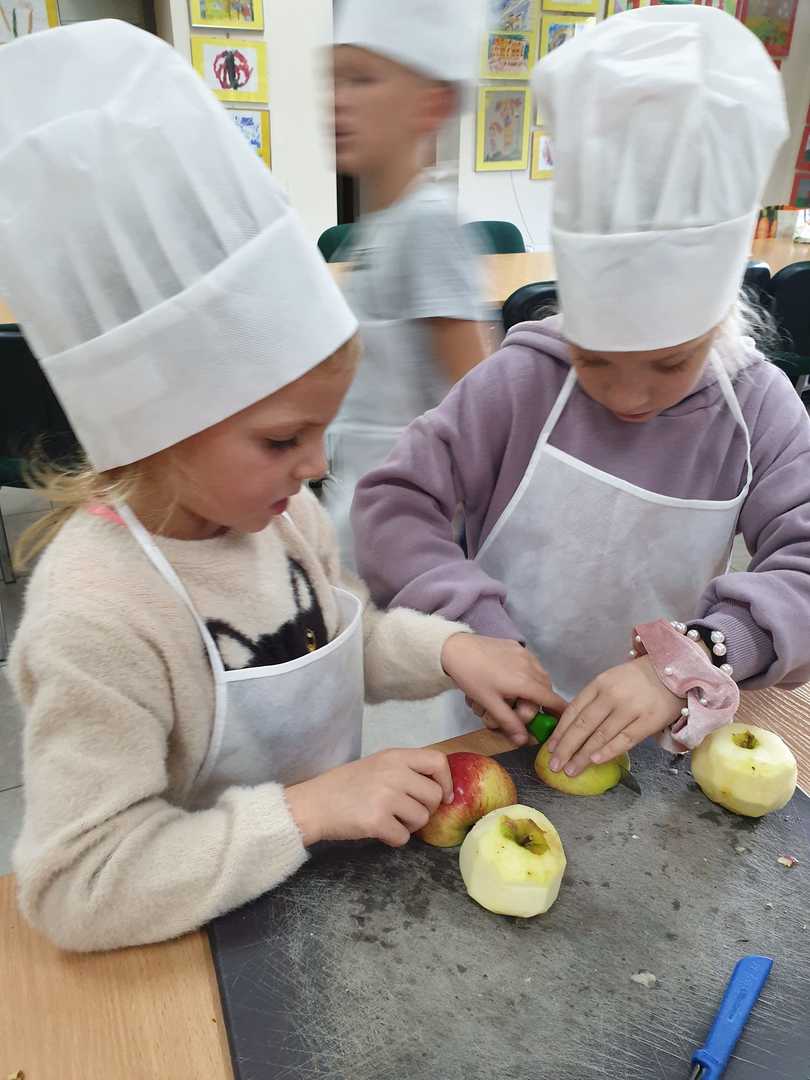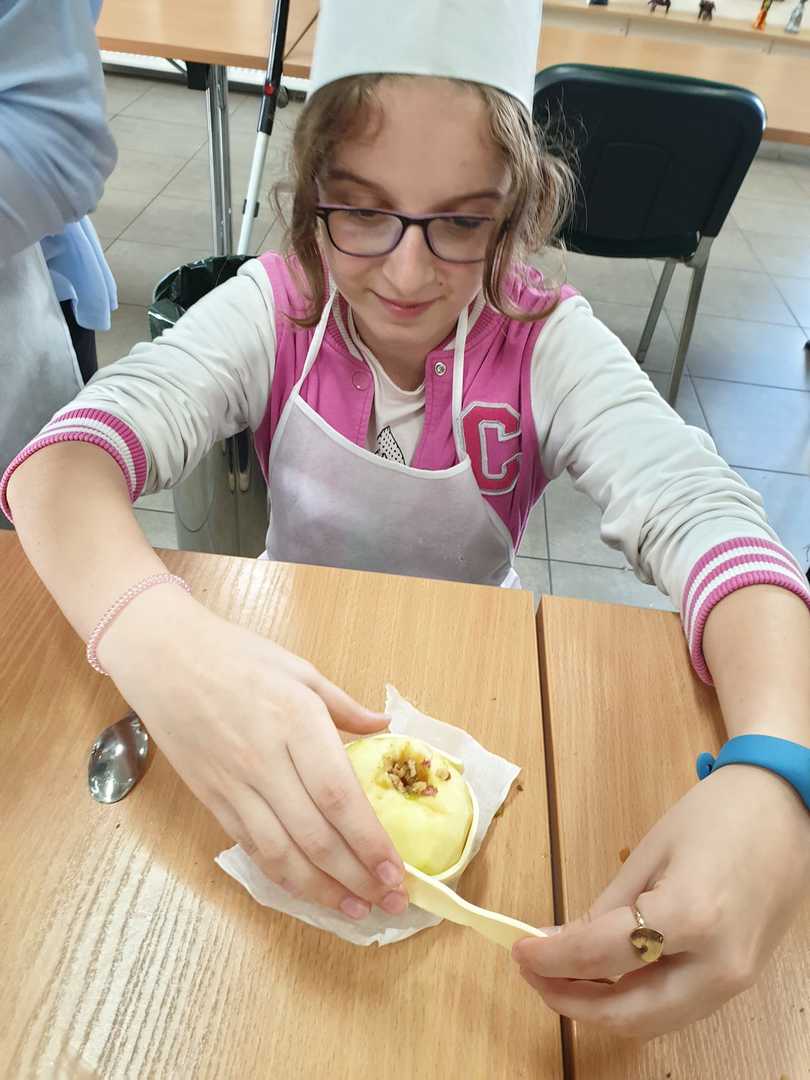 Nasi mlodzi adepci sztuki kulinarnej przygotowali wczoraj przepyszny deser czyli jabłko pieczone w cieście francuskimTen słodki poczęstunek zapewne rozgrzeje Cię w zime jesiennej wieczory Jeśli masz ochotę wykonać bardziej wykwitny deser proponujemy uzupełnić go bitą smietana i gałką lodu.