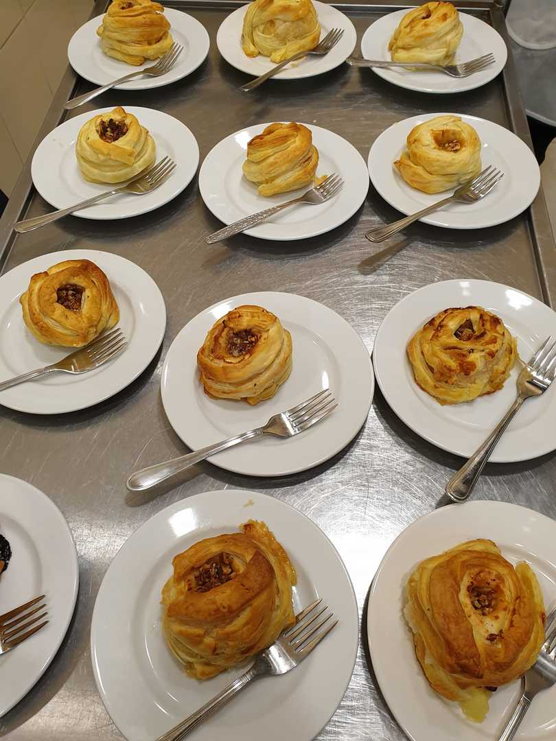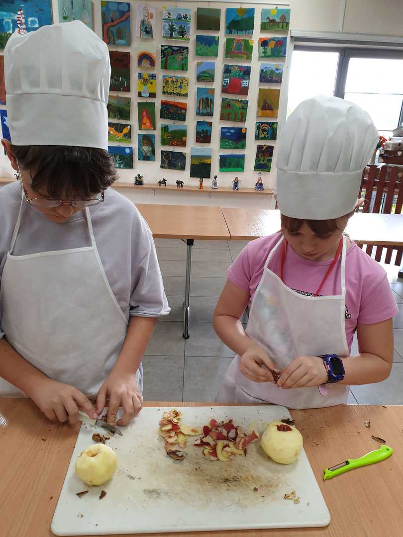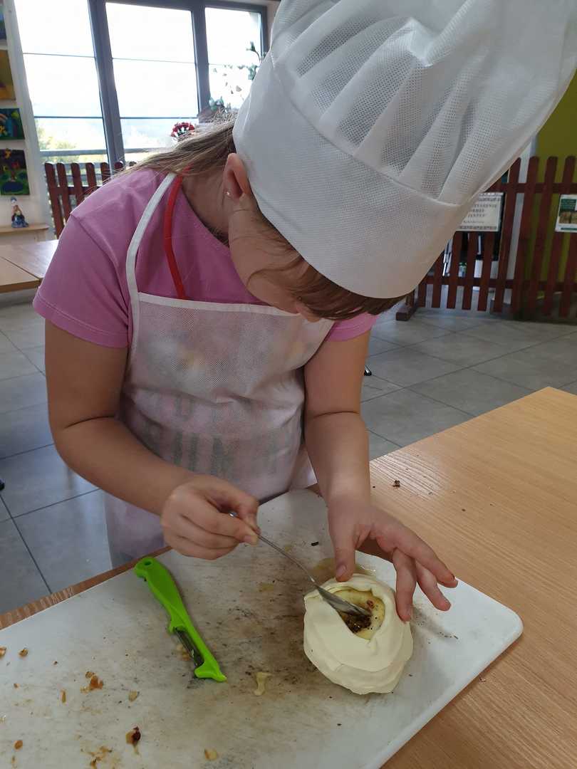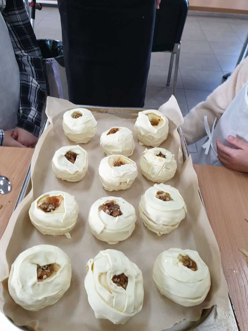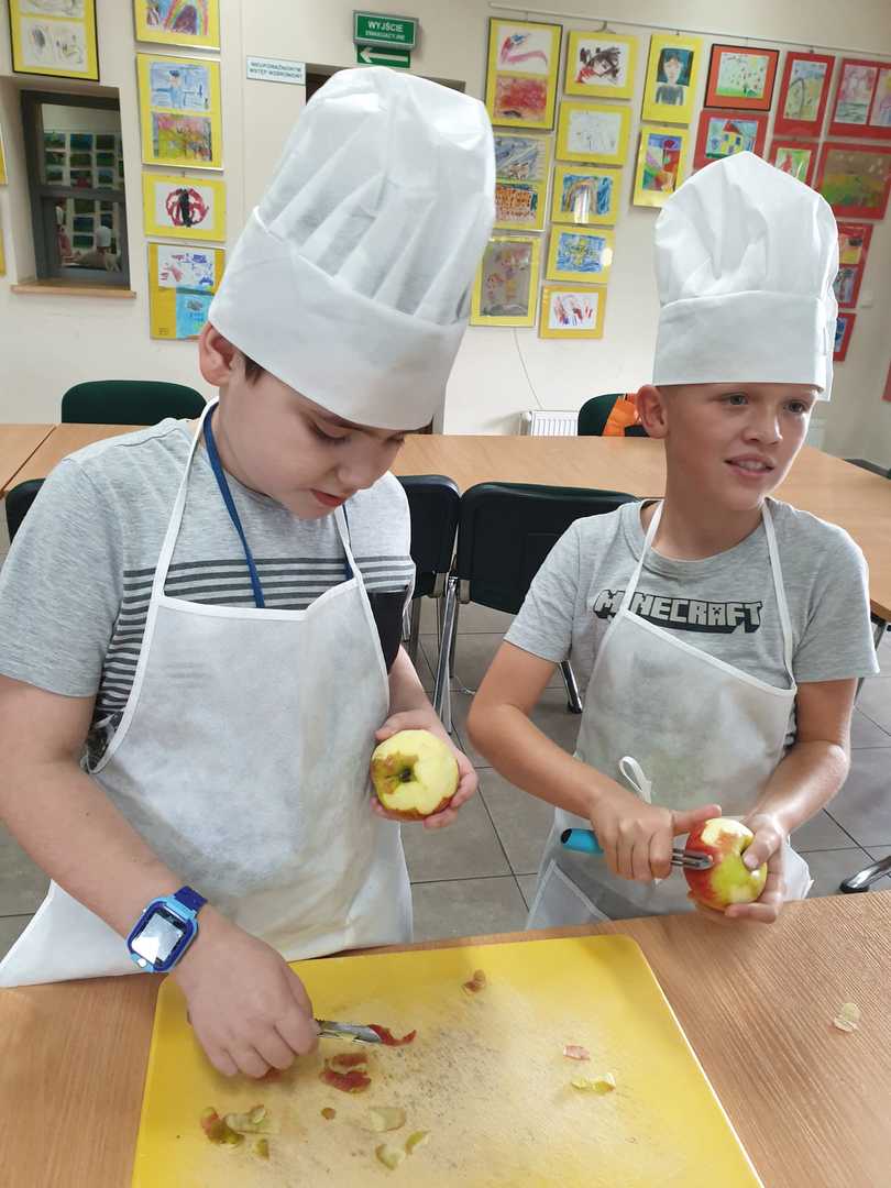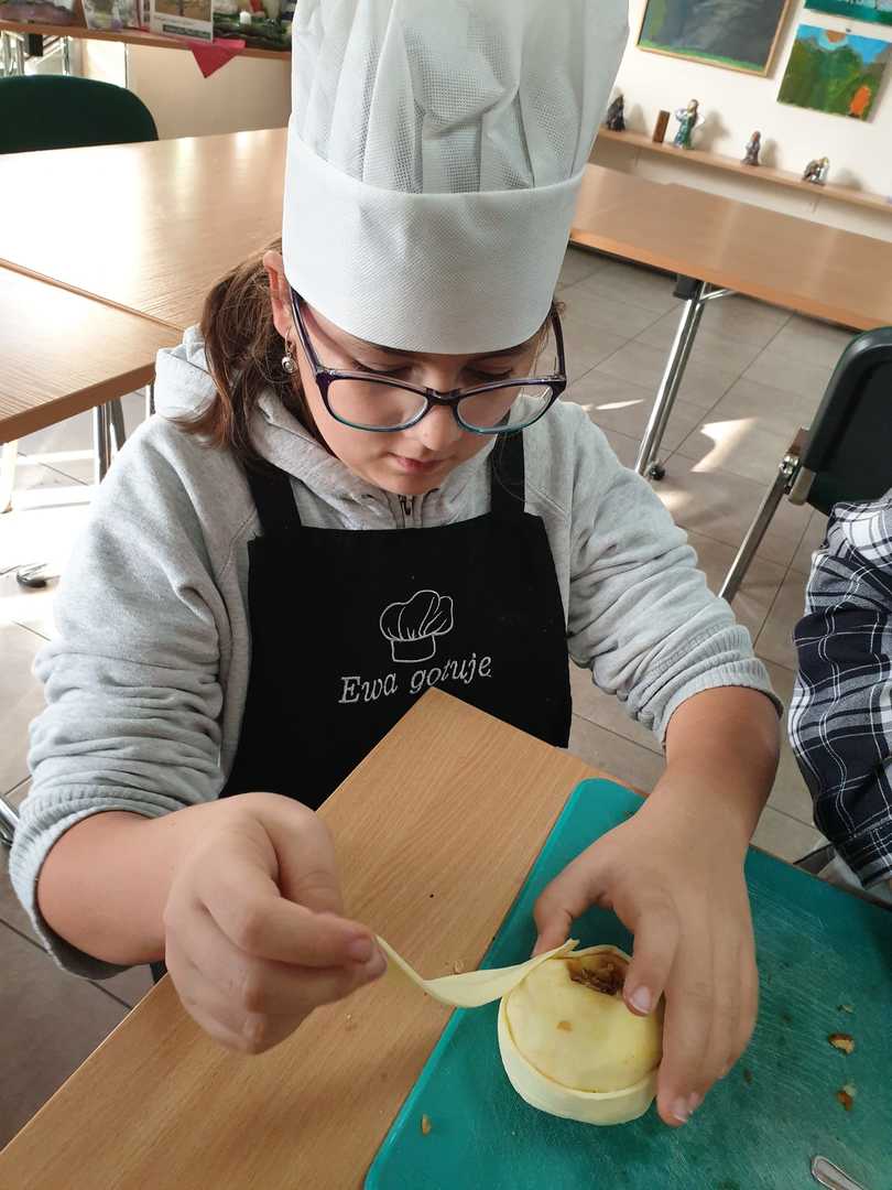 Nasi mlodzi adepci sztuki kulinarnej przygotowali wczoraj przepyszny deser czyli jabłko pieczone w cieście francuskimTen słodki poczęstunek zapewne rozgrzeje Cię w zime jesiennej wieczory Jeśli masz ochotę wykonać bardziej wykwitny deser proponujemy uzupełnić go bitą smietana i gałką lodu.